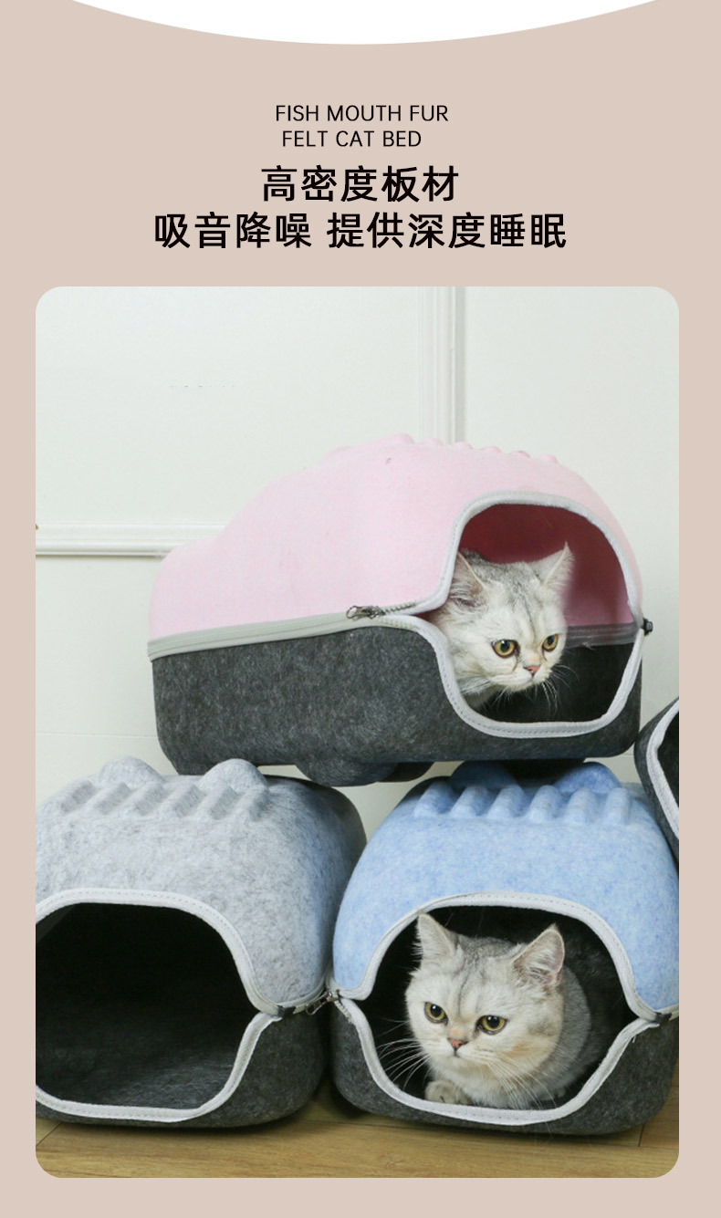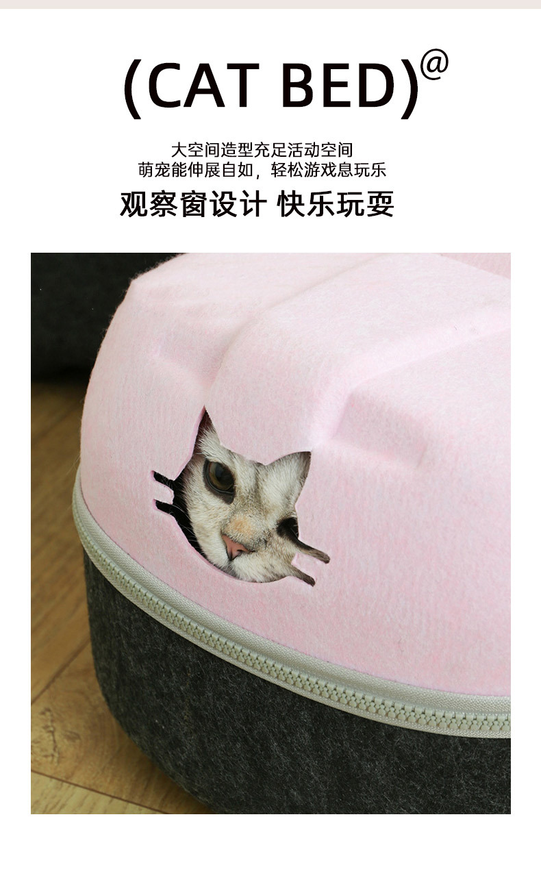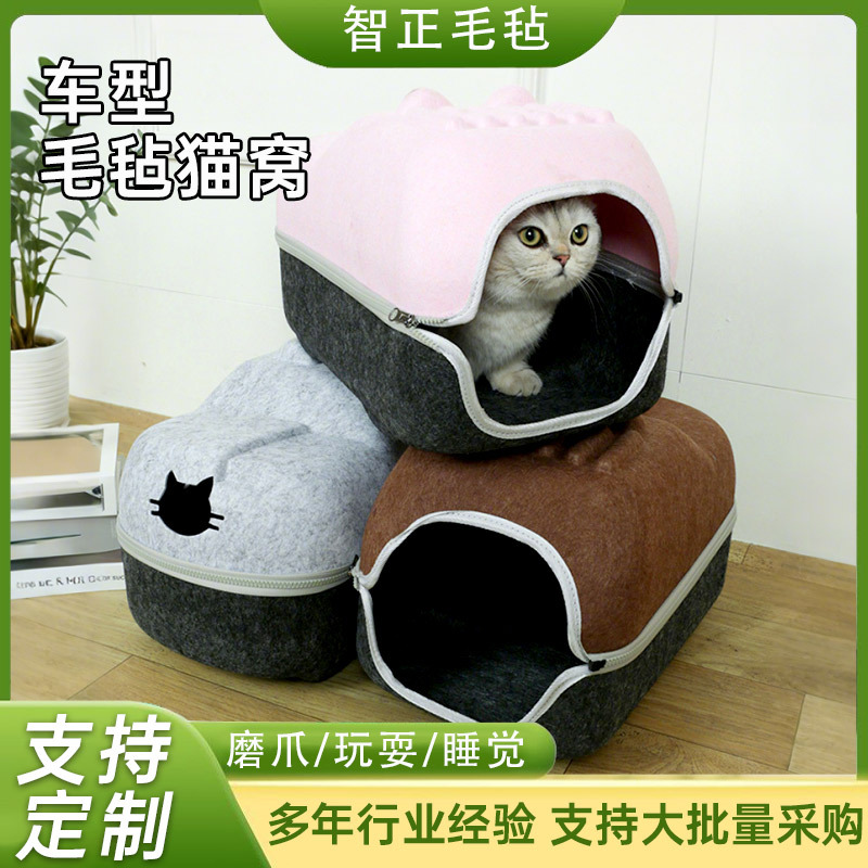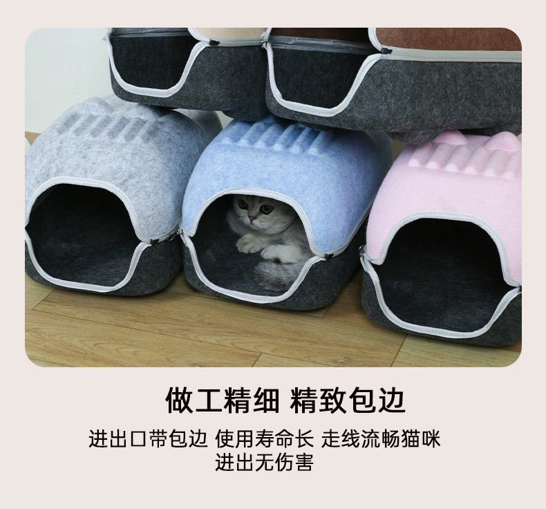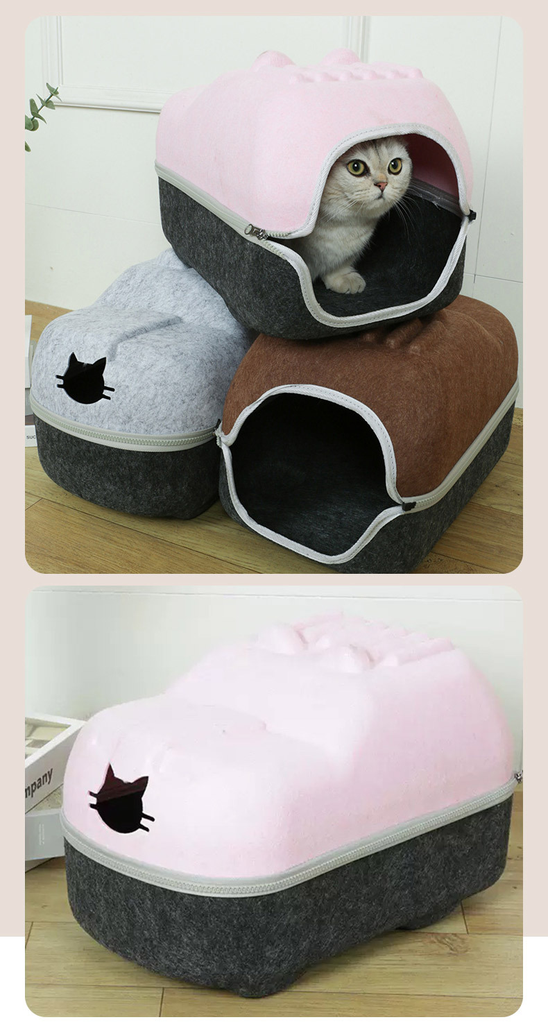 국경 간 펠트 고양이 둥지 반 밀폐형 지퍼 분리형 고양이 애완 동물 둥지 대형 공간 고양이 방 자동차 고양이 둥지