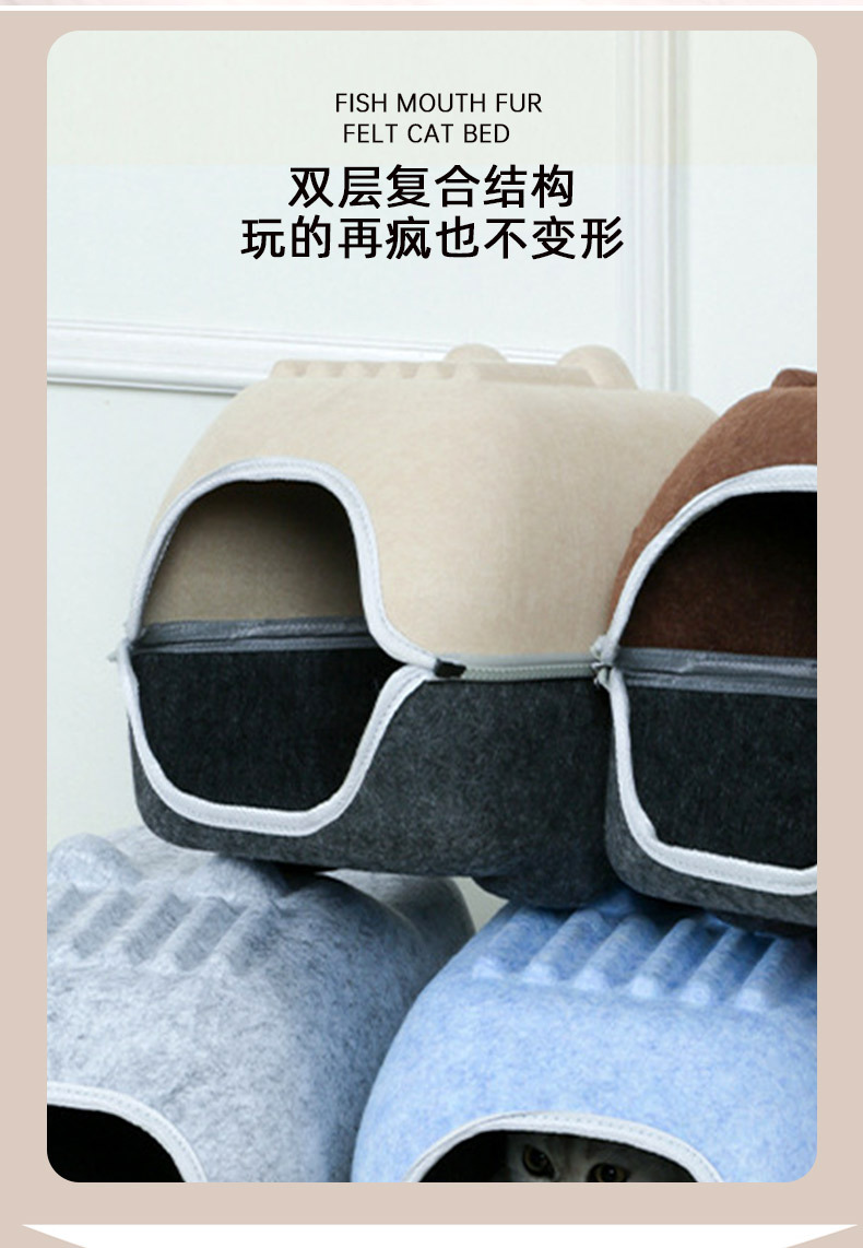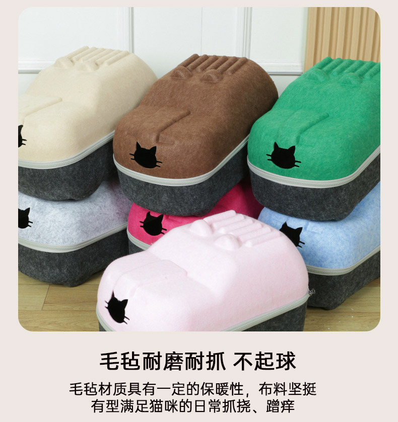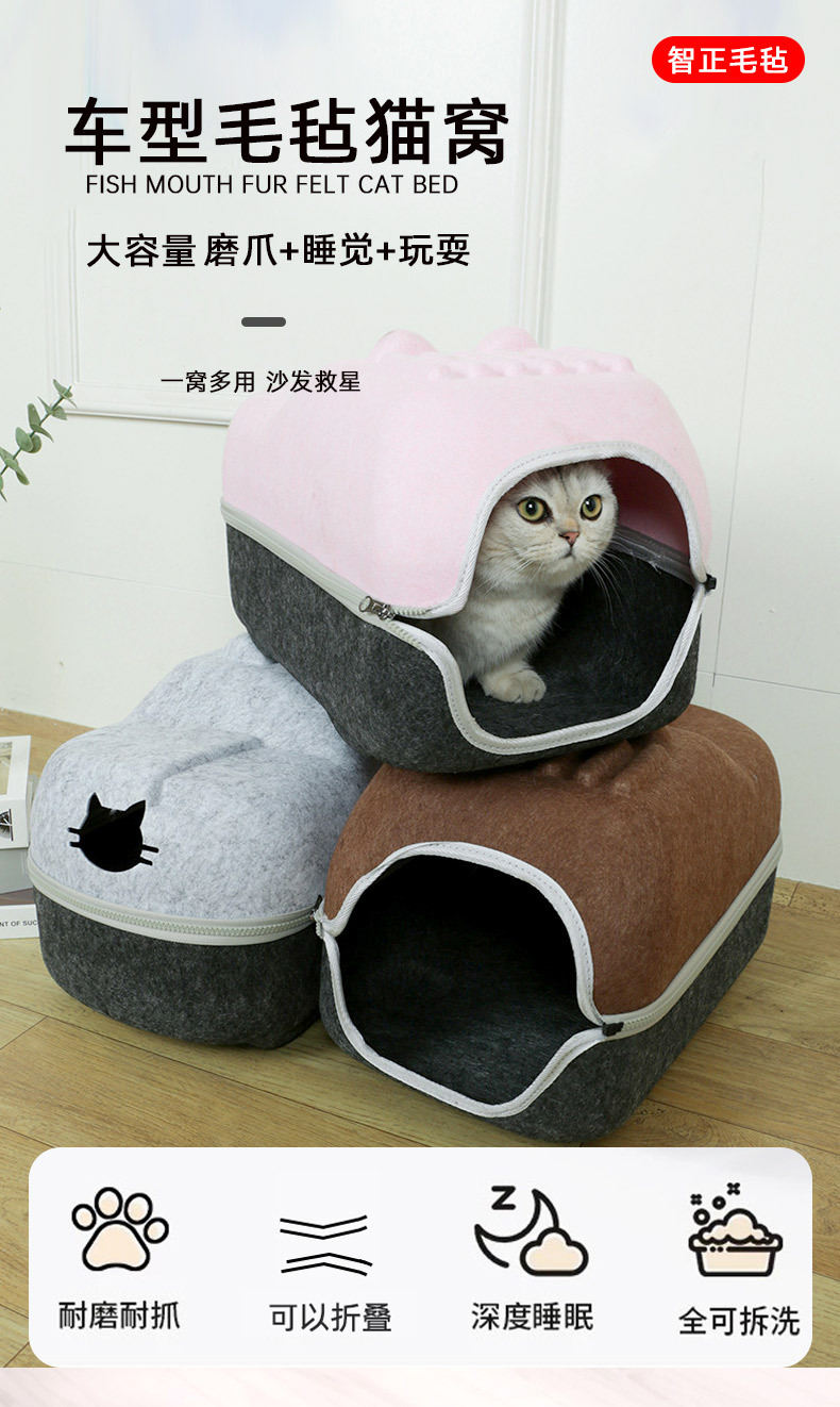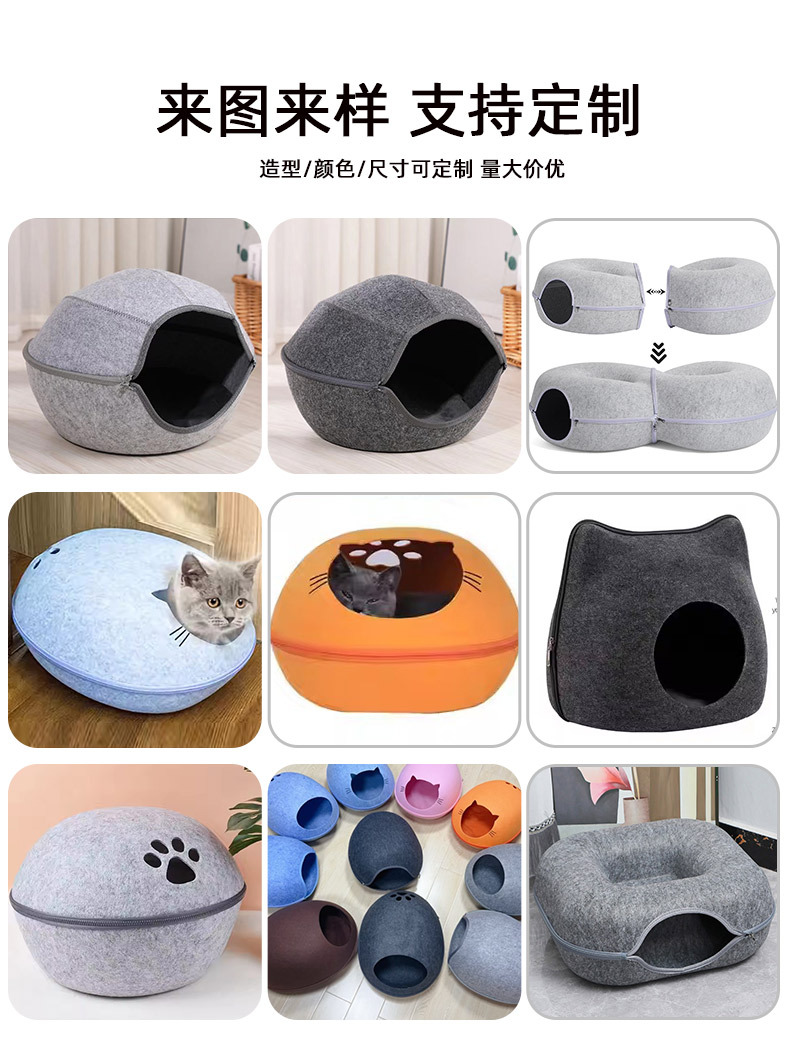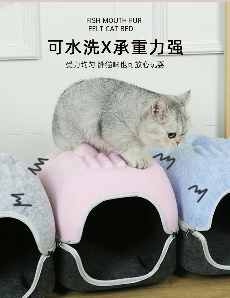 국경 간 펠트 고양이 둥지 반 밀폐형 지퍼 분리형 고양이 애완 동물 둥지 대형 공간 고양이 방 자동차 고양이 둥지