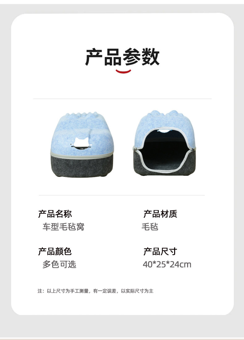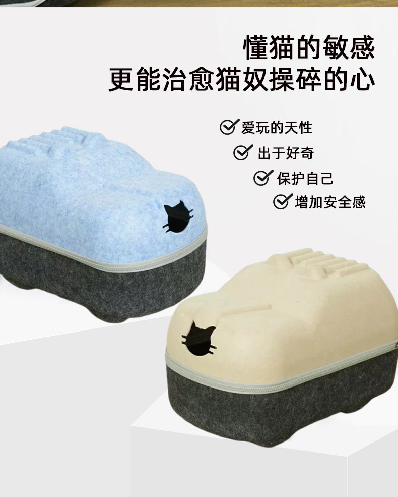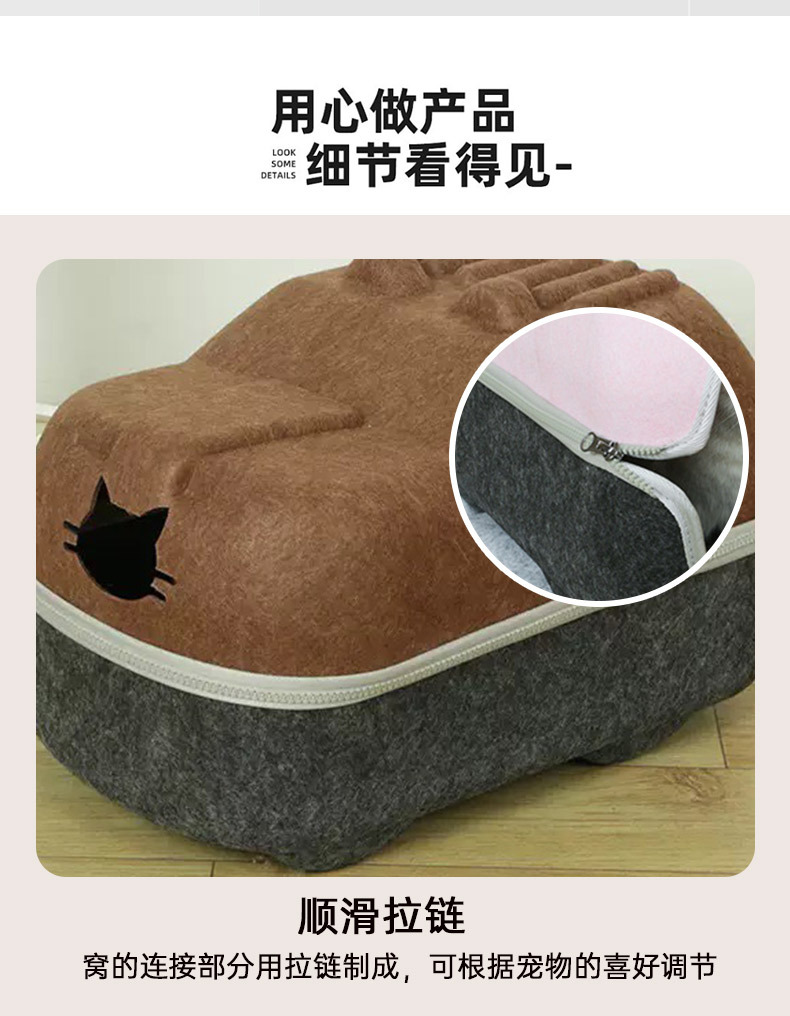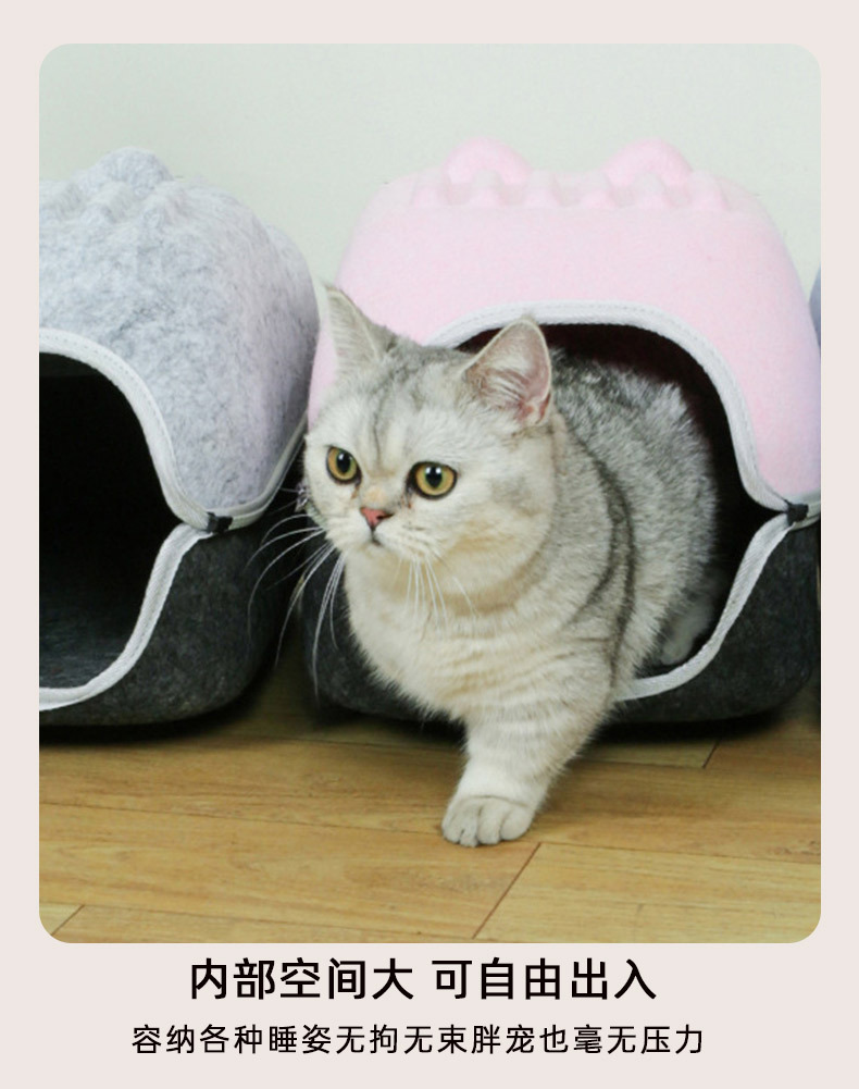 국경 간 펠트 고양이 둥지 반 밀폐형 지퍼 분리형 고양이 애완 동물 둥지 대형 공간 고양이 방 자동차 고양이 둥지스토어 가기