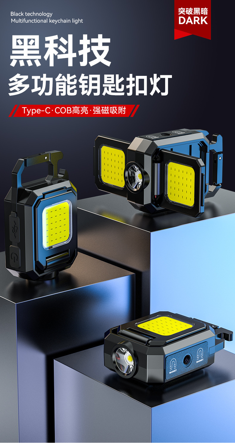 다기능 키체인 라이트 3헤드 COB 미니 작업등 휴대용 캠핑 라이트 소형 손전등 LED