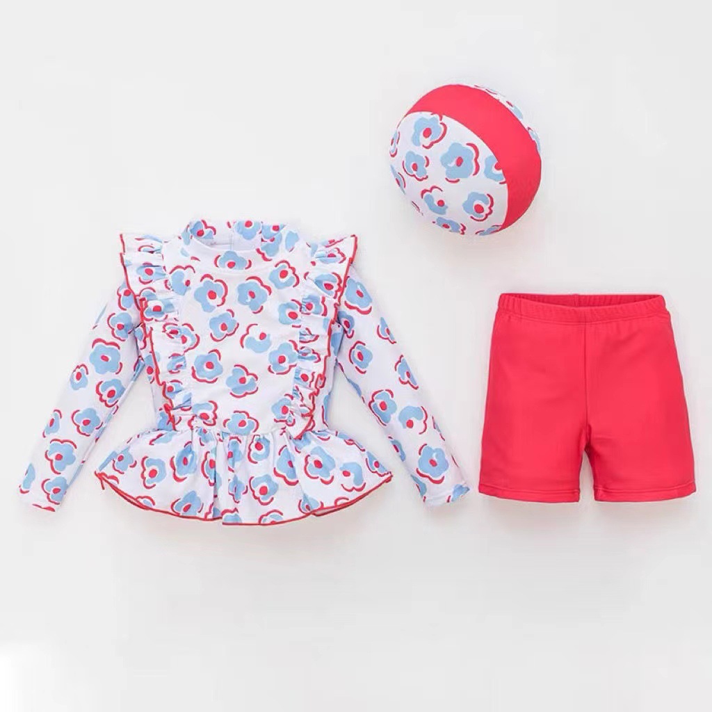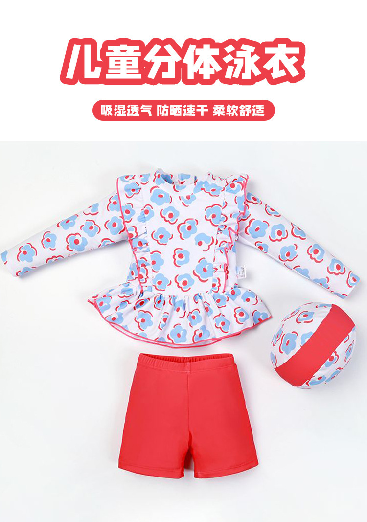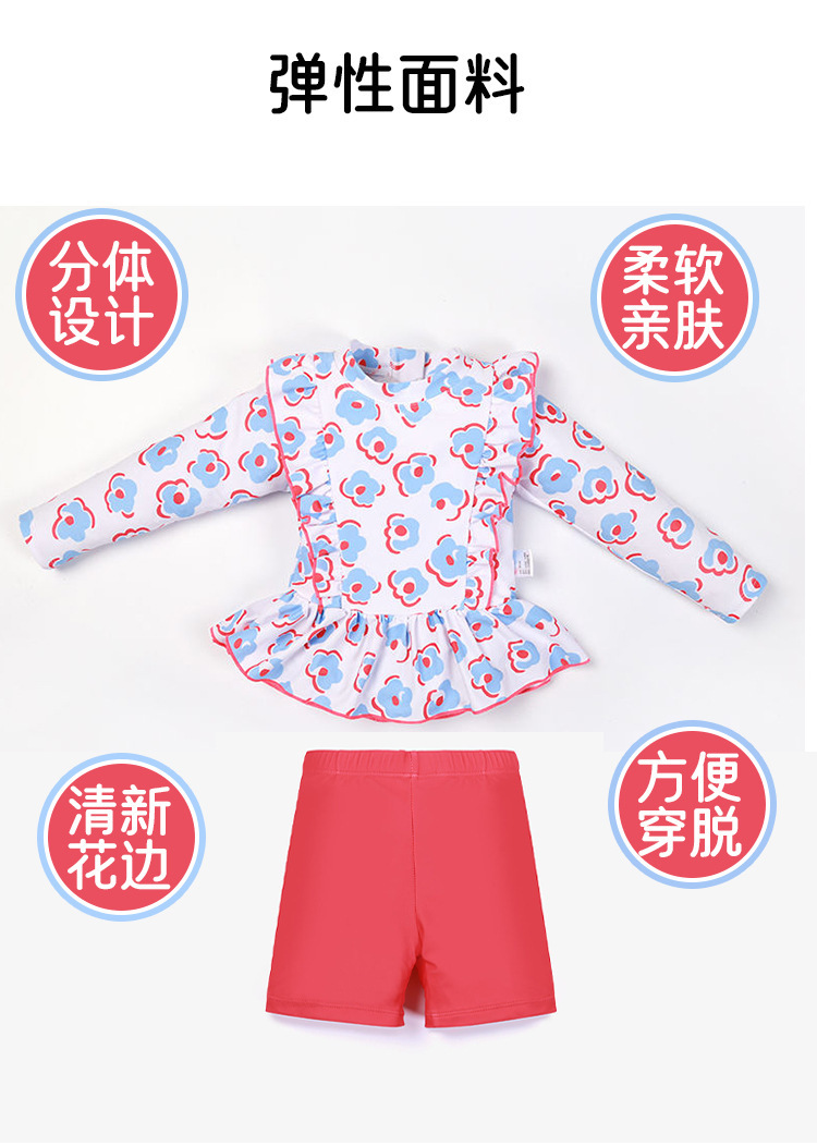 3-12세 여아용 아동 수영복 스플릿 수영복, 긴팔 여아용 서양식 온천 스커트 레이스 수영복