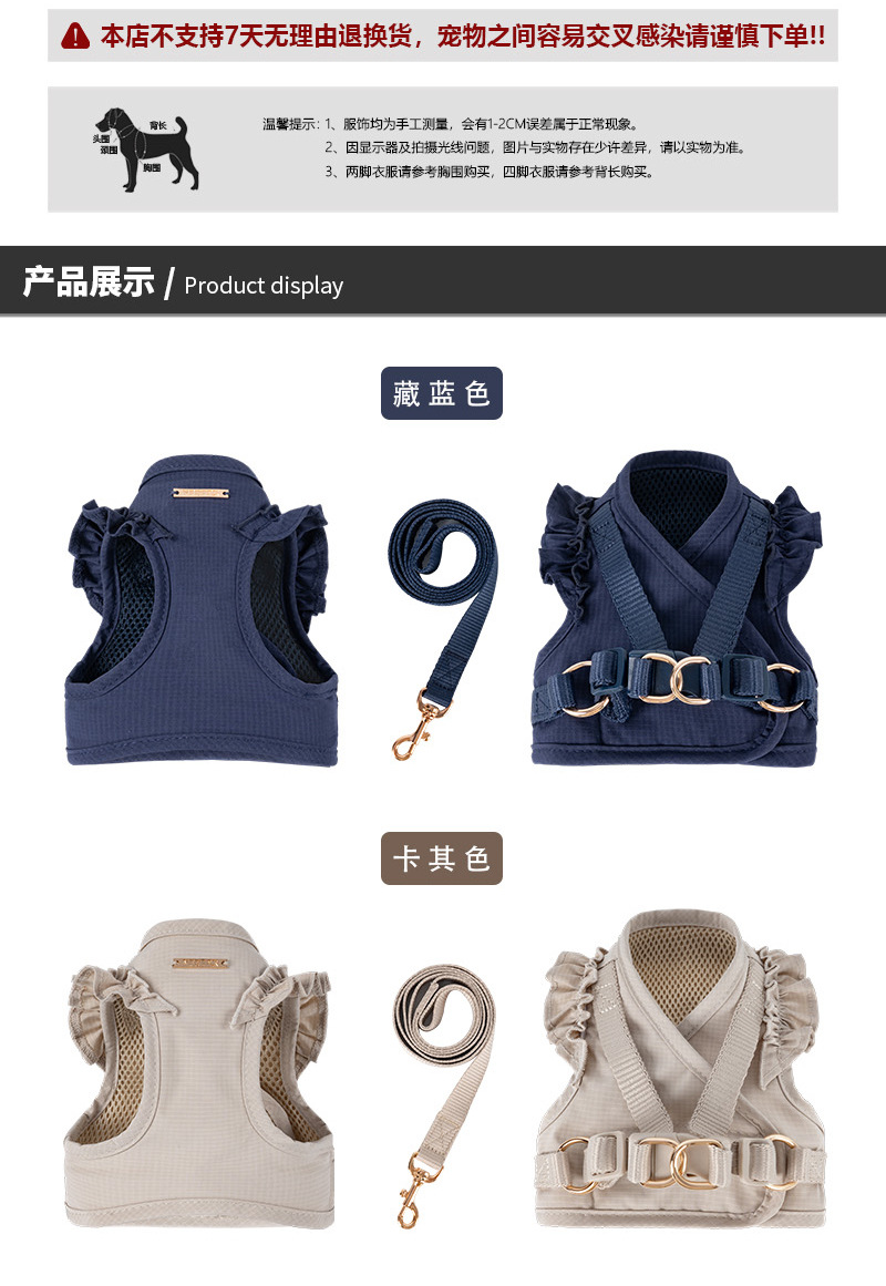 국경을 넘는 인기 상품 봄여름 강아지 플라잉 슬리브 하네스와 리드줄 2종 세트, 귀여운 야외 애완견 산책줄과 강아지 옷