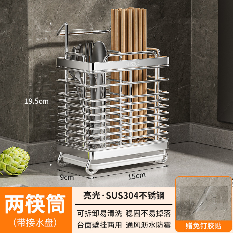 • [플랫 스틸 모델] 이중 칸막이 젓가락 꽂이 - 스테인리스 물받이 포함