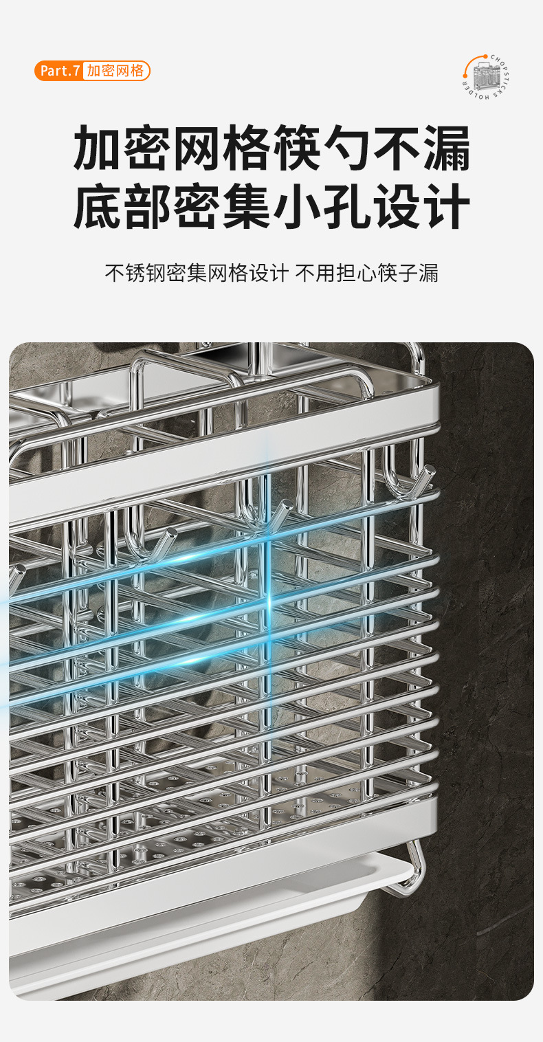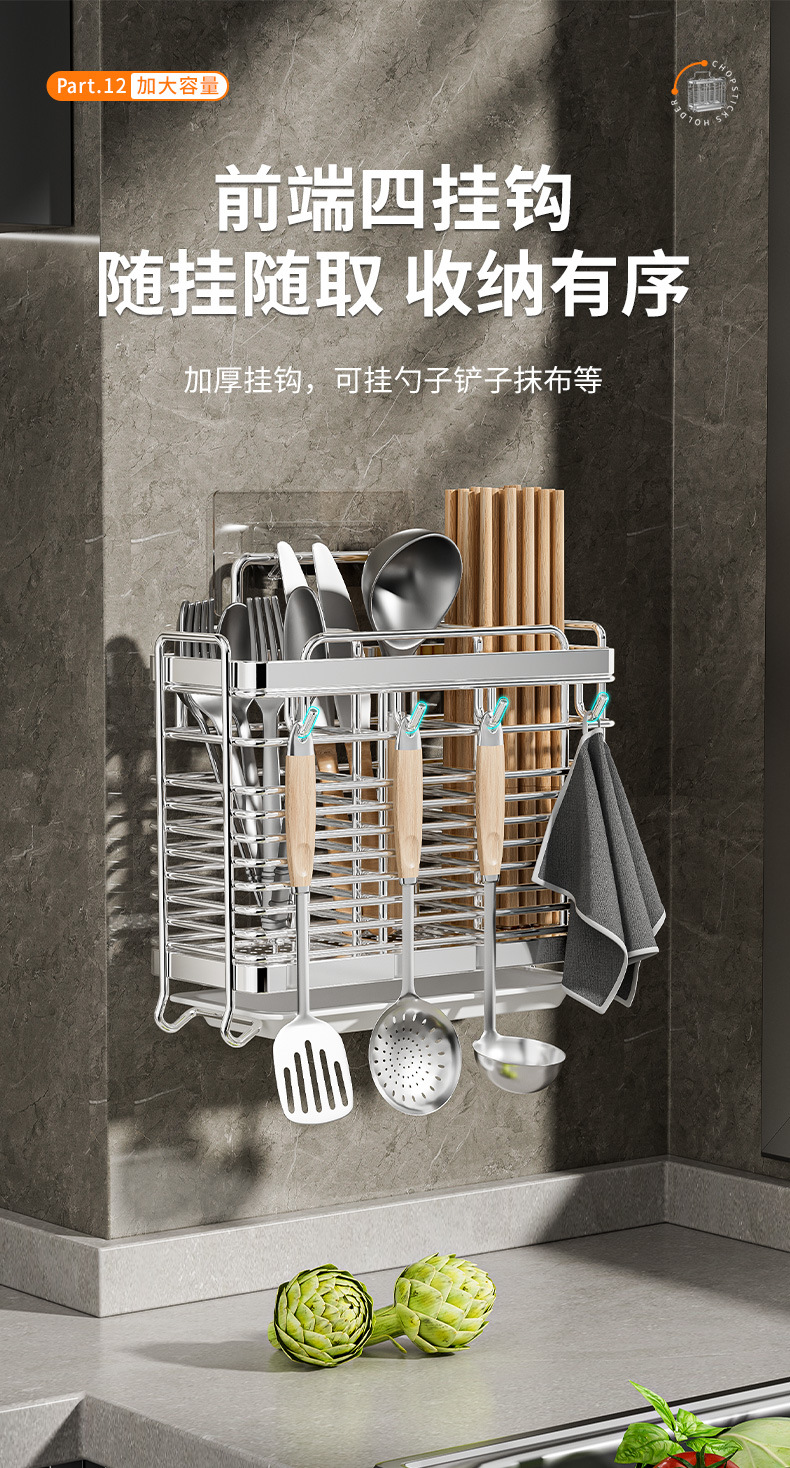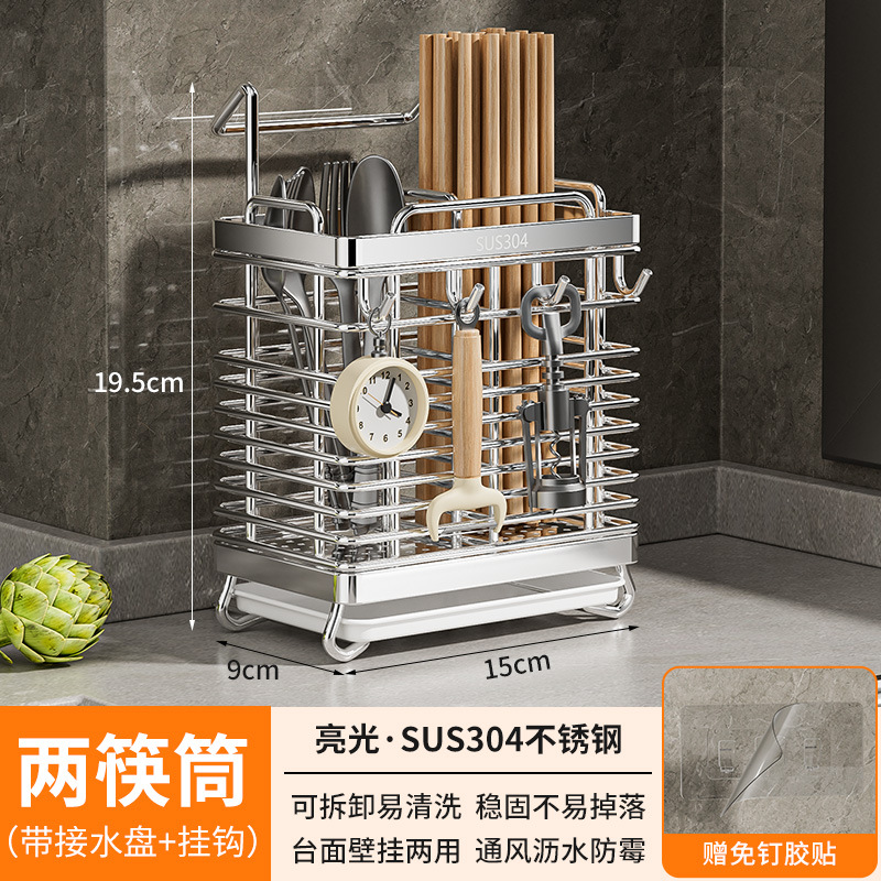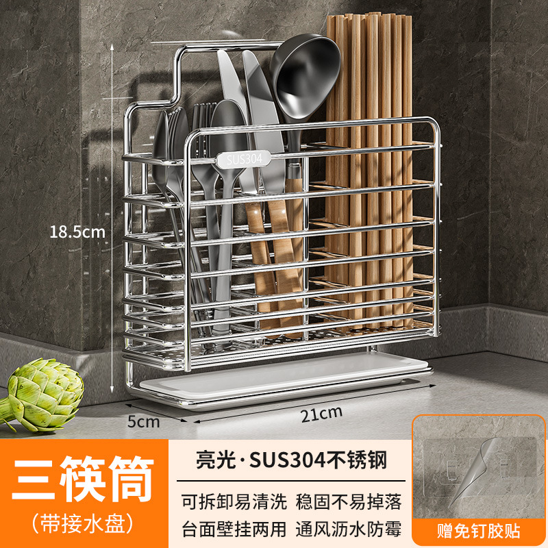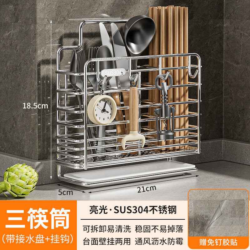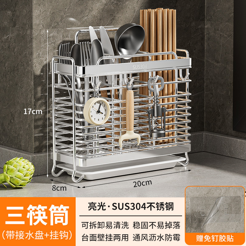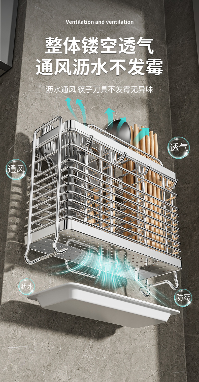 스테인레스 스틸 젓가락통, 벽걸이형 조리대 젓가락통, 곰팡이 방지, 통풍 및 배수 기능이 있는 젓가락통, 젓가락 홀더, 칼 홀더, 일체형 수납 선반