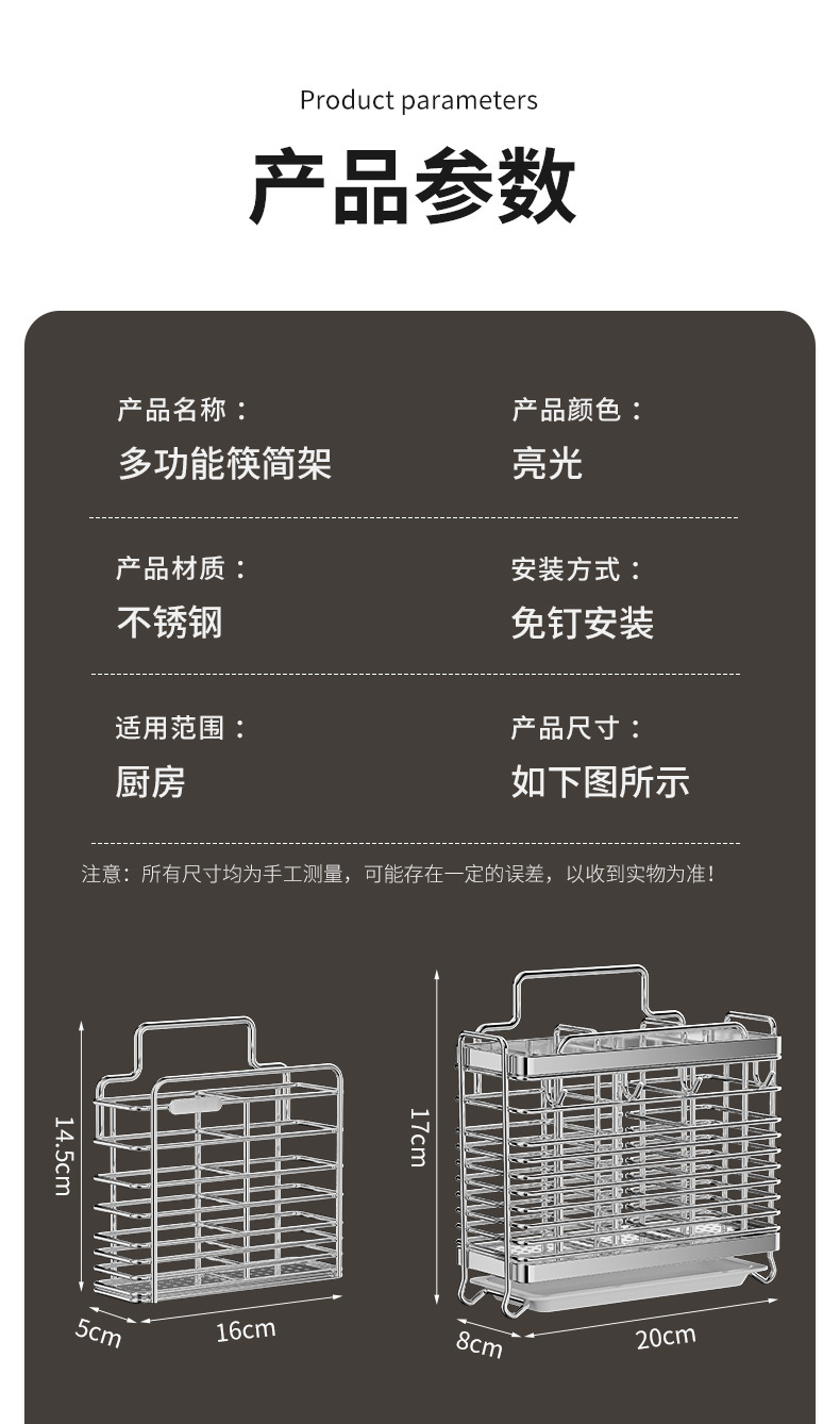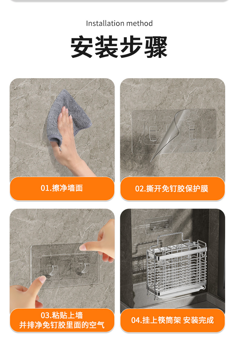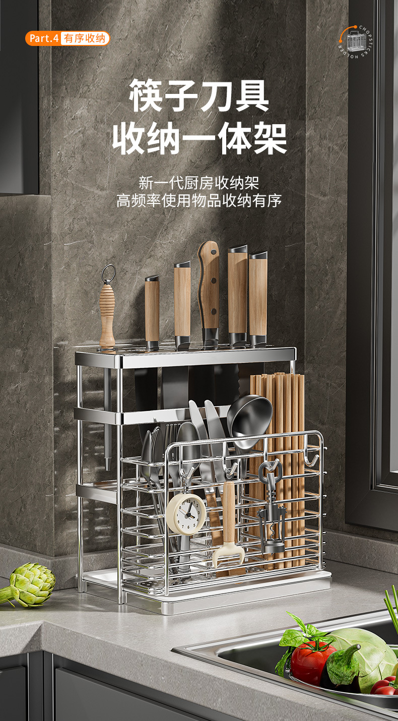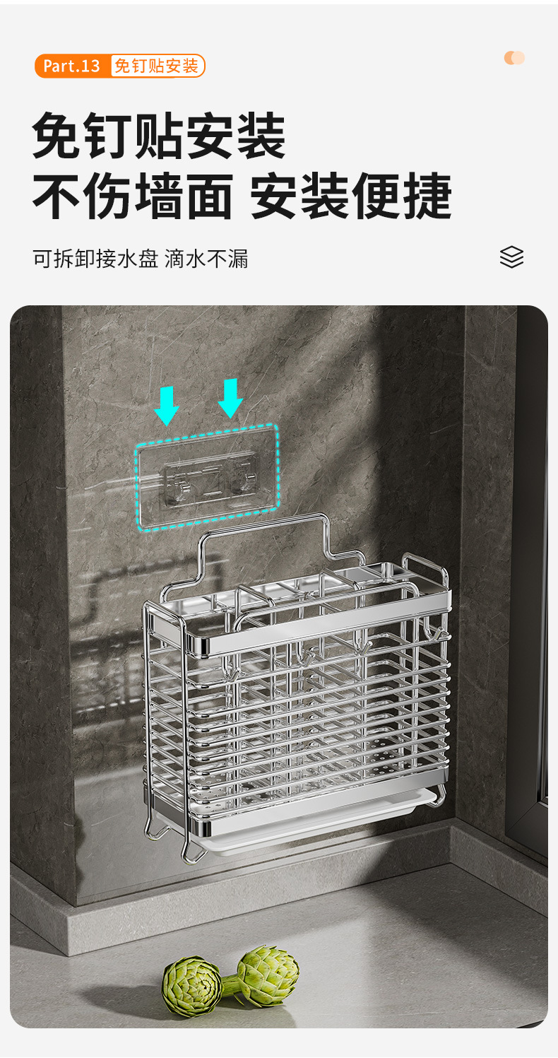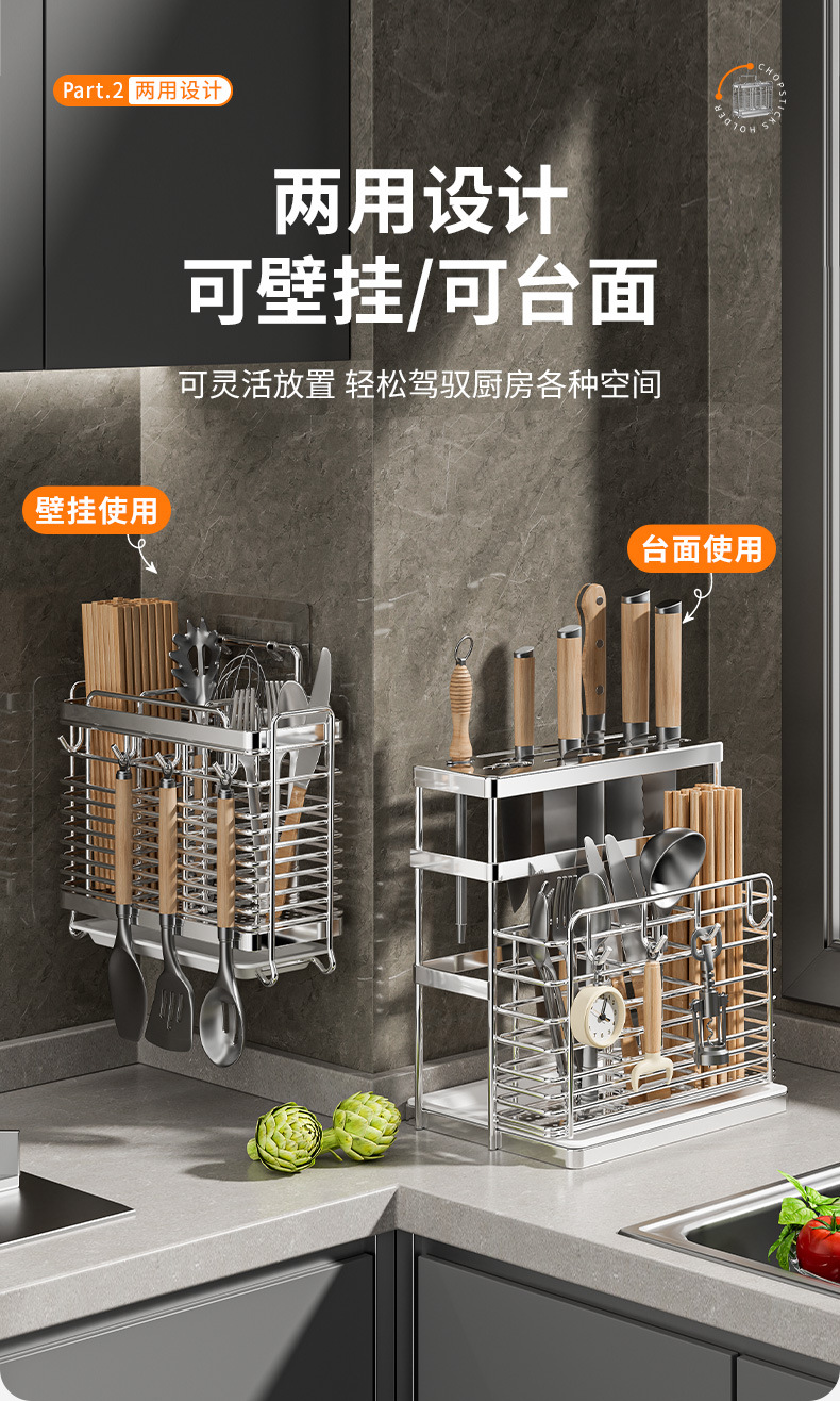 스테인레스 스틸 젓가락통, 벽걸이형 조리대 젓가락통, 곰팡이 방지, 통풍 및 배수 기능이 있는 젓가락통, 젓가락 홀더, 칼 홀더, 일체형 수납 선반