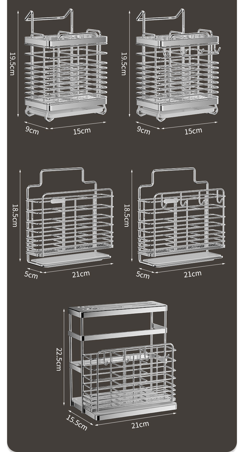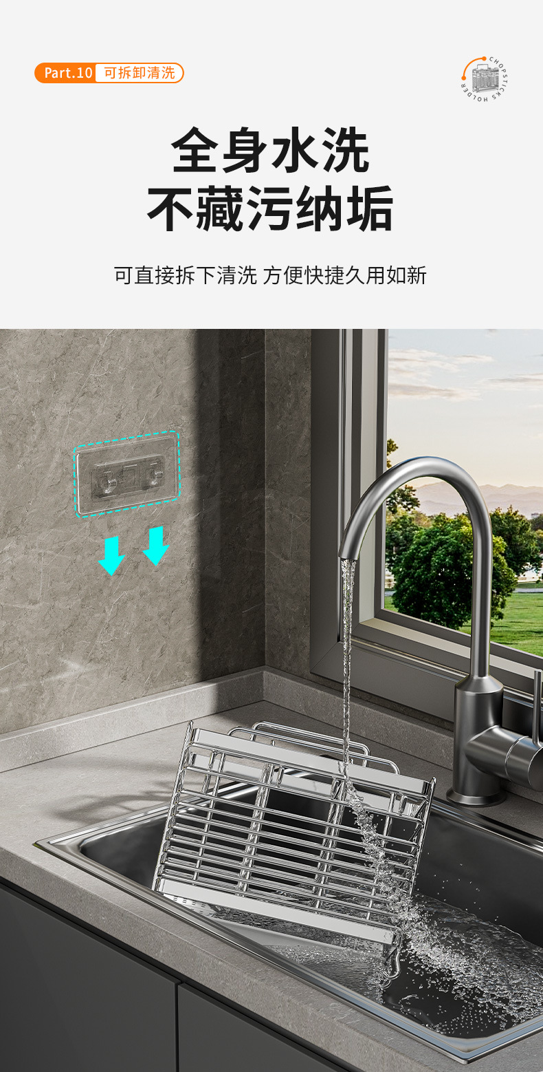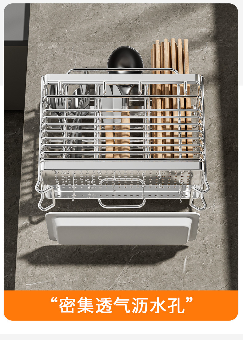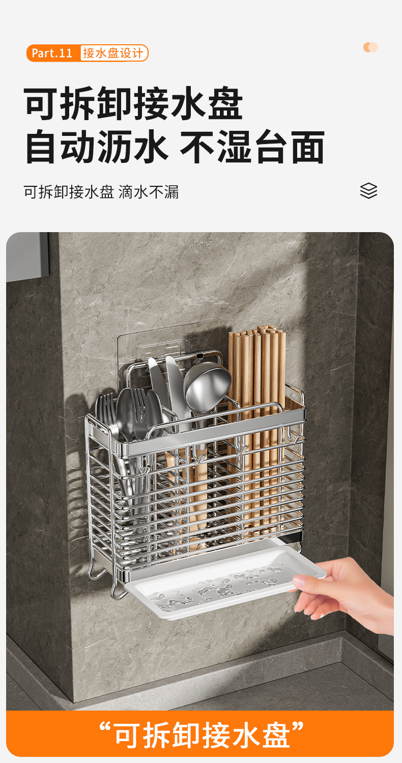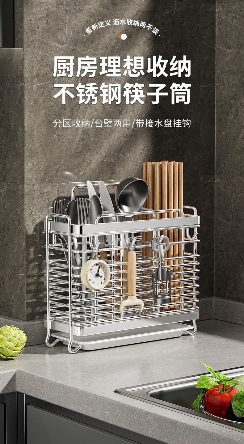 • [플랫 스틸 모델] 이중 칸막이 젓가락 꽂이 - 물받이 + 고리 4개 포함