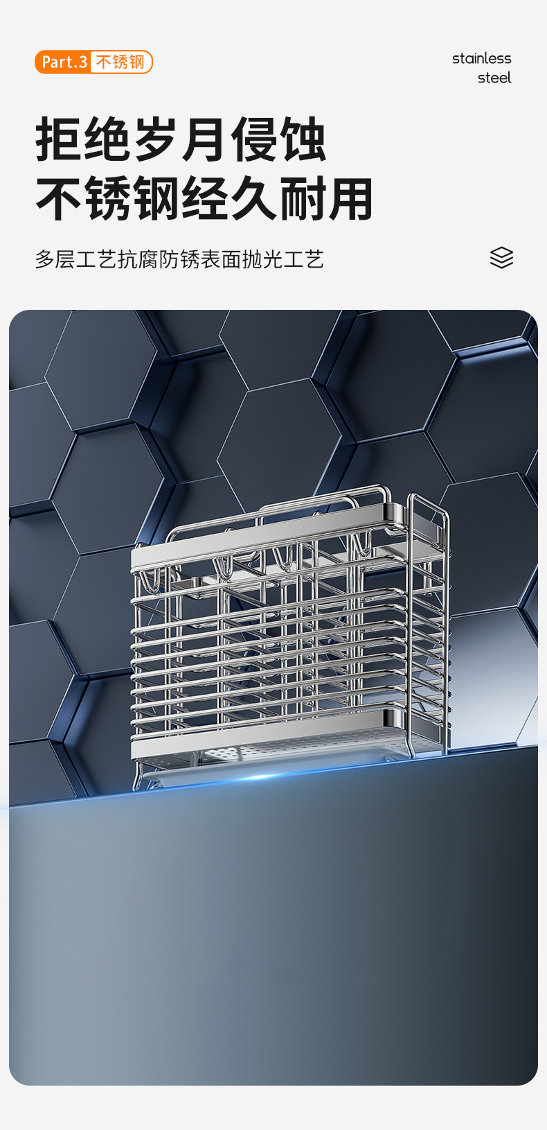 • [플랫 스틸 모델] 3칸 젓가락 꽂이 - 물받이 + 고리 4개 포함