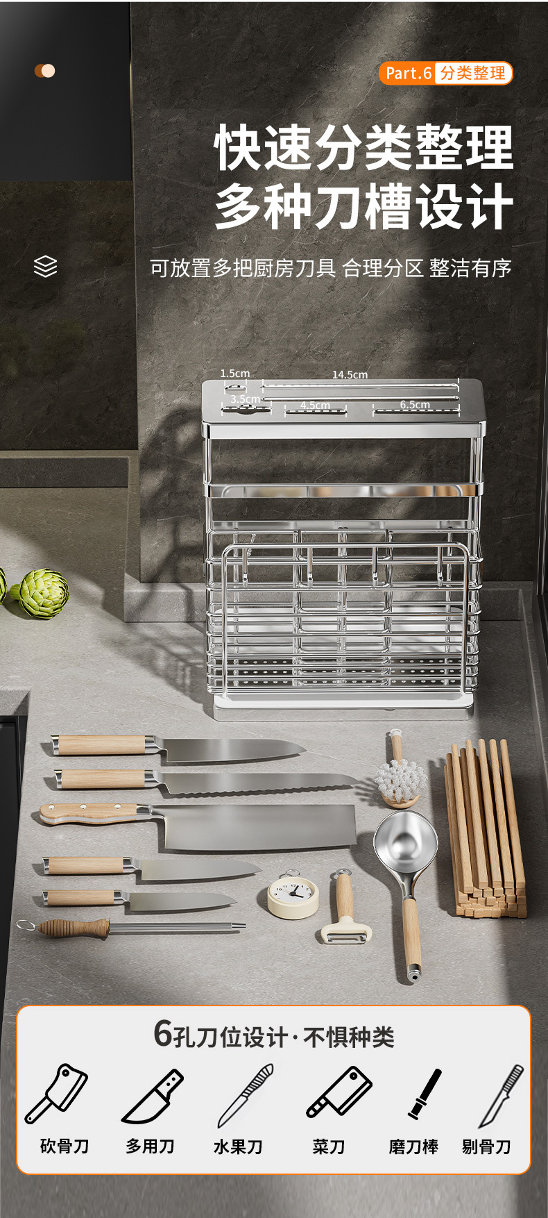 • [플래그십 모델] 3칸 젓가락통 - 물받이 포함 + 고리 4개 - 칼꽂이 포함