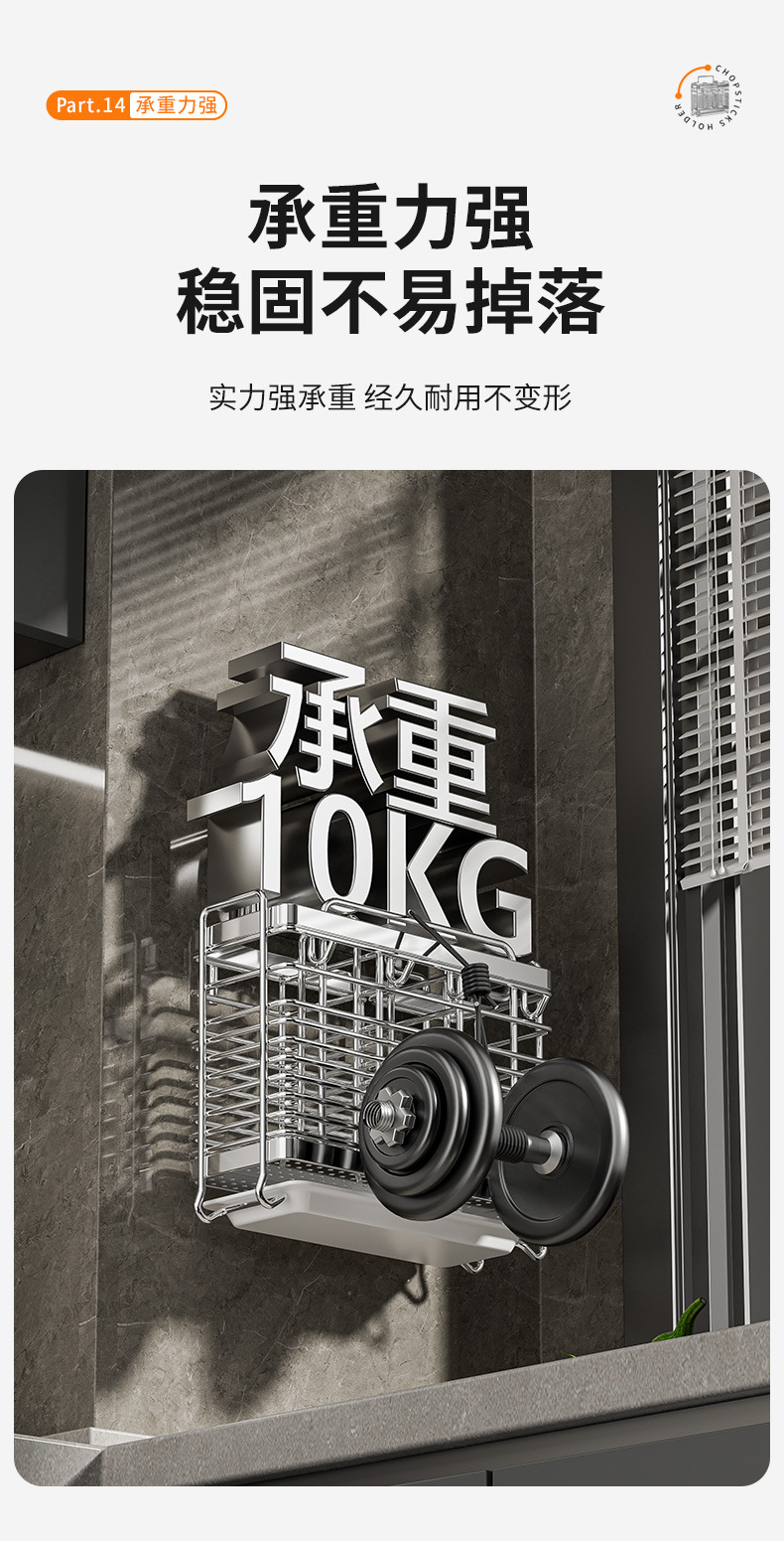 스테인레스 스틸 젓가락통, 벽걸이형 조리대 젓가락통, 곰팡이 방지, 통풍 및 배수 기능이 있는 젓가락통, 젓가락 홀더, 칼 홀더, 일체형 수납 선반스토어 가기
