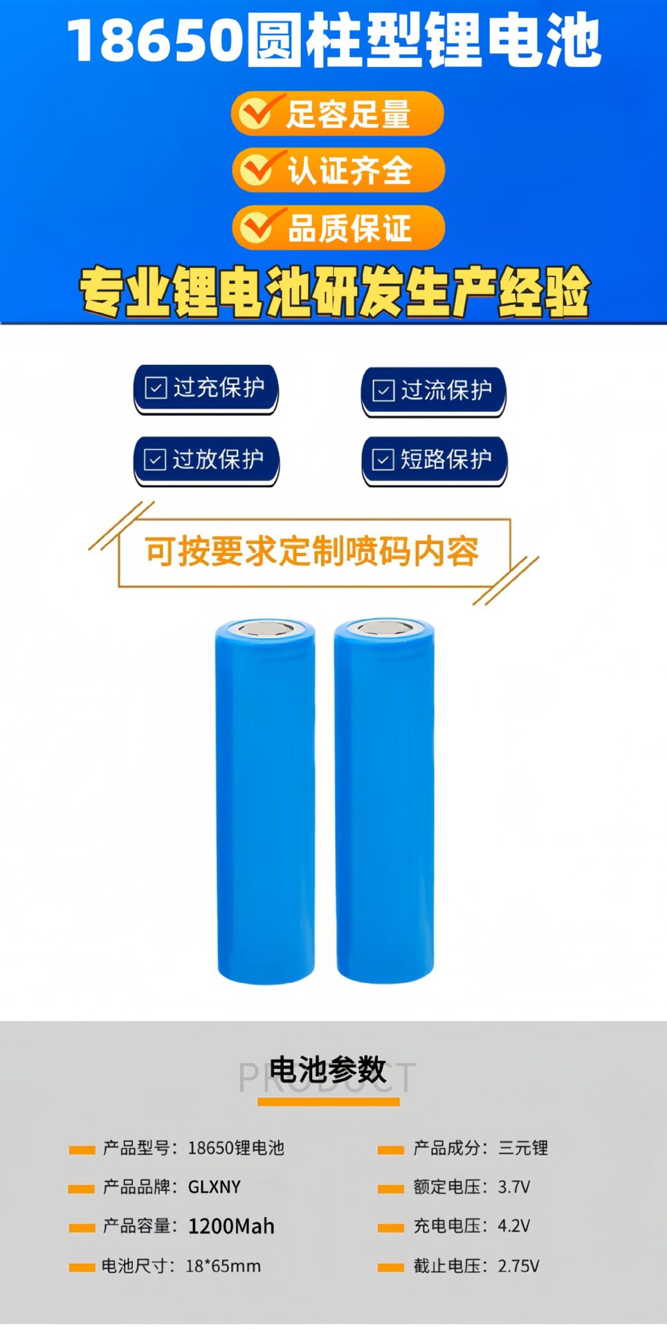 18650 리튬 배터리 1200mAh 플랫 헤드/팁 3.7V 휴대용 팬 비상 램프 헤드 라이트 손전등 배터리스토어 가기