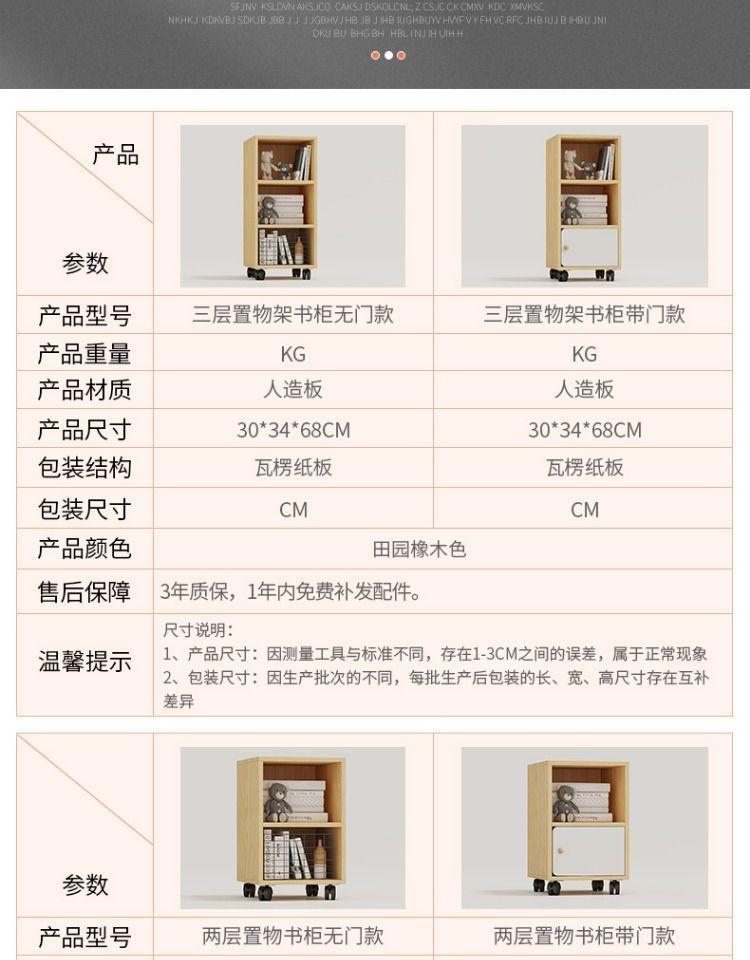 • 45X30X68 따뜻한 흰색 캐비닛 도어(바퀴 포함)