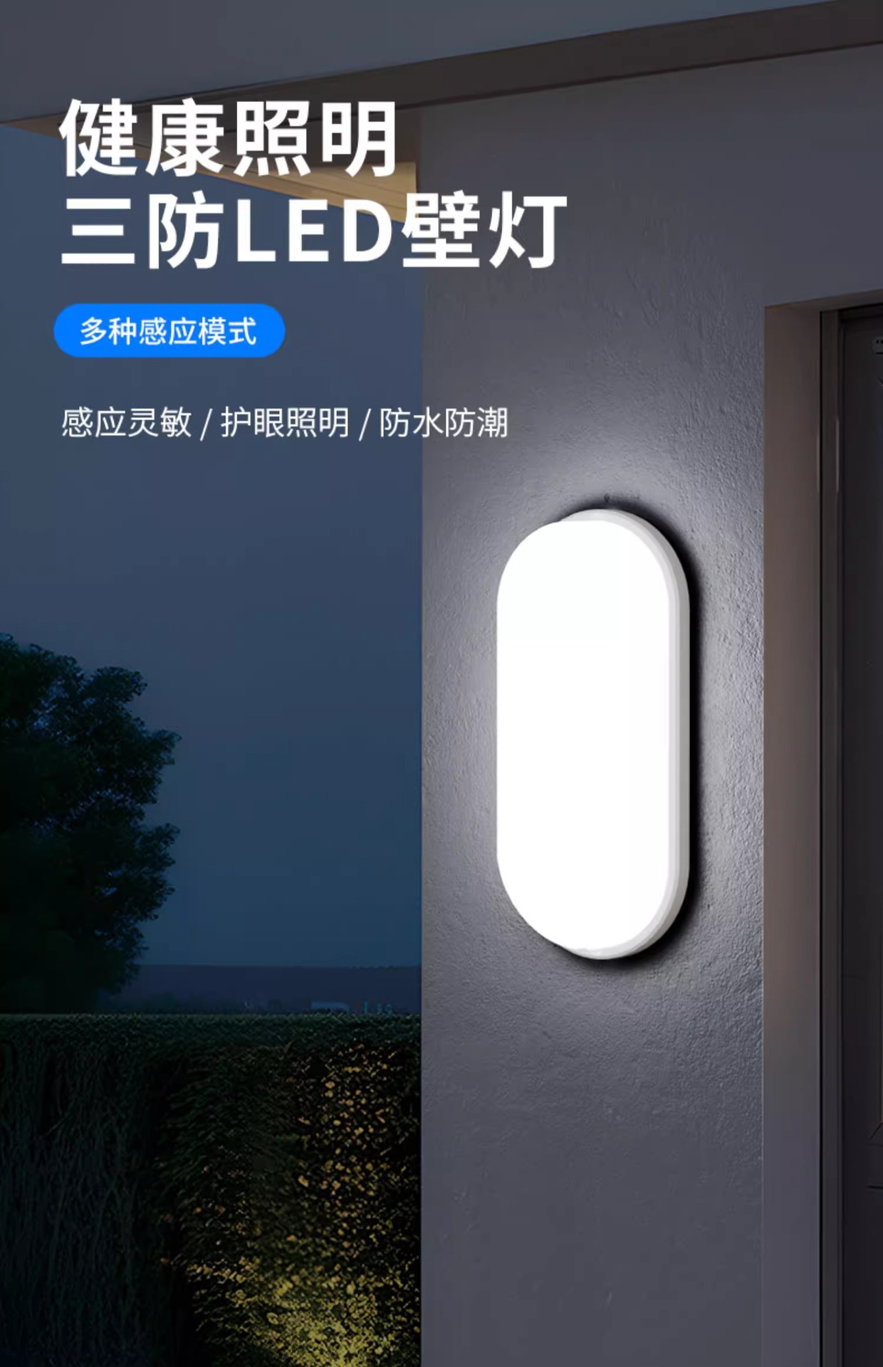 빌라 정원 벽 소리 및 조명 제어 야외 벽 램프 방수 발코니 야외 안뜰 문 인체 적외선 센서 램프