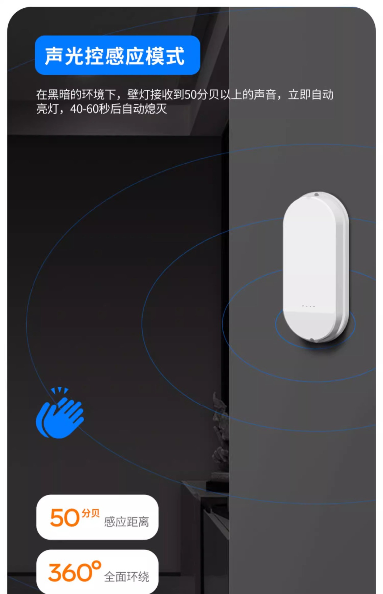 • 음향 및 조명 제어 [가정 장식에 권장 - 소리가 나면 불이 켜짐] 20W (223_98_37mm)