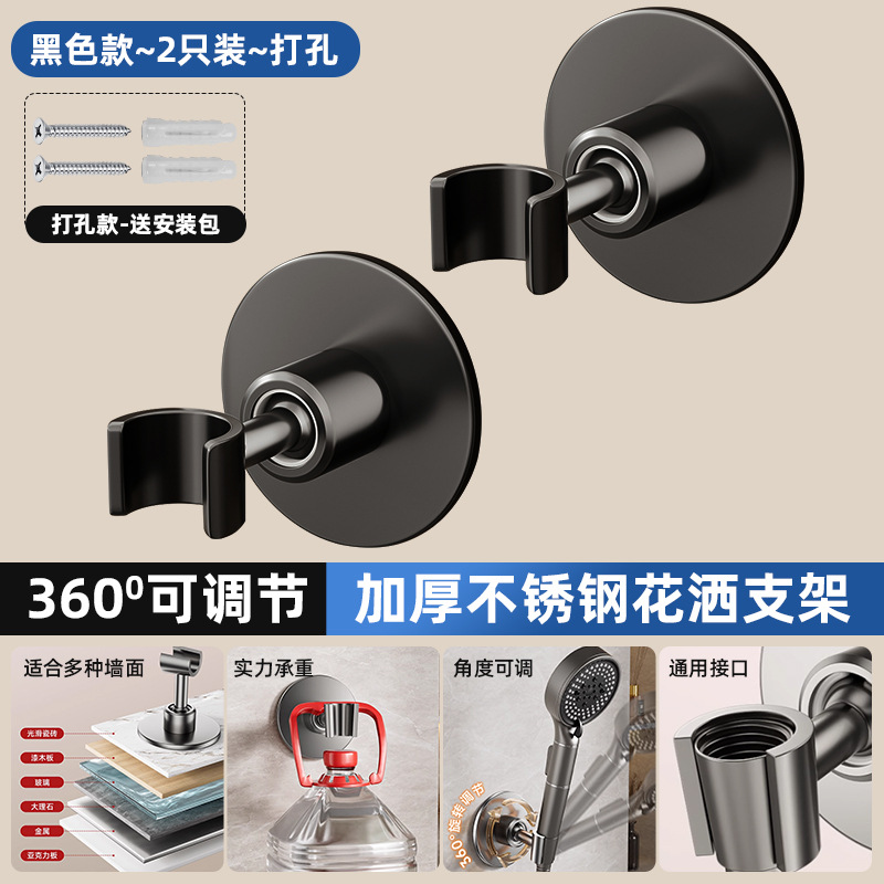 • [블랙] 2개 더 할인 - 펀치형 [360 ° 조절 가능】두꺼운 스테인레스 스틸 샤워 홀더
