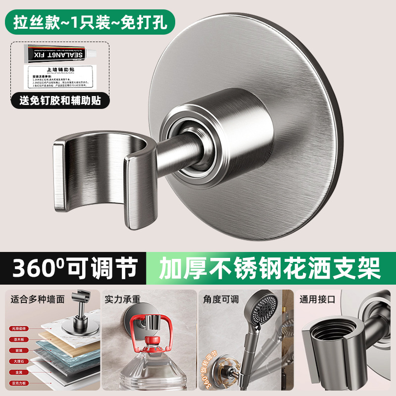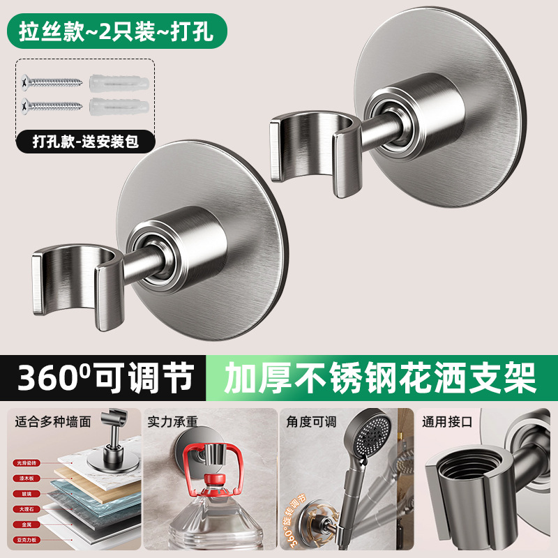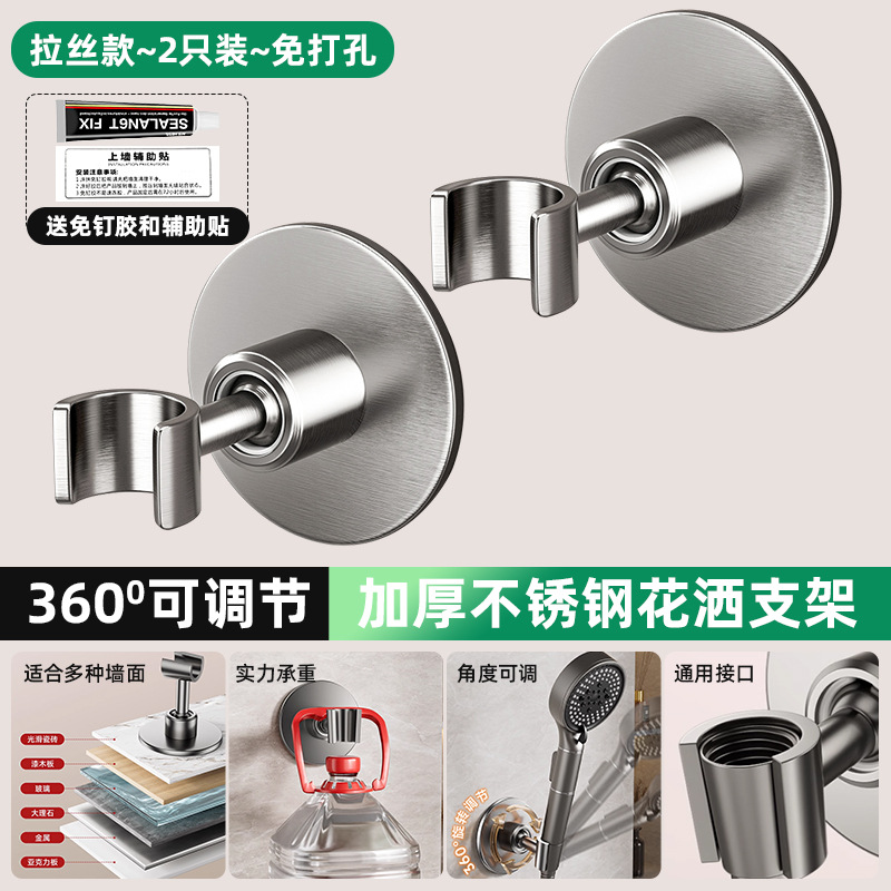 • [브러쉬드] 2개 더 할인 - 펀칭 없음 모델 [360 ° 조절 가능】두꺼운 스테인레스 스틸 샤워 홀더