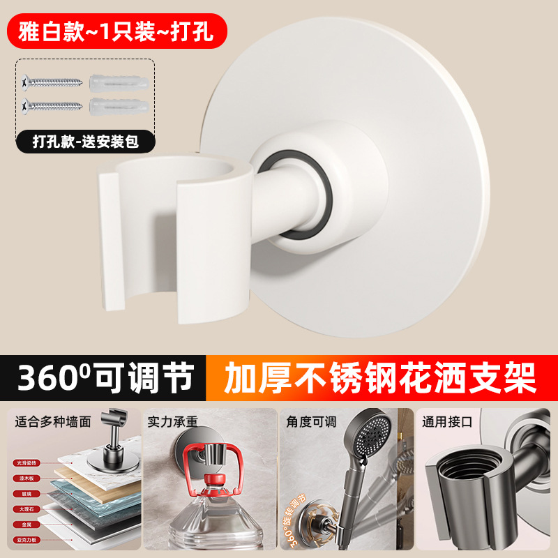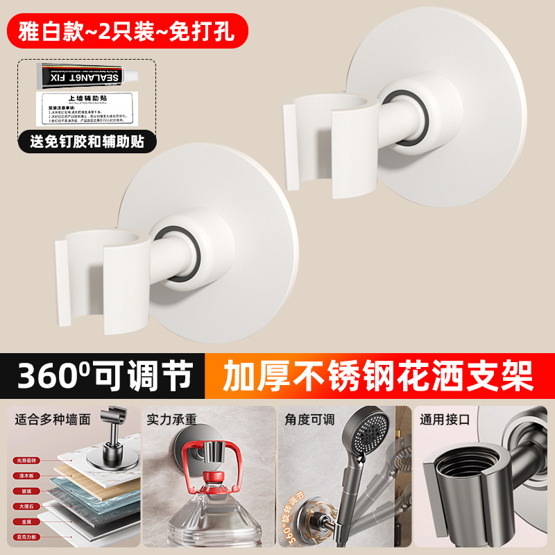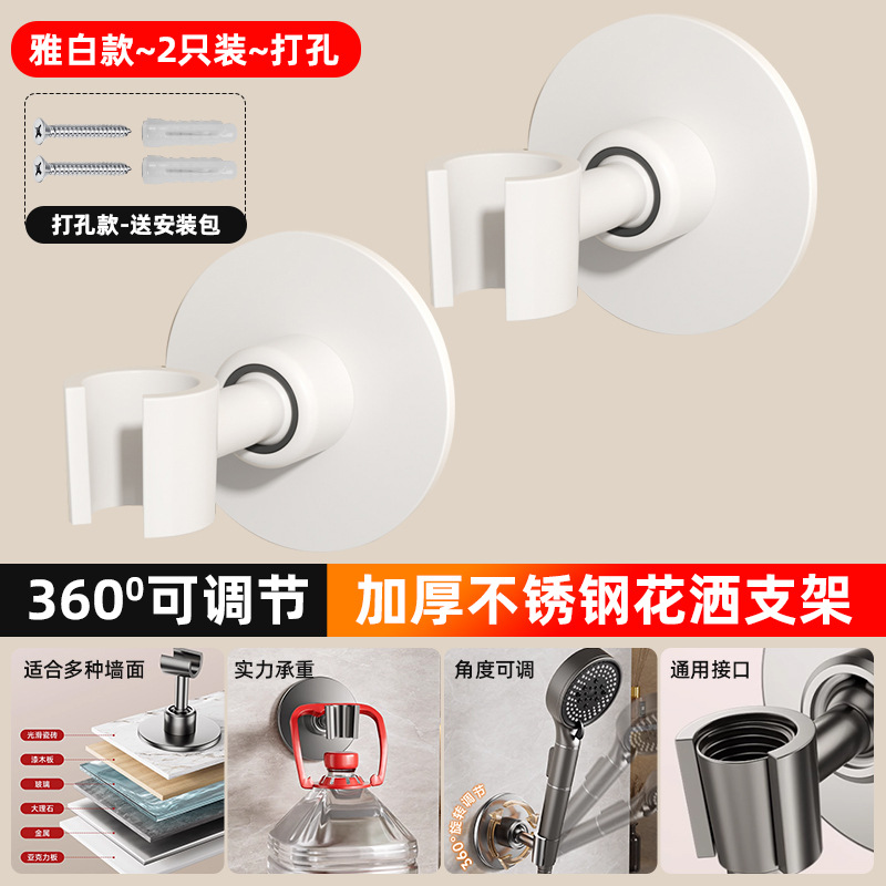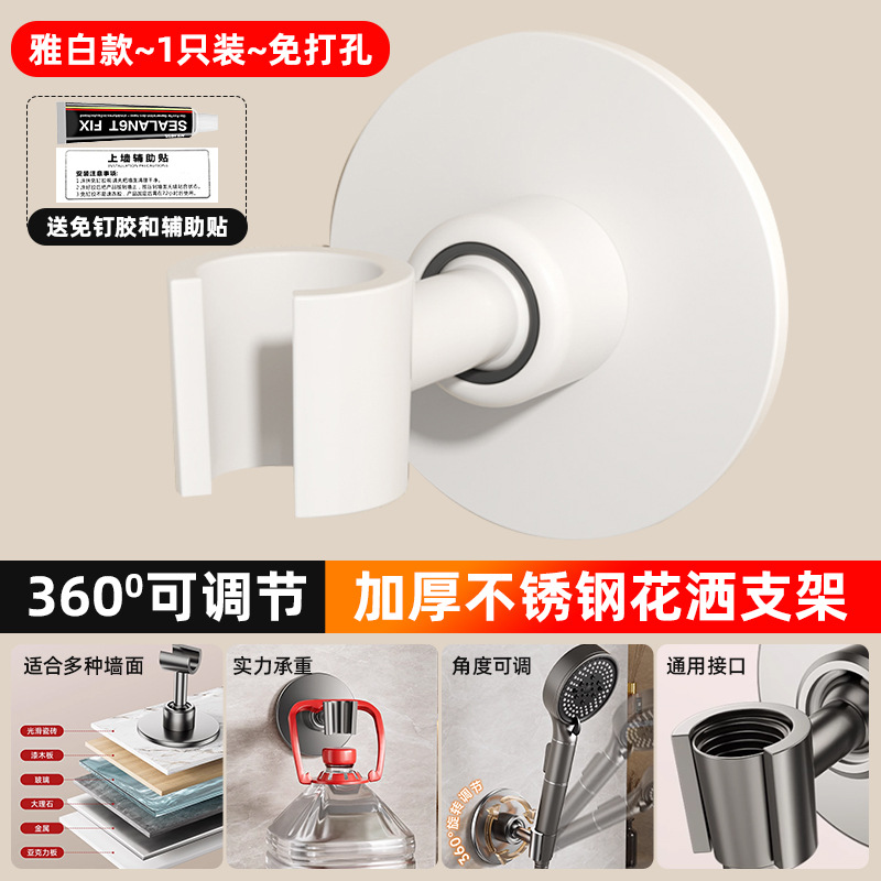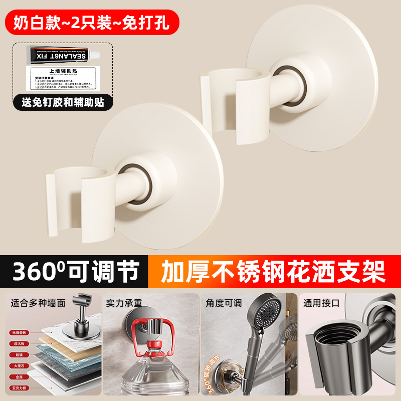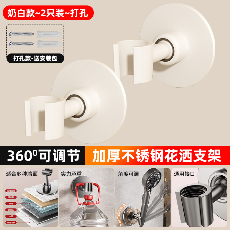 • [밀크화이트] 2개 더 할인 - 펀치형 [360 ° 조절 가능】두꺼운 스테인레스 스틸 샤워 홀더