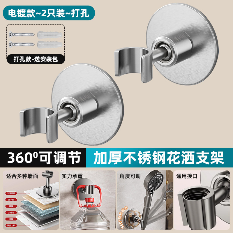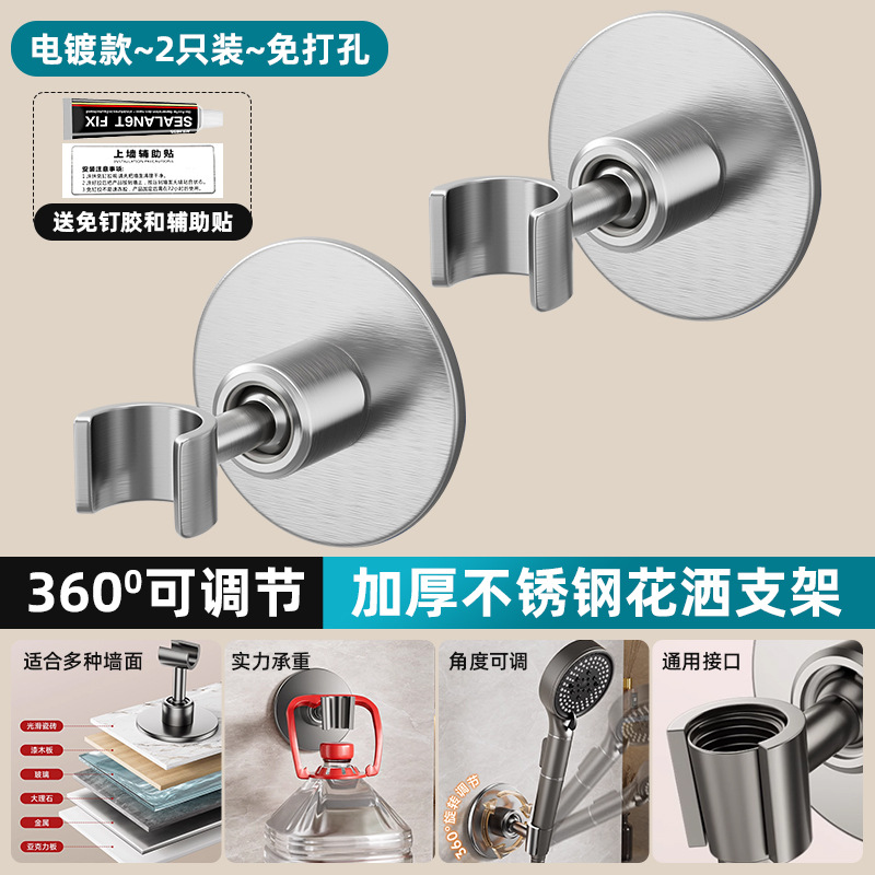 • [전기도금] 2개 더 할인 - 펀치형 [360 ° 조절 가능】두꺼운 스테인레스 스틸 샤워 홀더