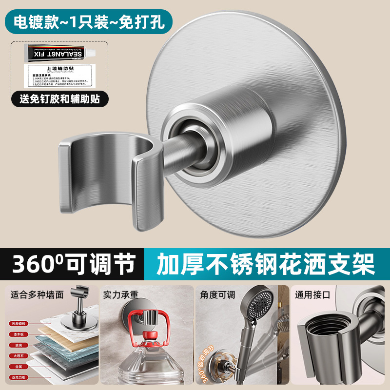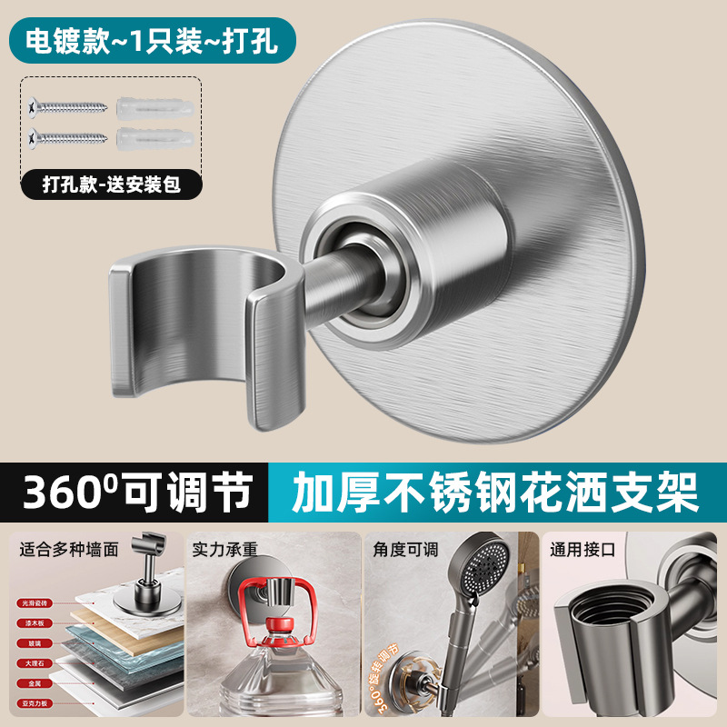 • [전기도금] 펀칭 없음 모델 [360 ° 조절 가능】두꺼운 스테인레스 스틸 샤워 홀더
