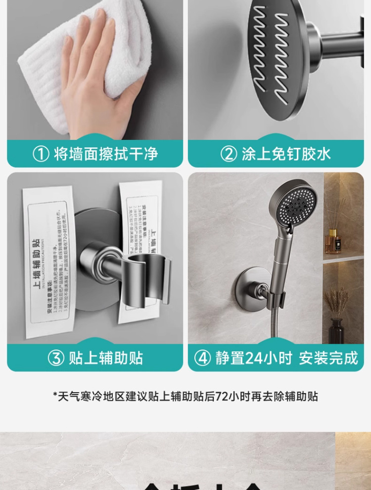 • [기모] 펀칭 없음 모델 [360 ° 조절 가능】두꺼운 스테인레스 스틸 샤워 홀더