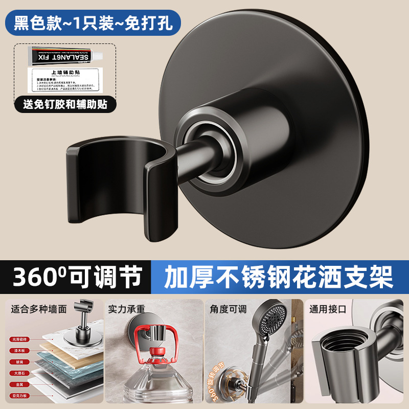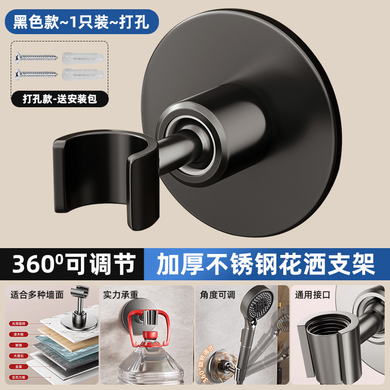 • [블랙] 천공형 모델 [360 ° 조절 가능】두꺼운 스테인레스 스틸 샤워 홀더