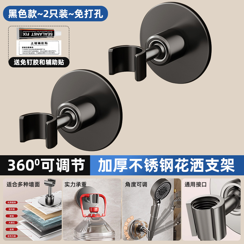 • [블랙] 2개 추가 할인 - 펀칭 없음 모델 [360 ° 조절 가능】두꺼운 스테인레스 스틸 샤워 홀더