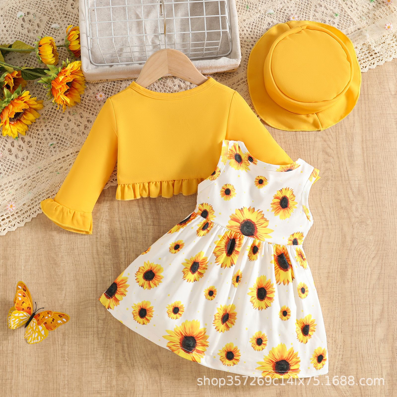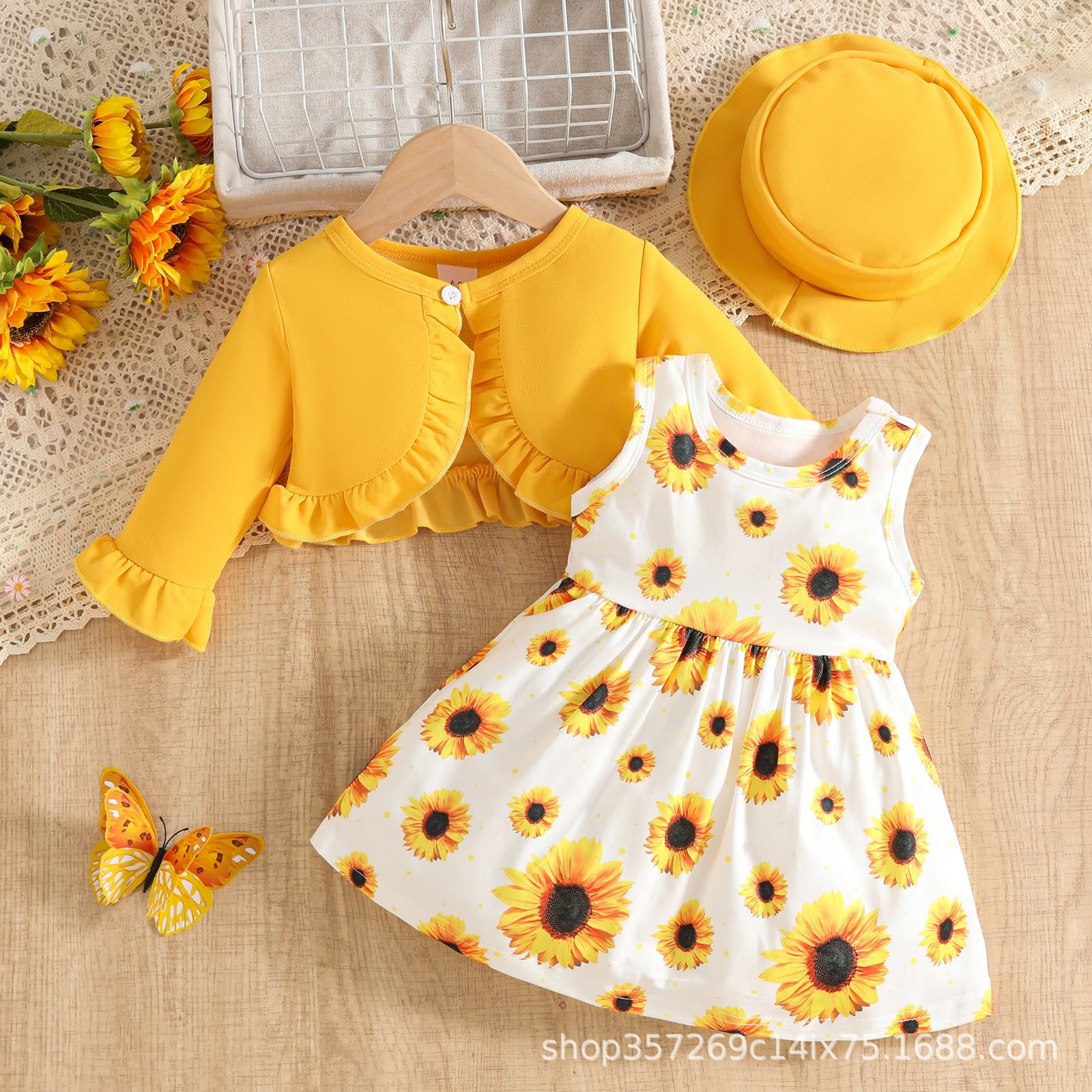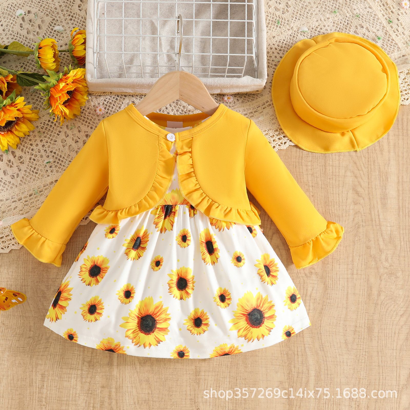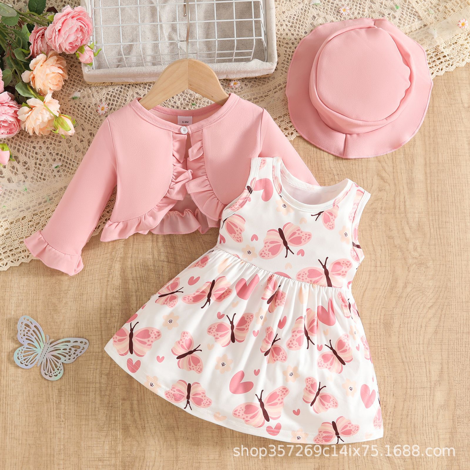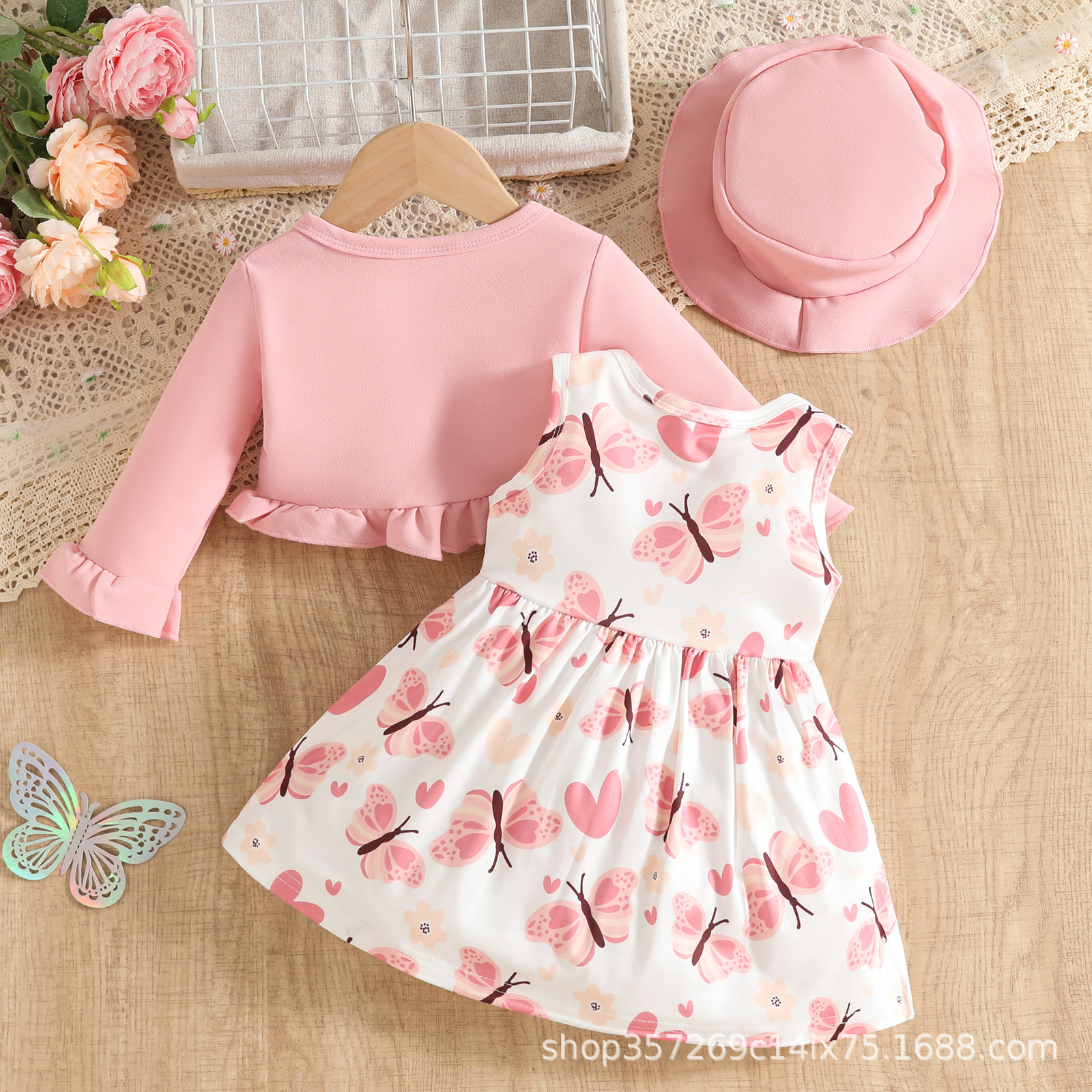 새로운 아기 소녀 귀여운 서양식 꽃무늬 스커트 + 단색 카디건 재킷 + 단색 모자 아기 소녀를위한 3 피스 양복