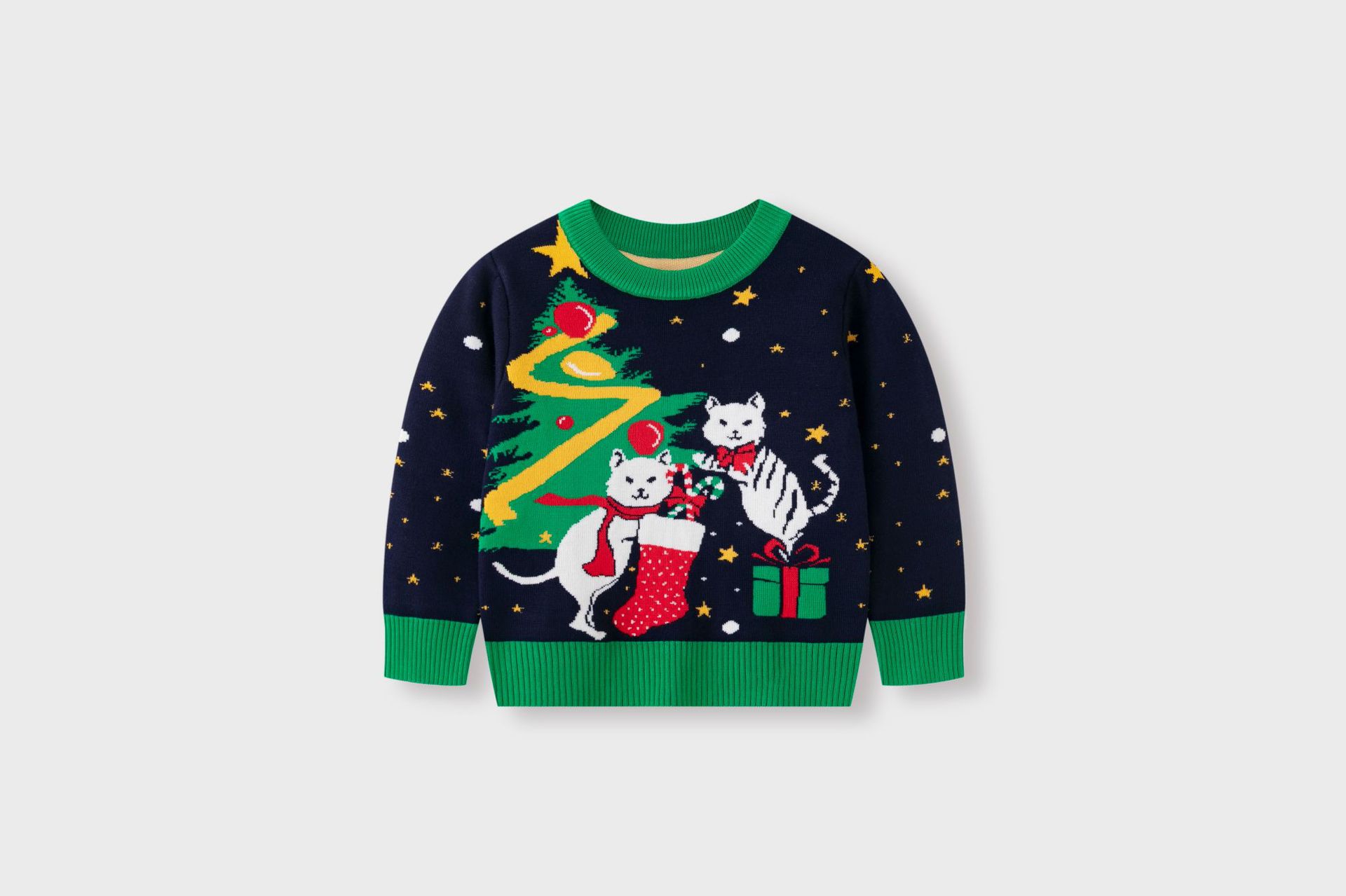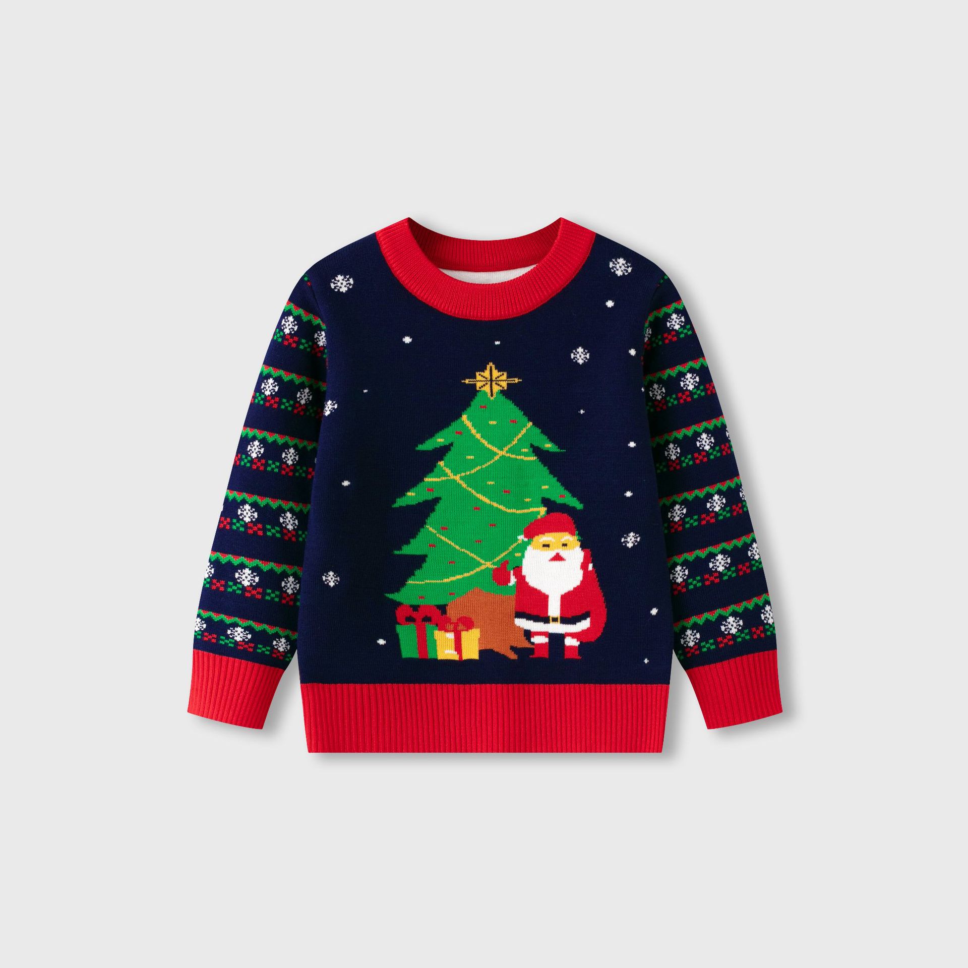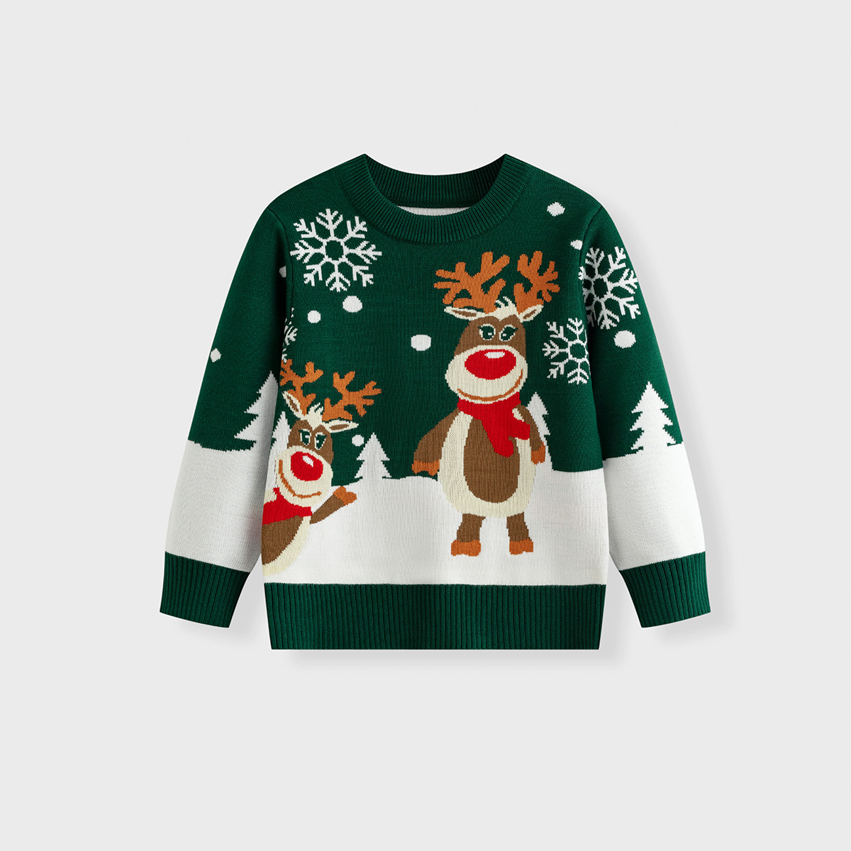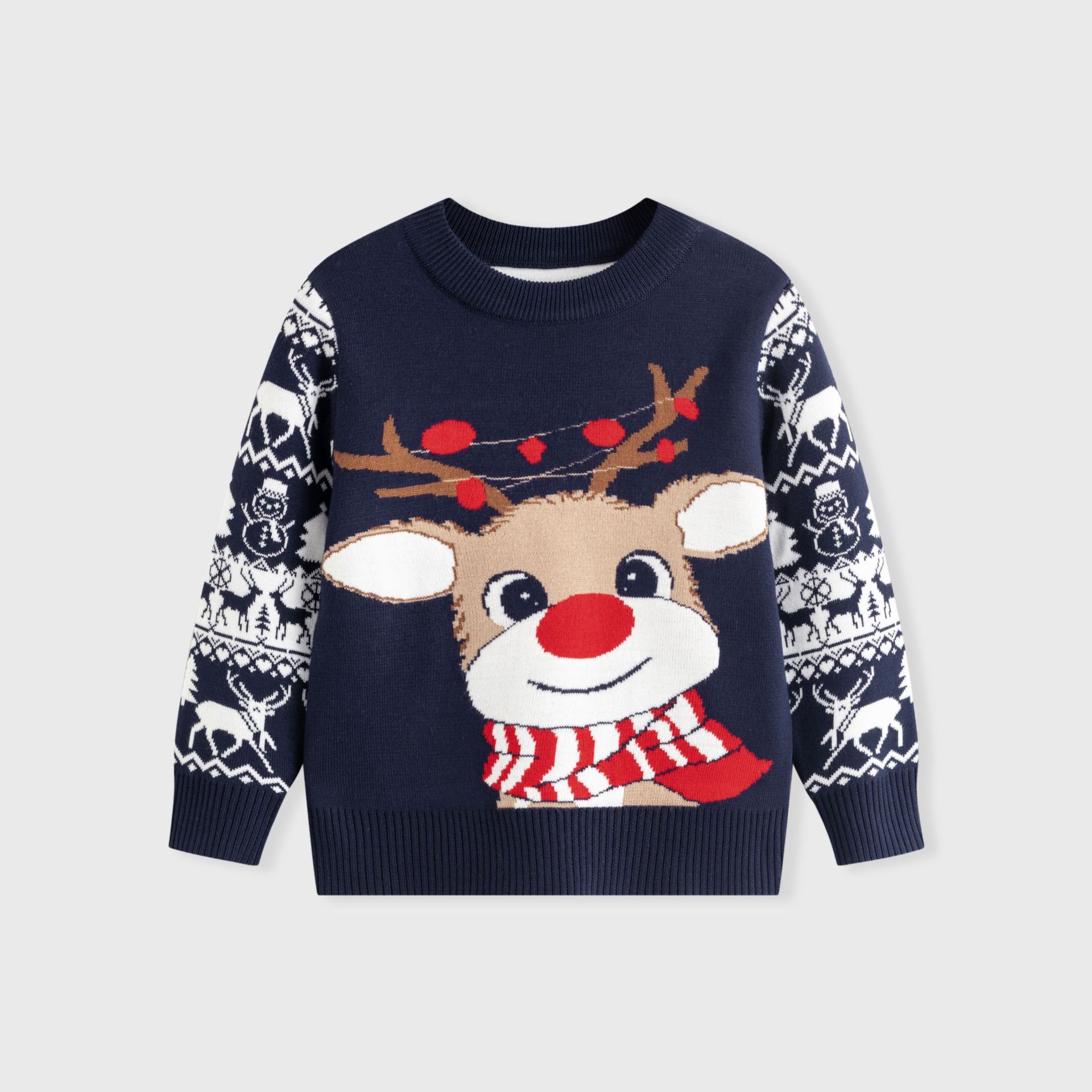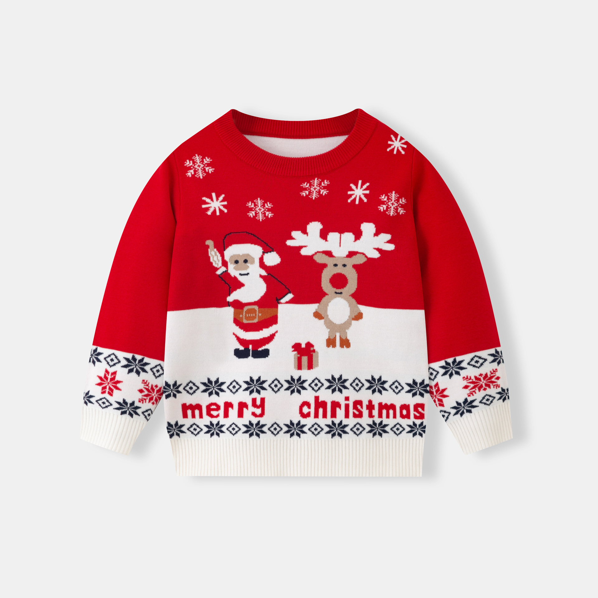 대외 무역 가을, 겨울 새로운 스타일 2025 남성과 여성의 아기 니트 크리스마스 스웨터 만화 라운드 넥 스웨터스토어 가기