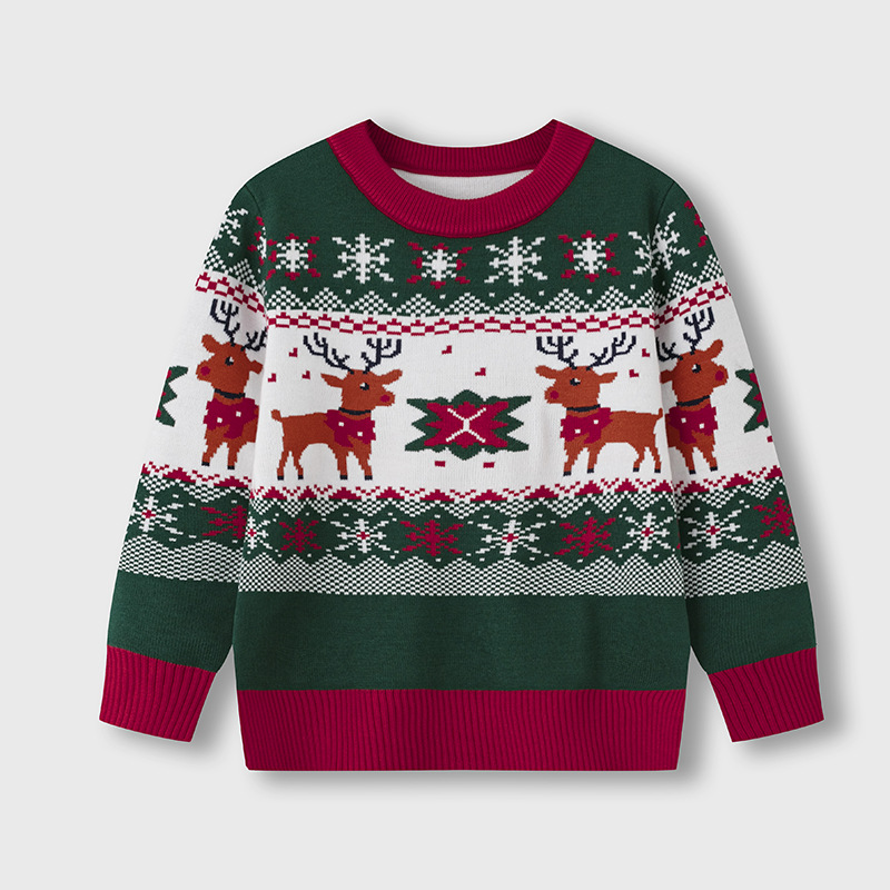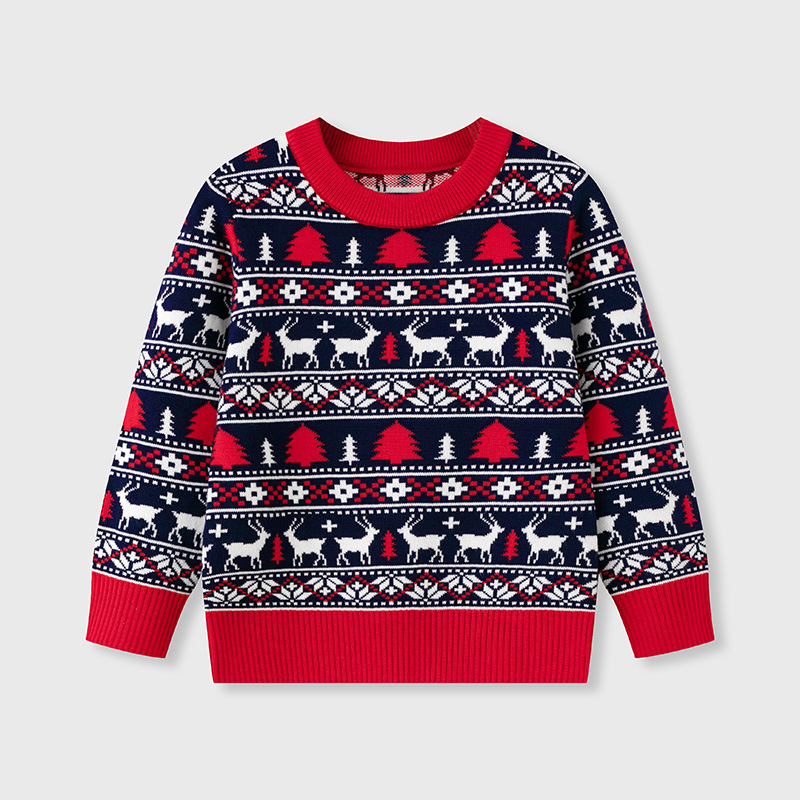 대외 무역 가을, 겨울 새로운 스타일 2025 남성과 여성의 아기 니트 크리스마스 스웨터 만화 라운드 넥 스웨터