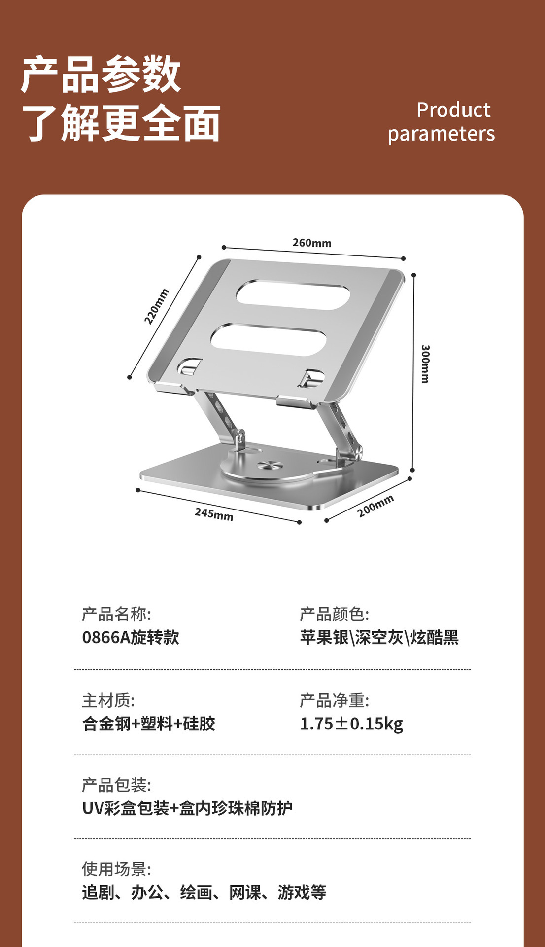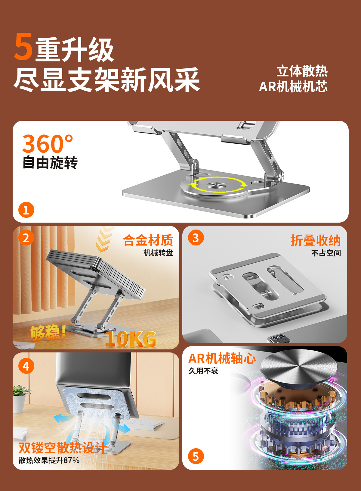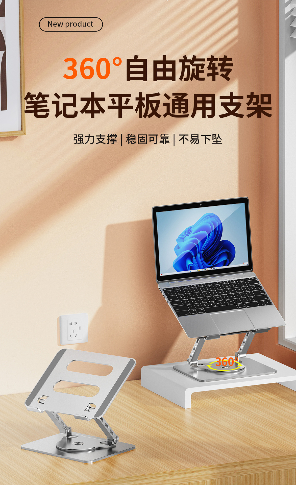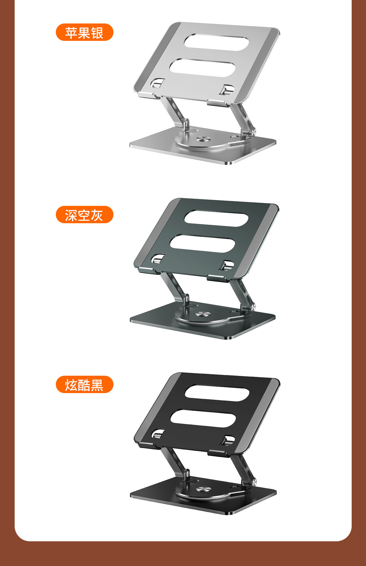 국경 간 신제품 회전 노트북 스탠드 금속 컴퓨터 브래킷 데스크탑 접이식 높이 조절 확장