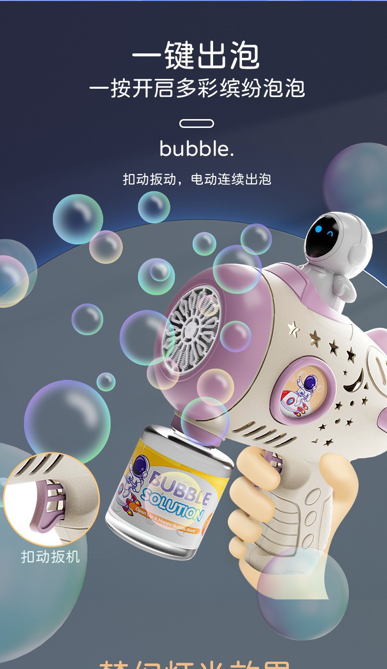 국경 간 우주 비행사 버블 머신 우주 비행사 완전 자동 전기 버블 건 휴대용 어린이 장난감 도매스토어 가기