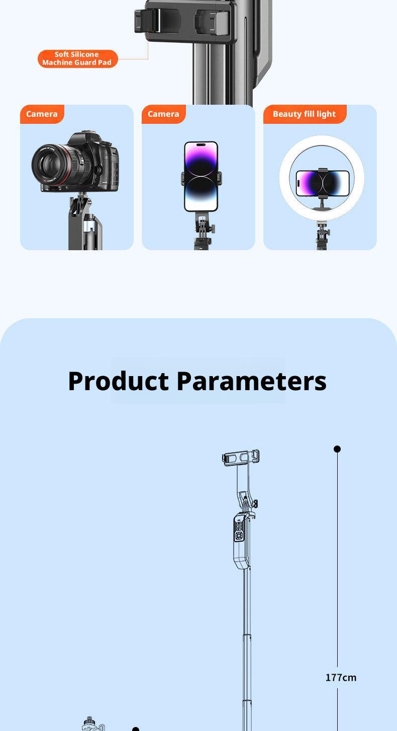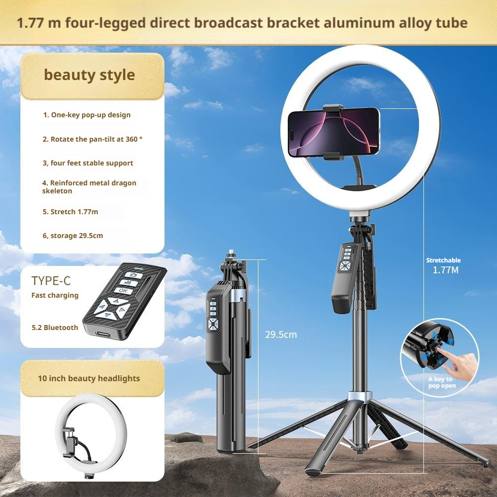 • P19TK 10inch 라이트 버전 블랙 [ 1.77m + 스태빌라이저 핸들 + 충전식 리모콘 + 원클릭 팝업 삼각대 + 10inch 조명 ]