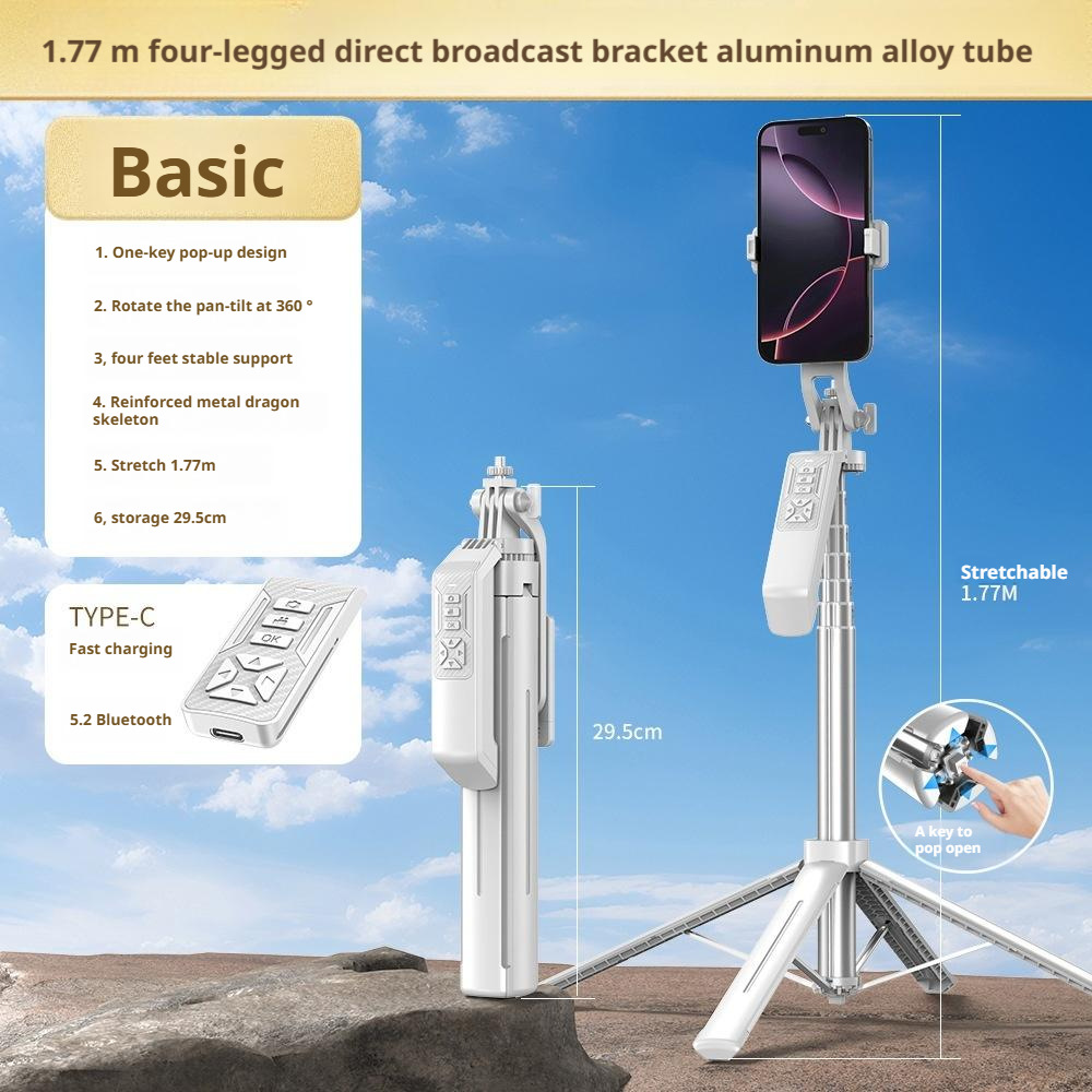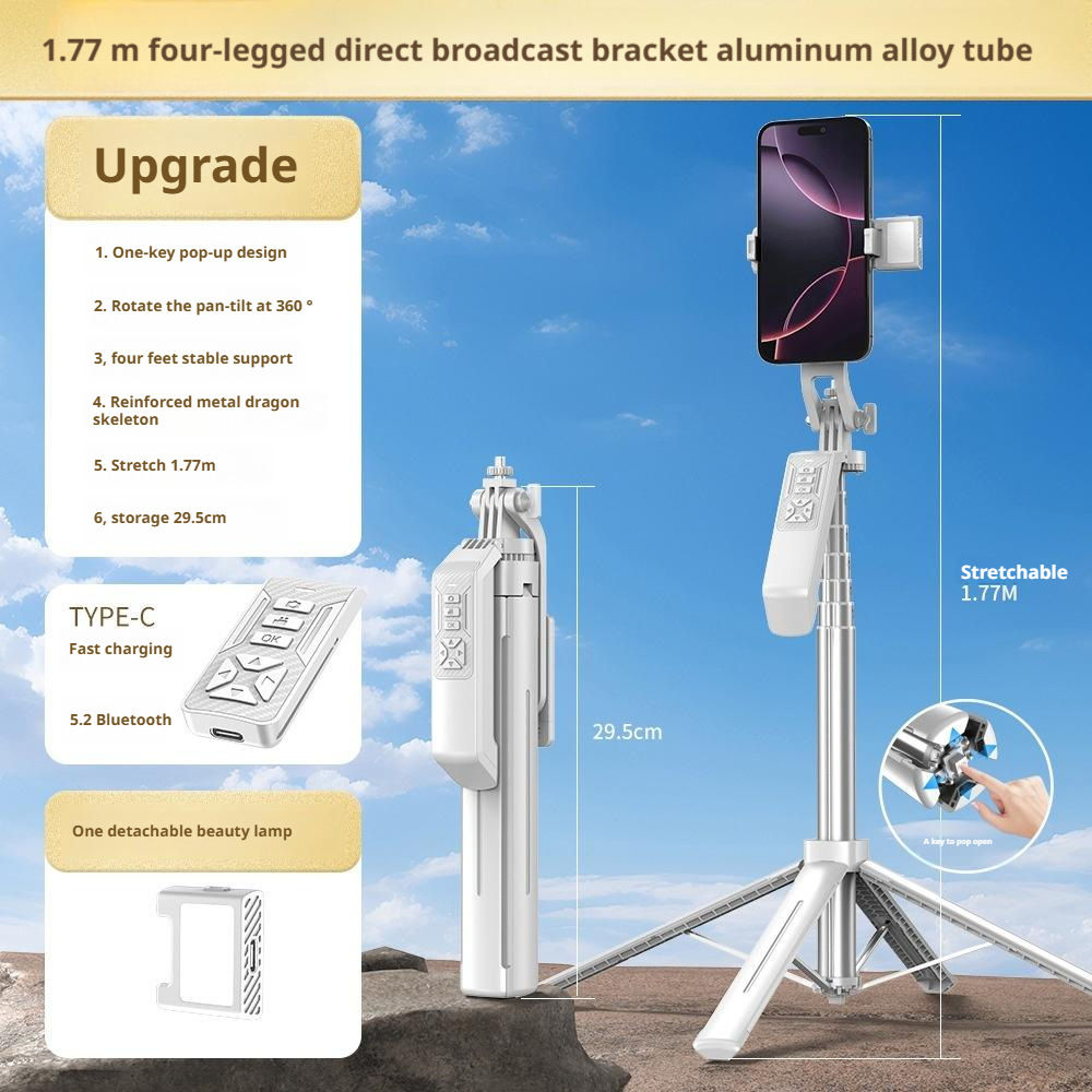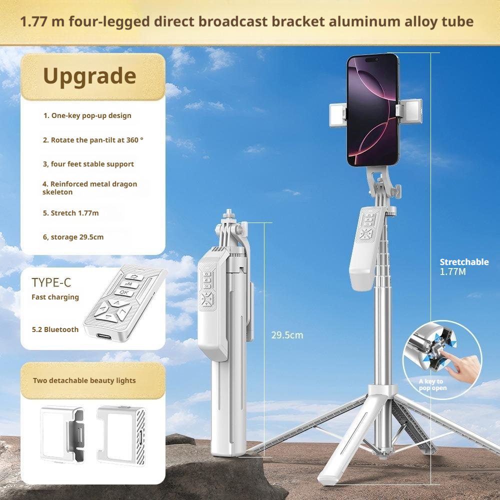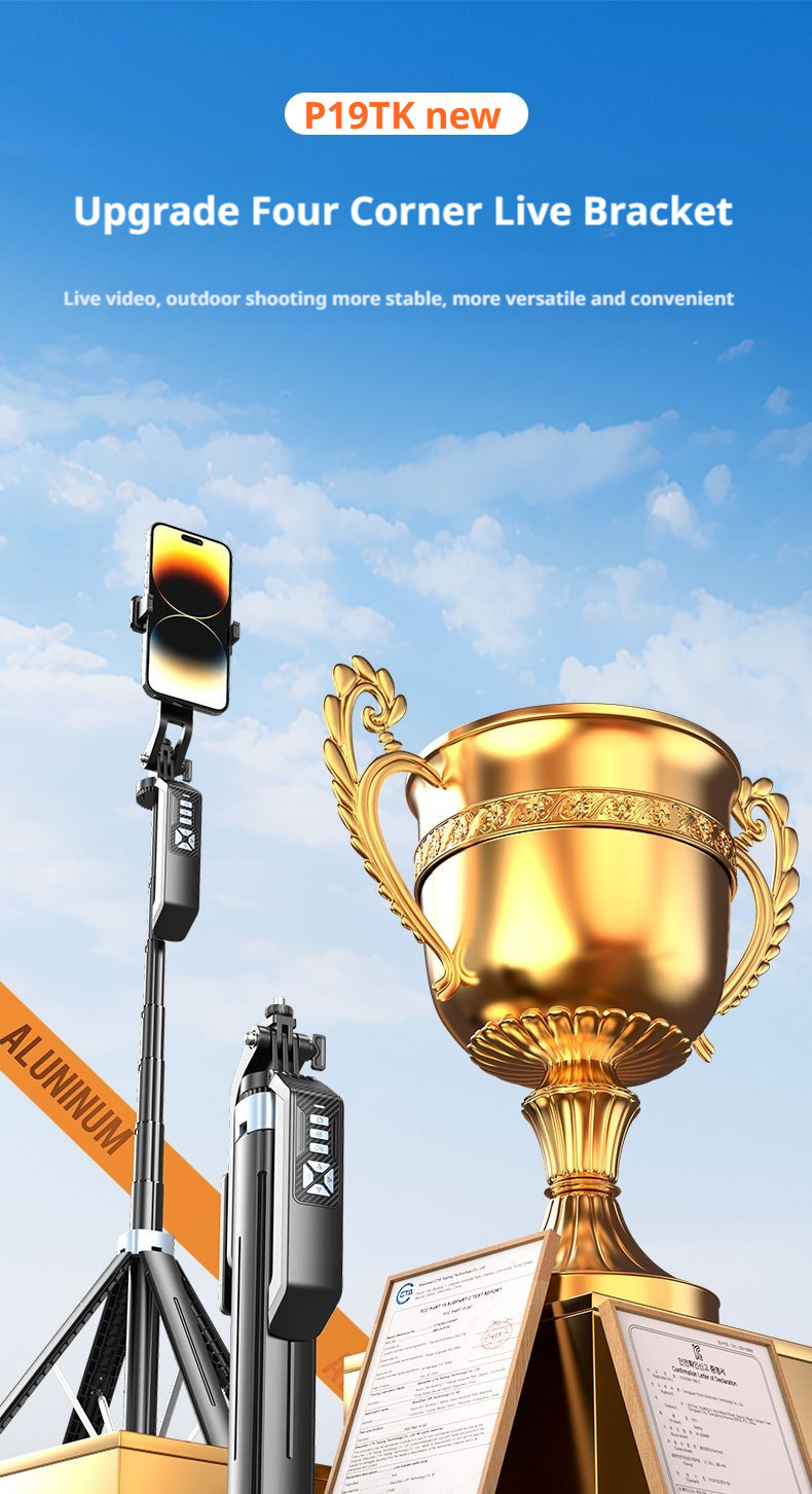 • P19TK 표준 버전 화이트 [ 1.77m + 안정적인 촬영 핸들 + 충전식 리모콘 + 원클릭 팝업 테트라포드 ]