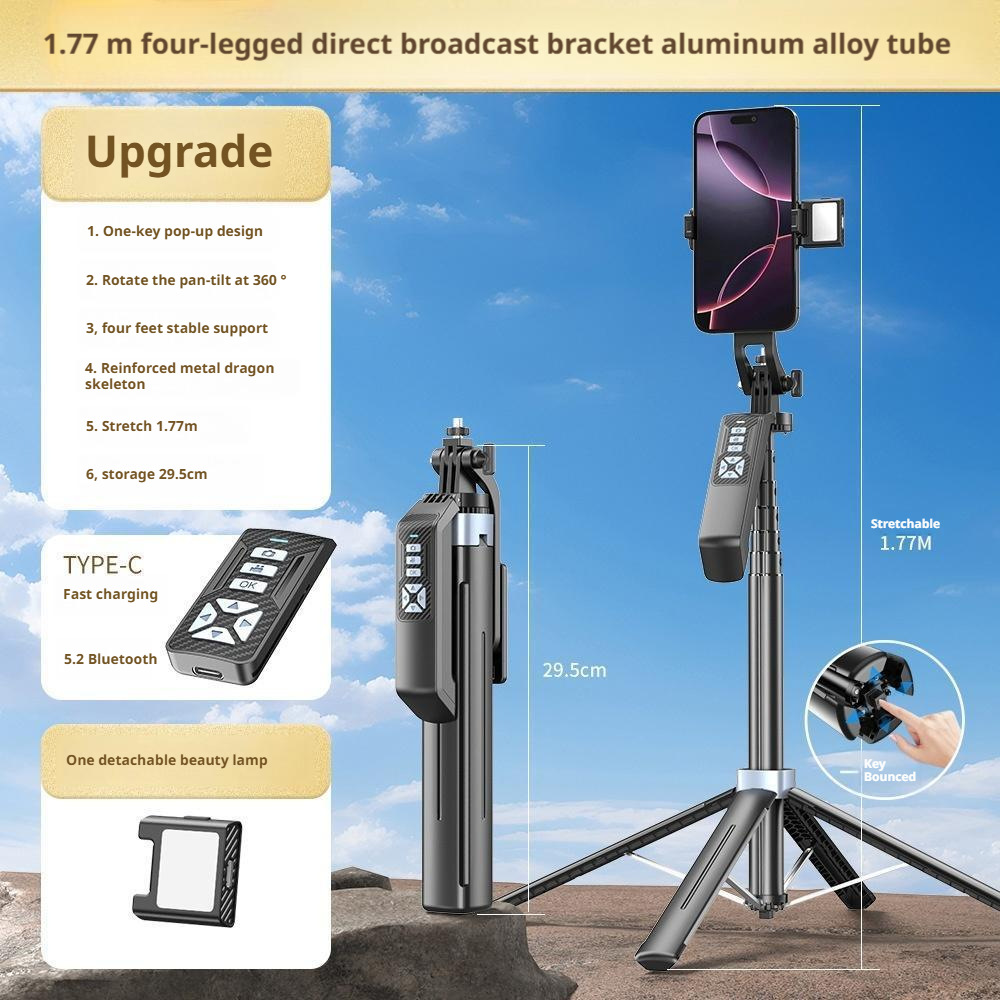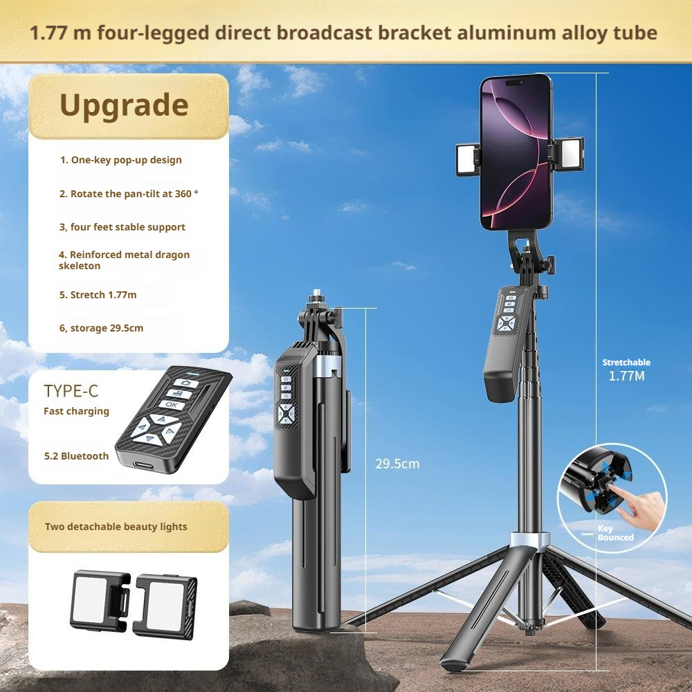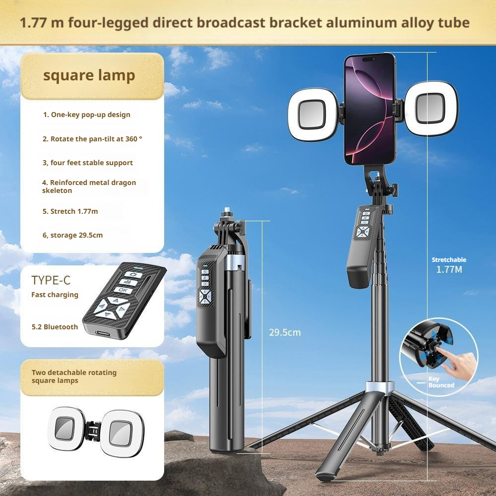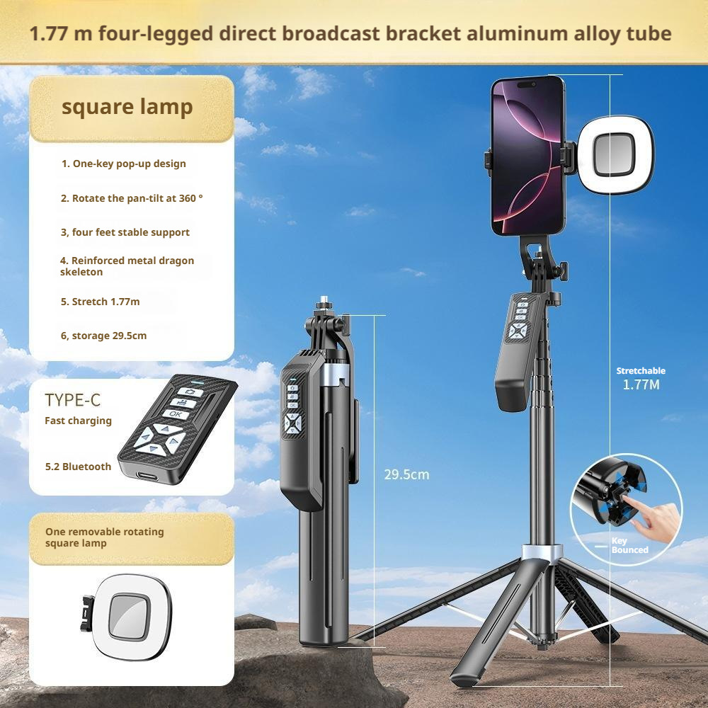 • P19TK 단일 소형 조명 버전 검정색 [1.77m + 안정적인 촬영 핸들 + 충전식 리모콘 + 원클릭 팝업 4각대 + 소형 사각형 조명 1개]