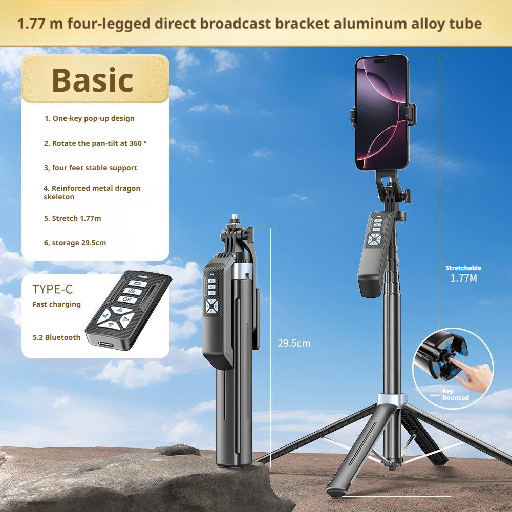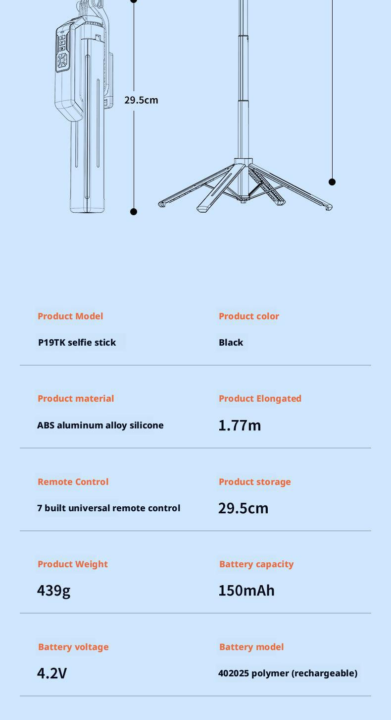 • P19TK 표준 버전 블랙 [1.77m + 안정적인 촬영 핸들 + 충전식 리모콘 + 원클릭 팝업 4각대]