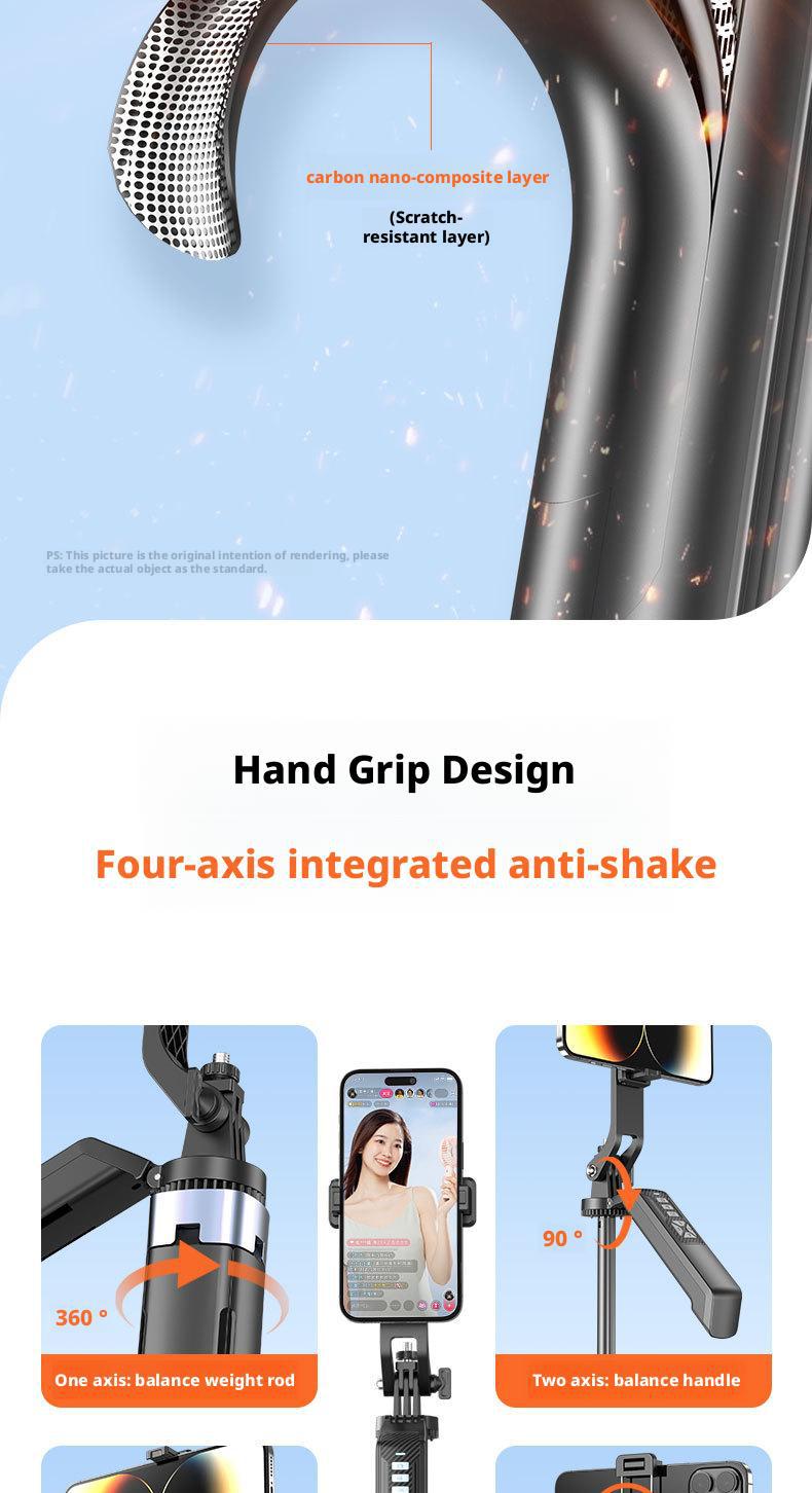 P19TK 휴대 전화 블루투스 셀카봉 다기능 손떨림 방지 휴대용 안정기 360 ° 회전식 휴대폰 라이브 스트리밍 홀더
