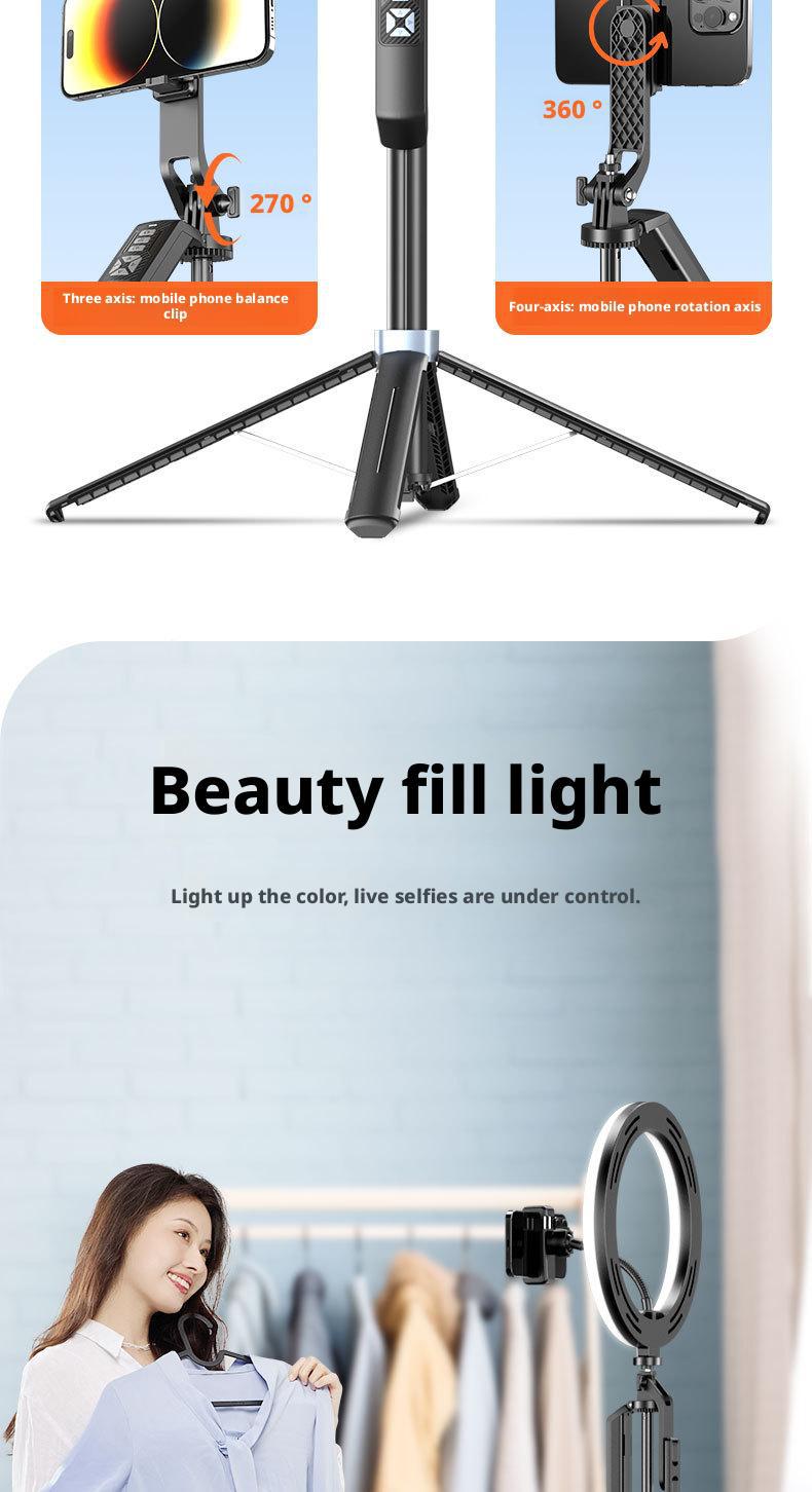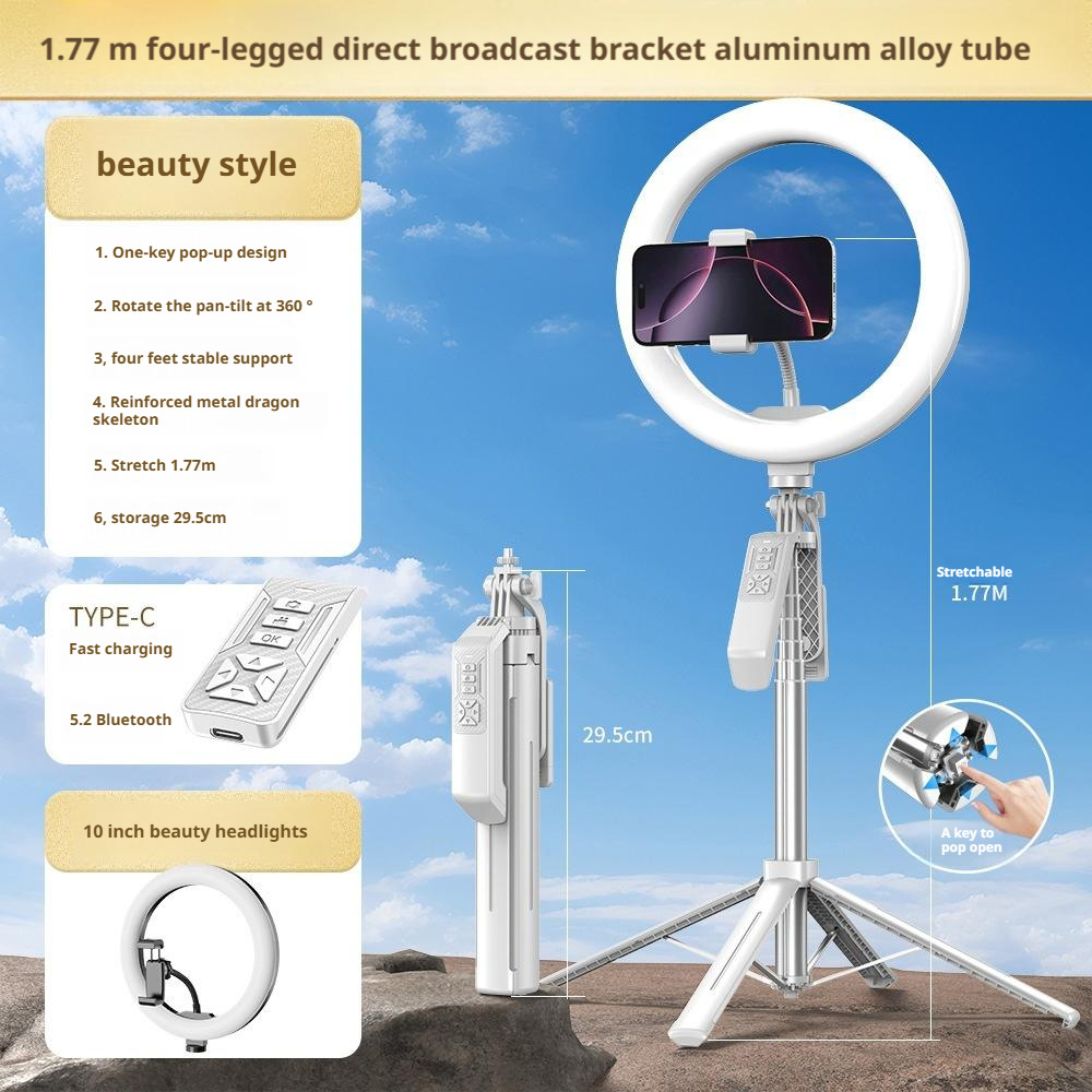 • P19TK 단일 헤드라이트 버전 화이트 [ 1.77m + 안정적인 촬영 핸들 + 충전식 리모콘 + 원클릭 팝업 삼각대 + 미러 헤드라이트 1개 ]