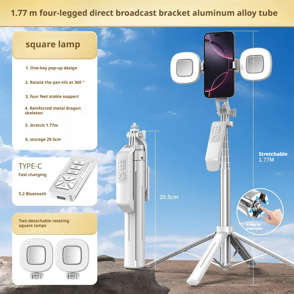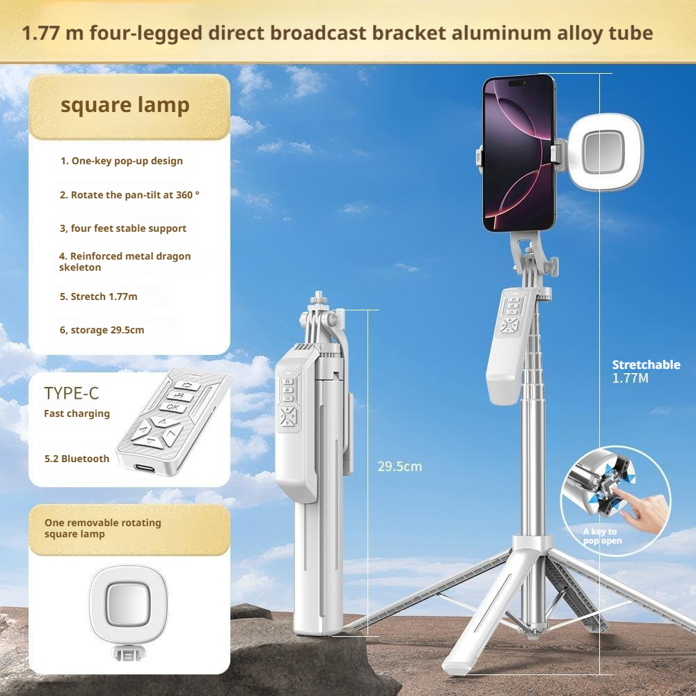 • P19TK 단일 소형 조명 버전 흰색 [1.77m + 안정적인 촬영 핸들 + 충전식 리모콘 + 원클릭 팝업 4각대 + 소형 사각형 조명 1개]
