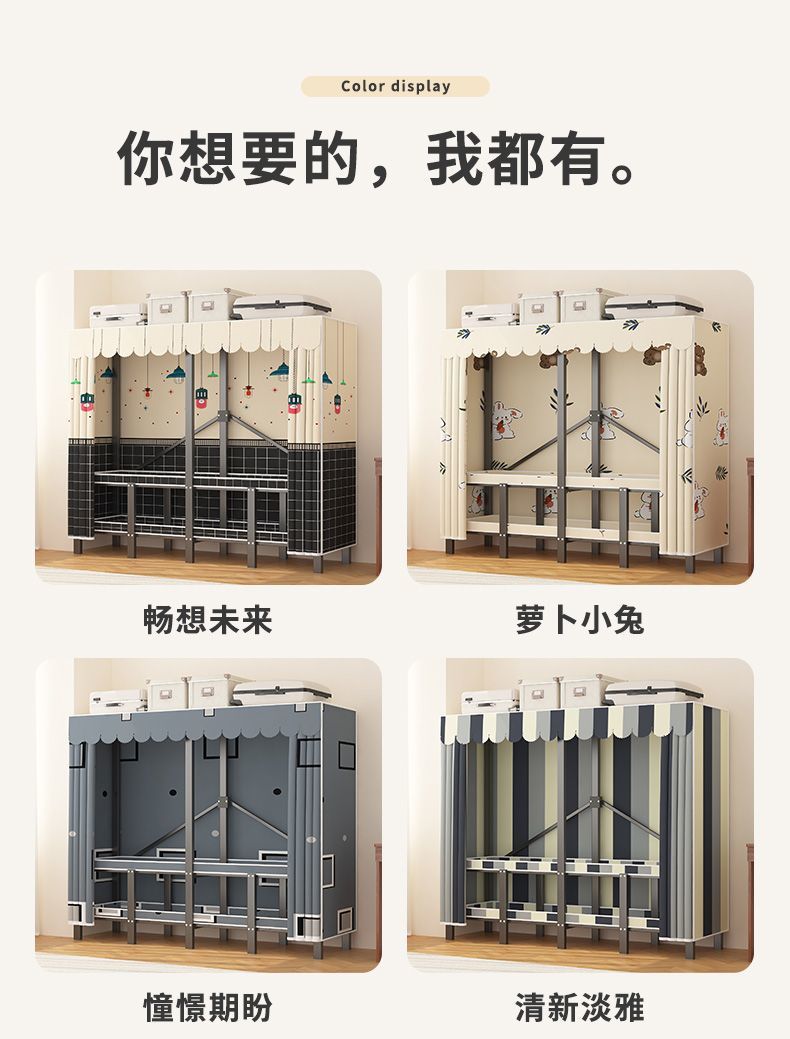 옷장 홈 침실 심플 모던 심플 천 옷장 설치가 필요없는 접이식 대형 옷장 기숙사 임대실스토어 가기