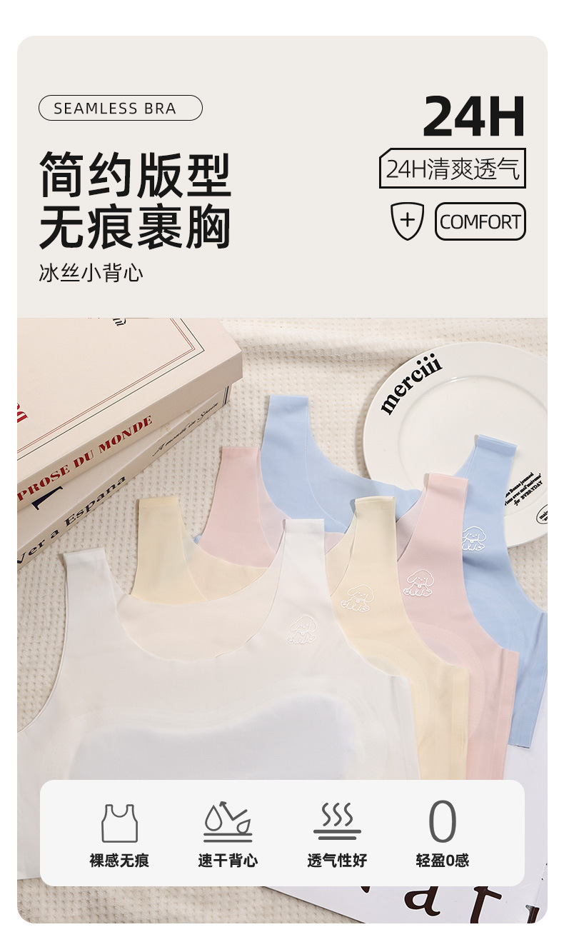 발달기 어린이용 아이스 실크 속옷 소녀용 브라탑 얇은 스포츠 통기성 무봉제 작은 조끼 속옷 통기성스토어 가기