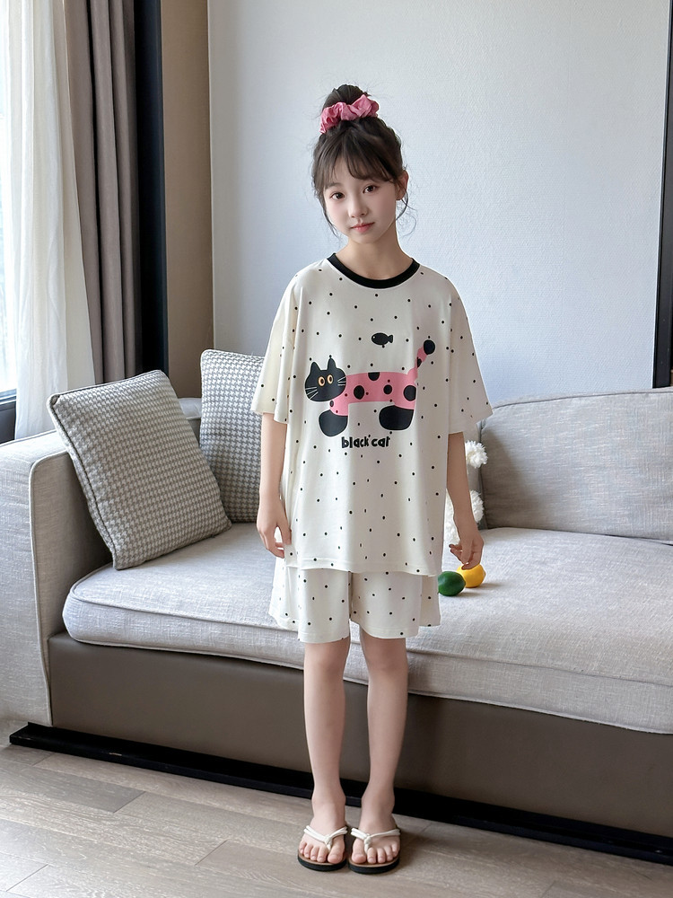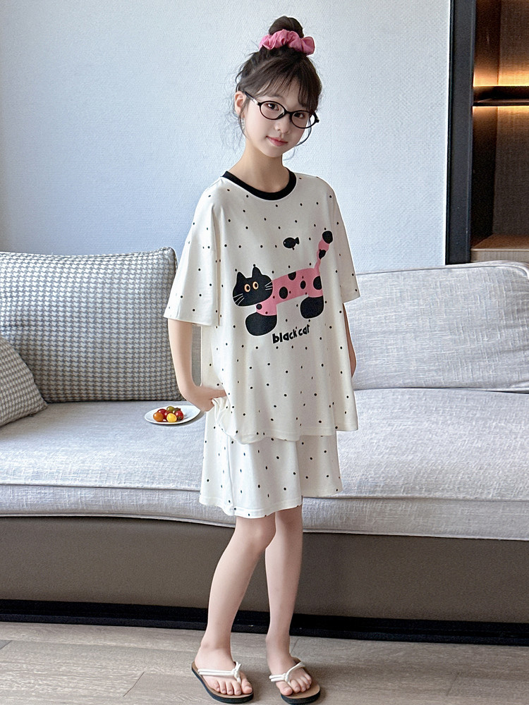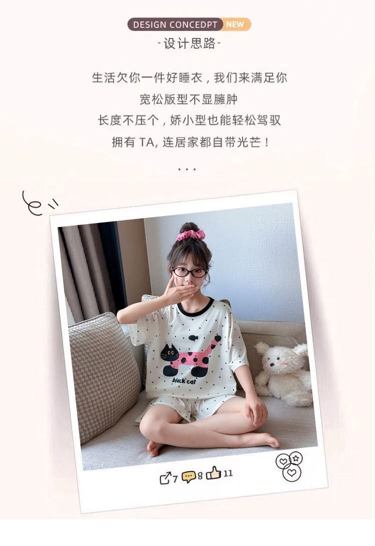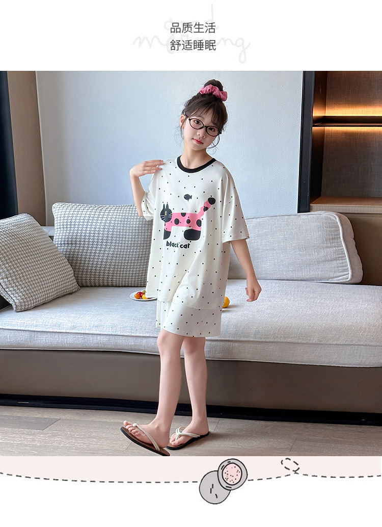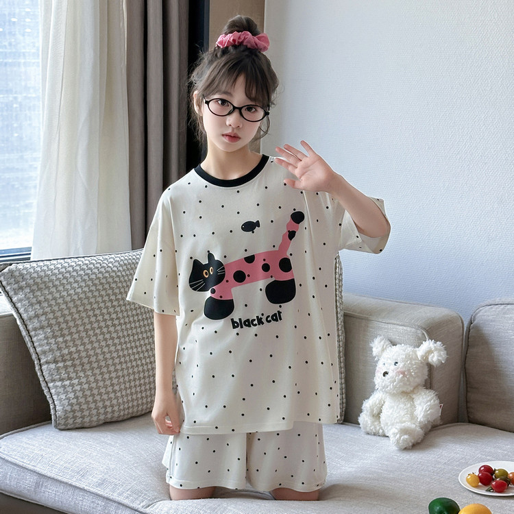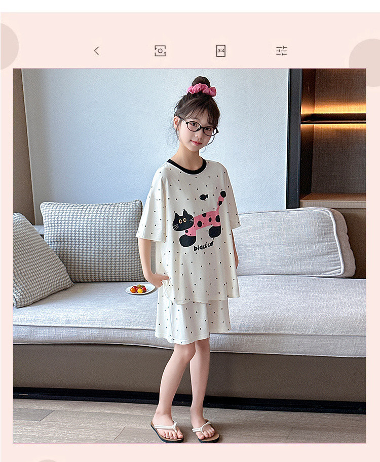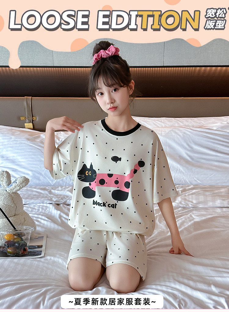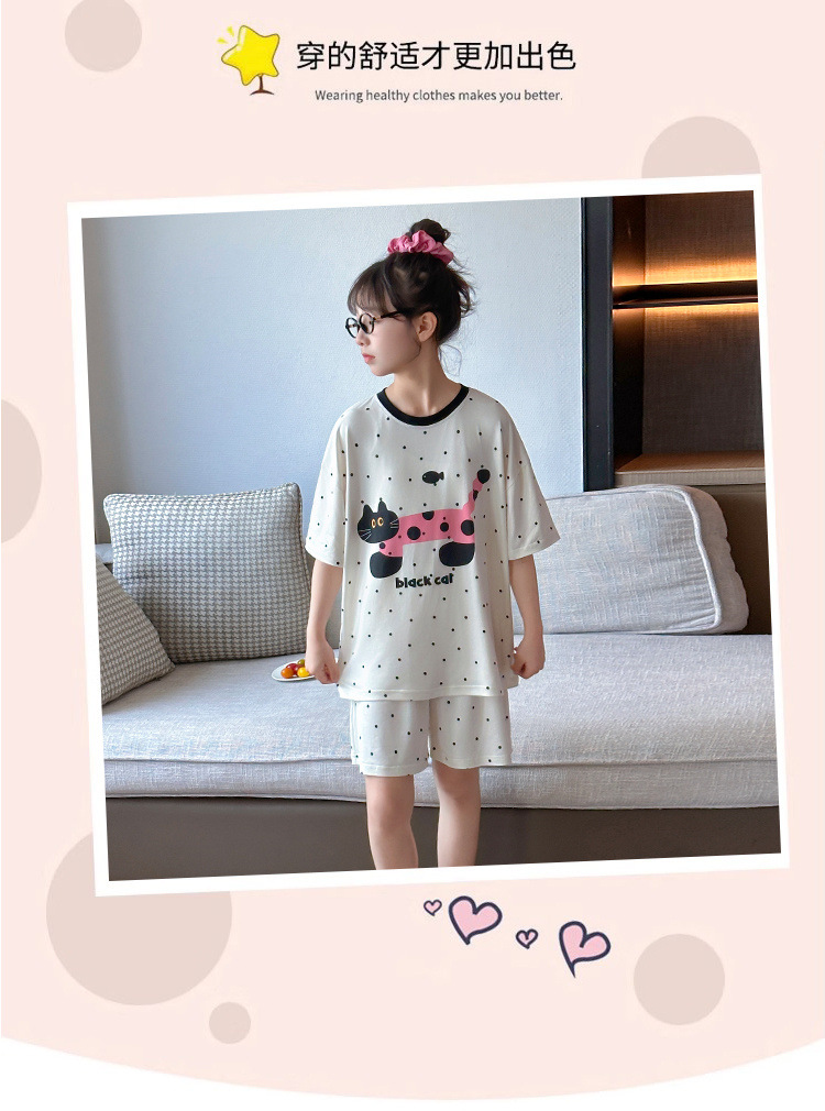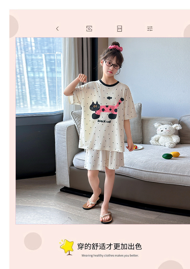 여자 잠옷 여름 2025 새로운 스타일 중학생 여자 반팔 반바지 정장 여자 어린이 서양식 가정복 얇은스토어 가기
