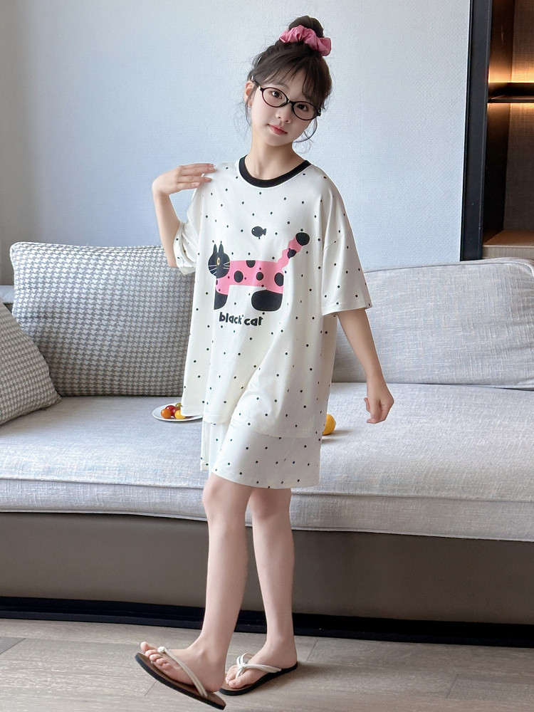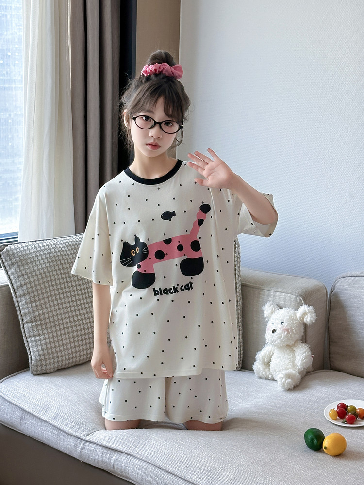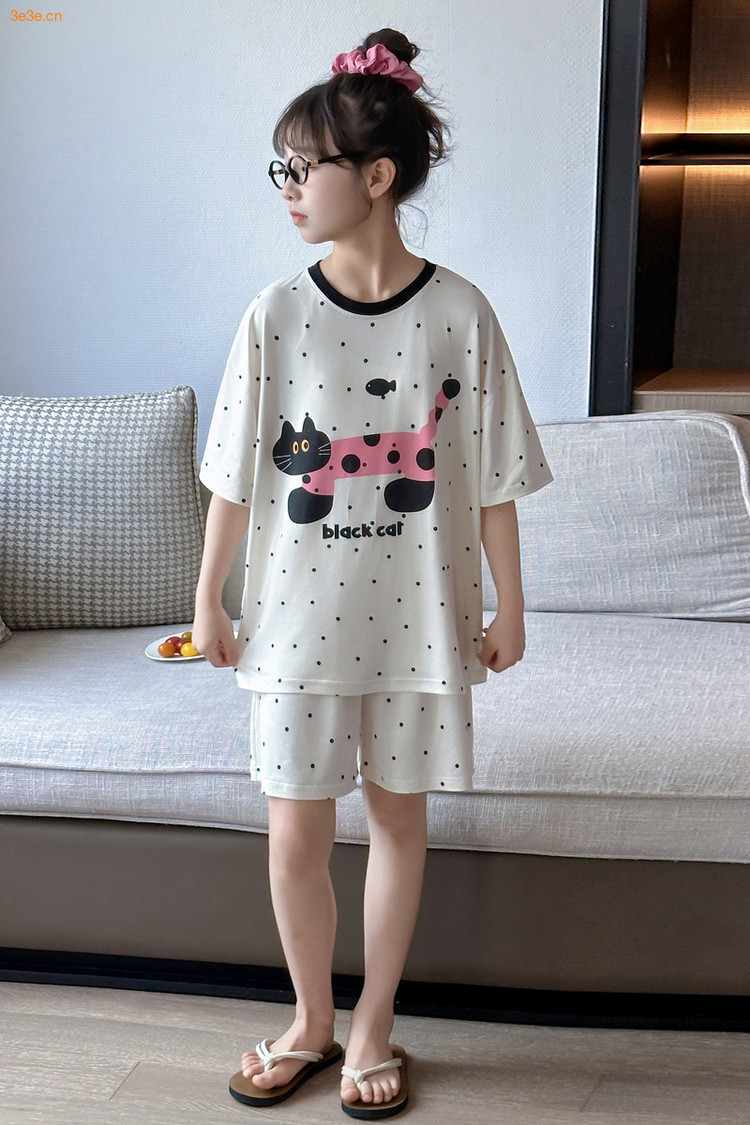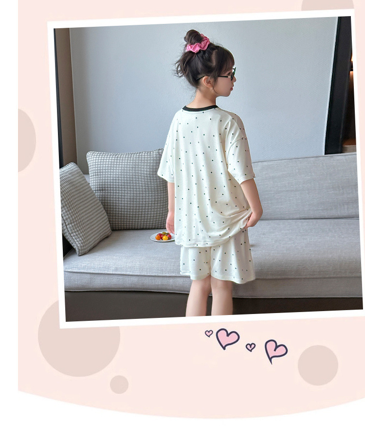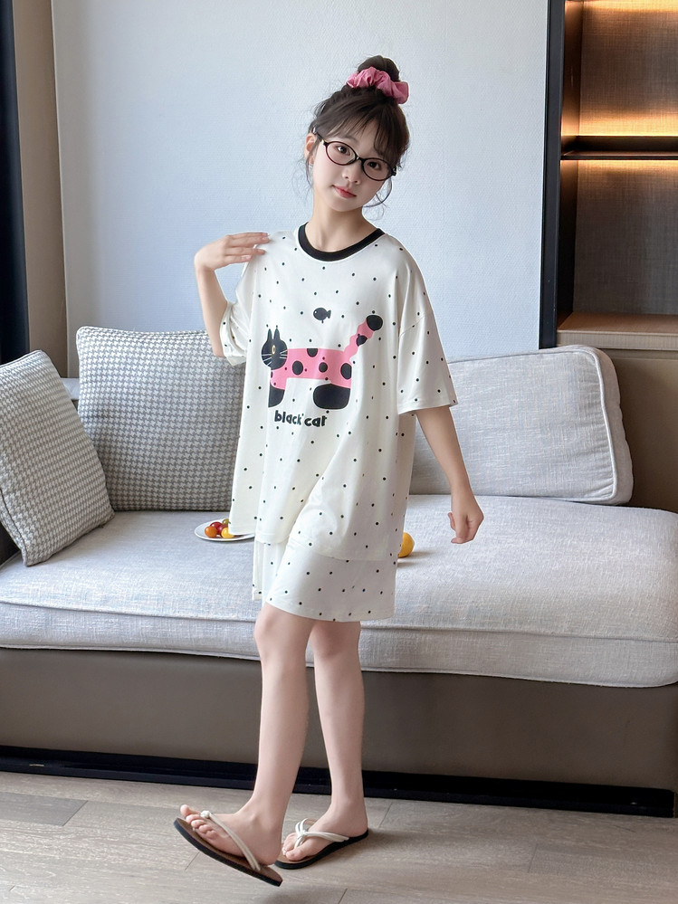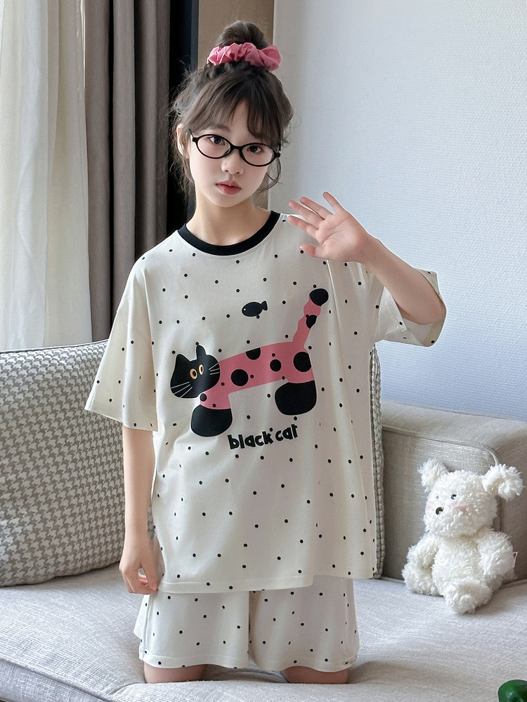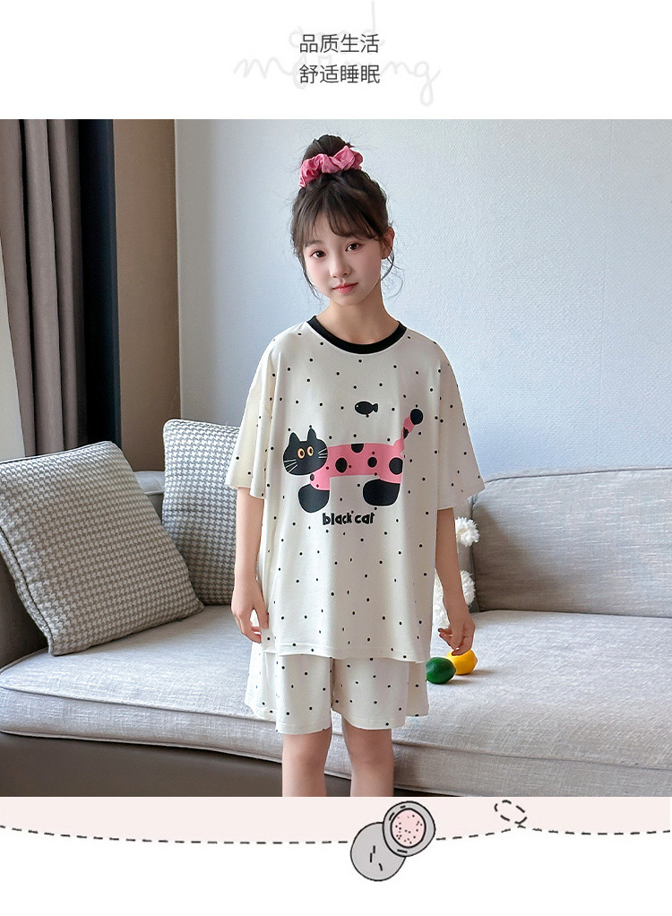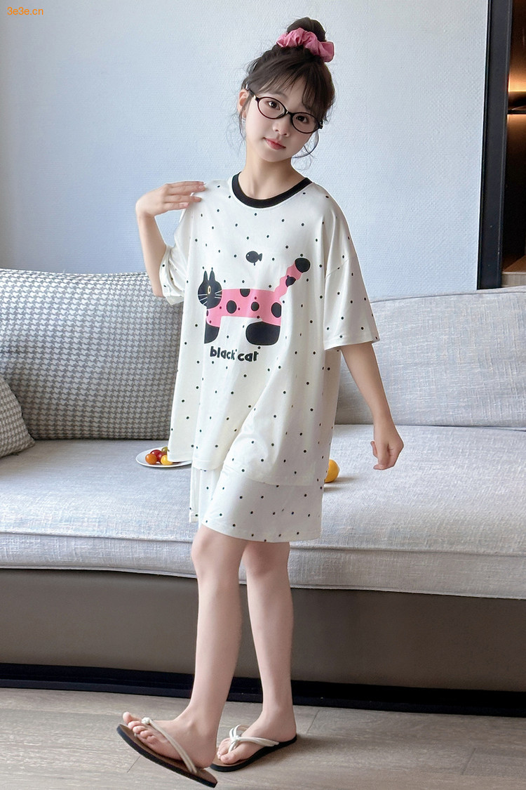 여자 잠옷 여름 2025 새로운 스타일 중학생 여자 반팔 반바지 정장 여자 어린이 서양식 가정복 얇은스토어 가기