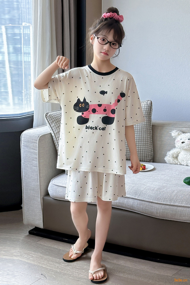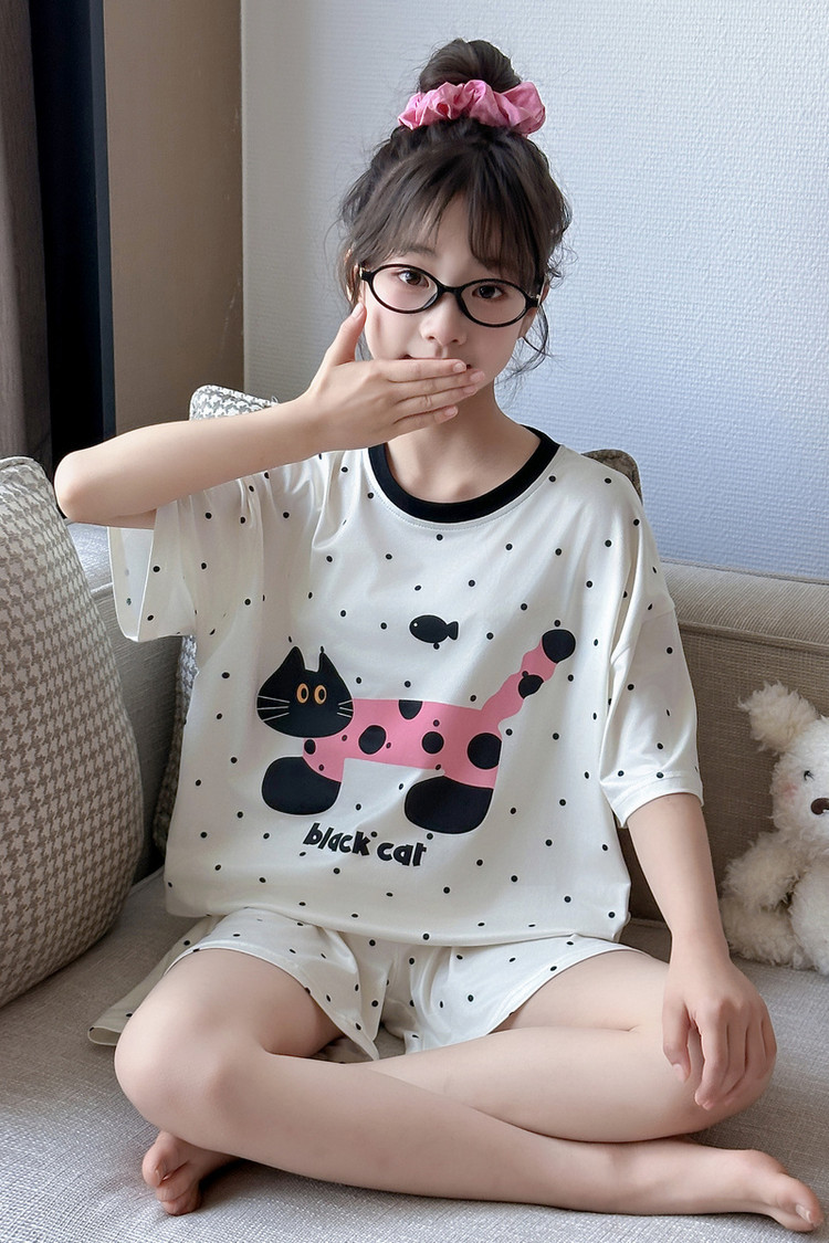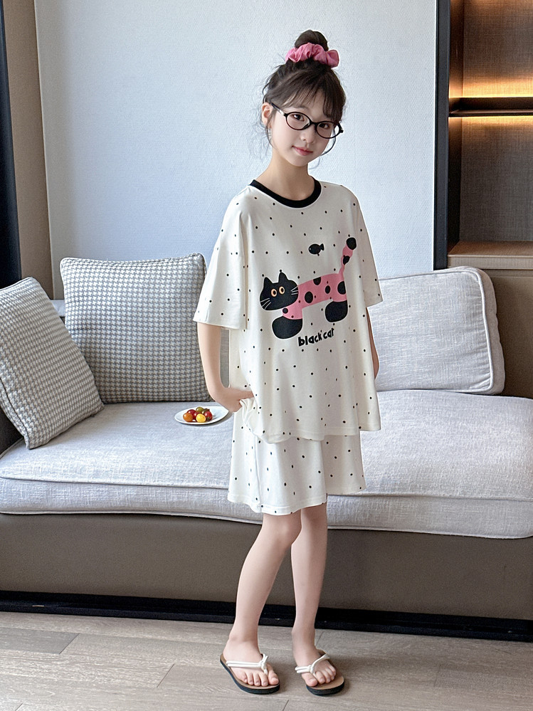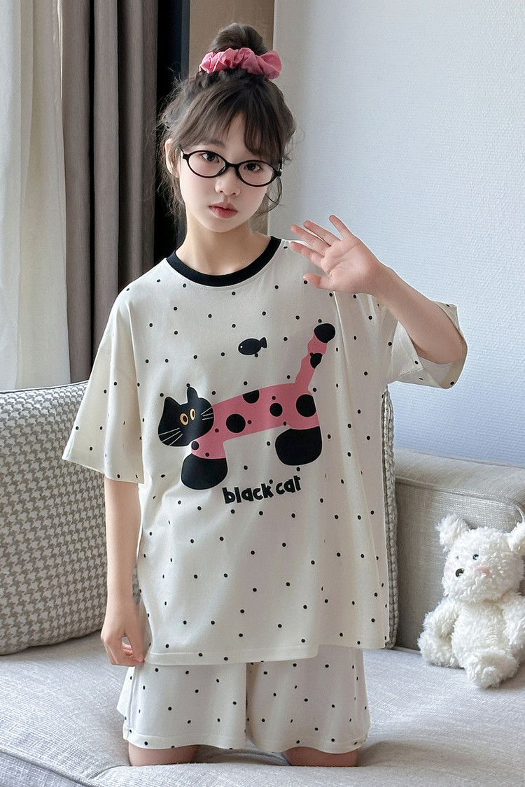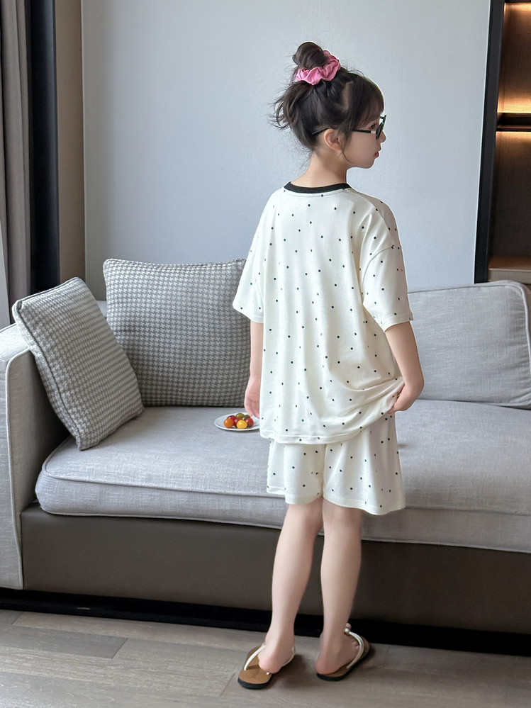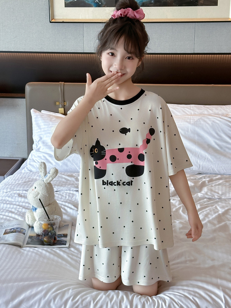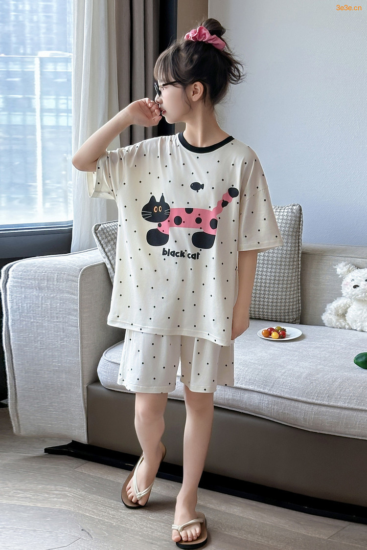 여자 잠옷 여름 2025 새로운 스타일 중학생 여자 반팔 반바지 정장 여자 어린이 서양식 가정복 얇은스토어 가기