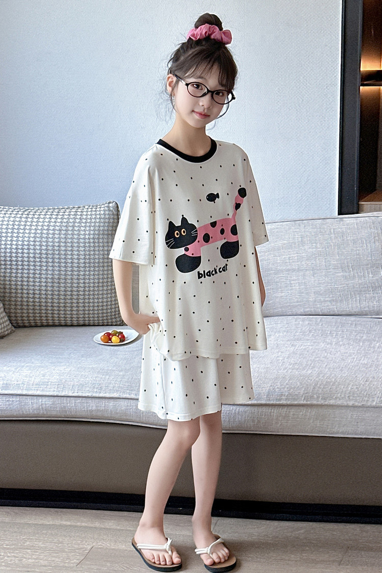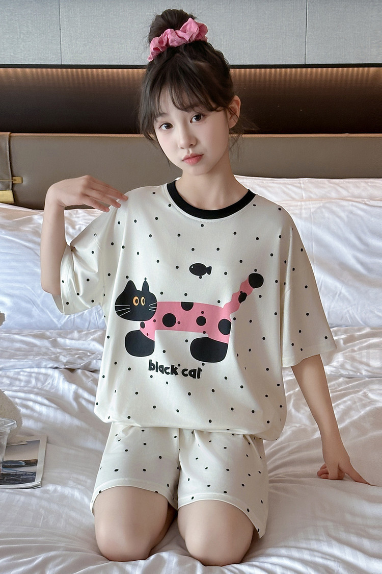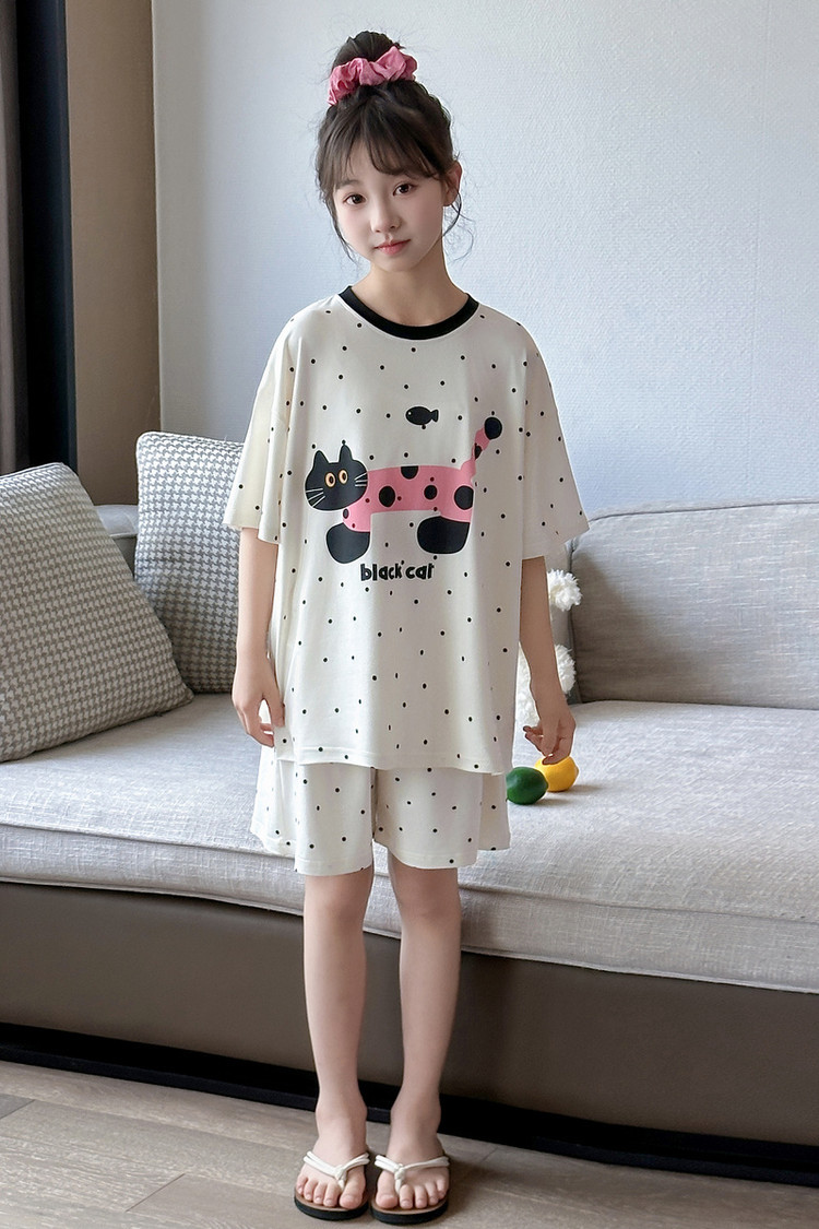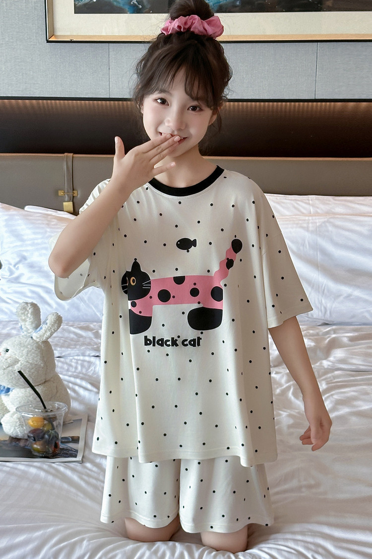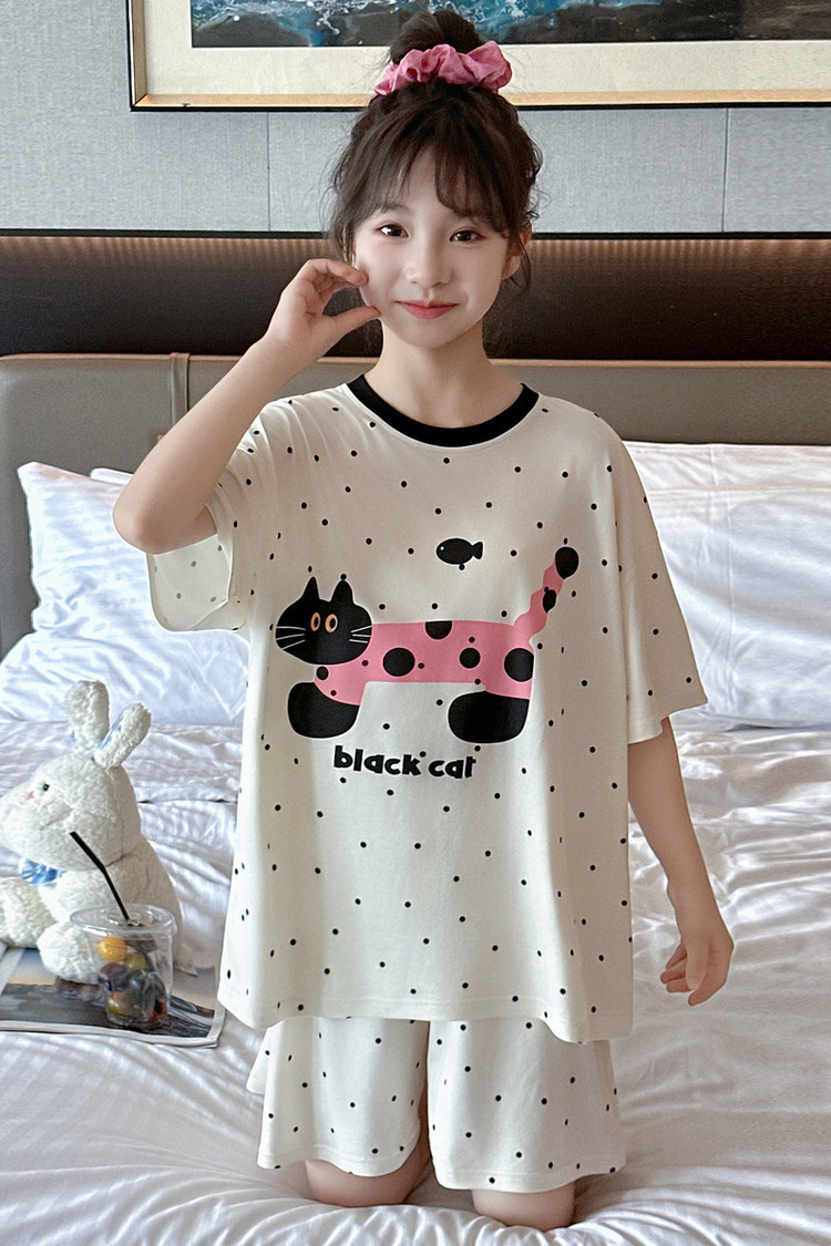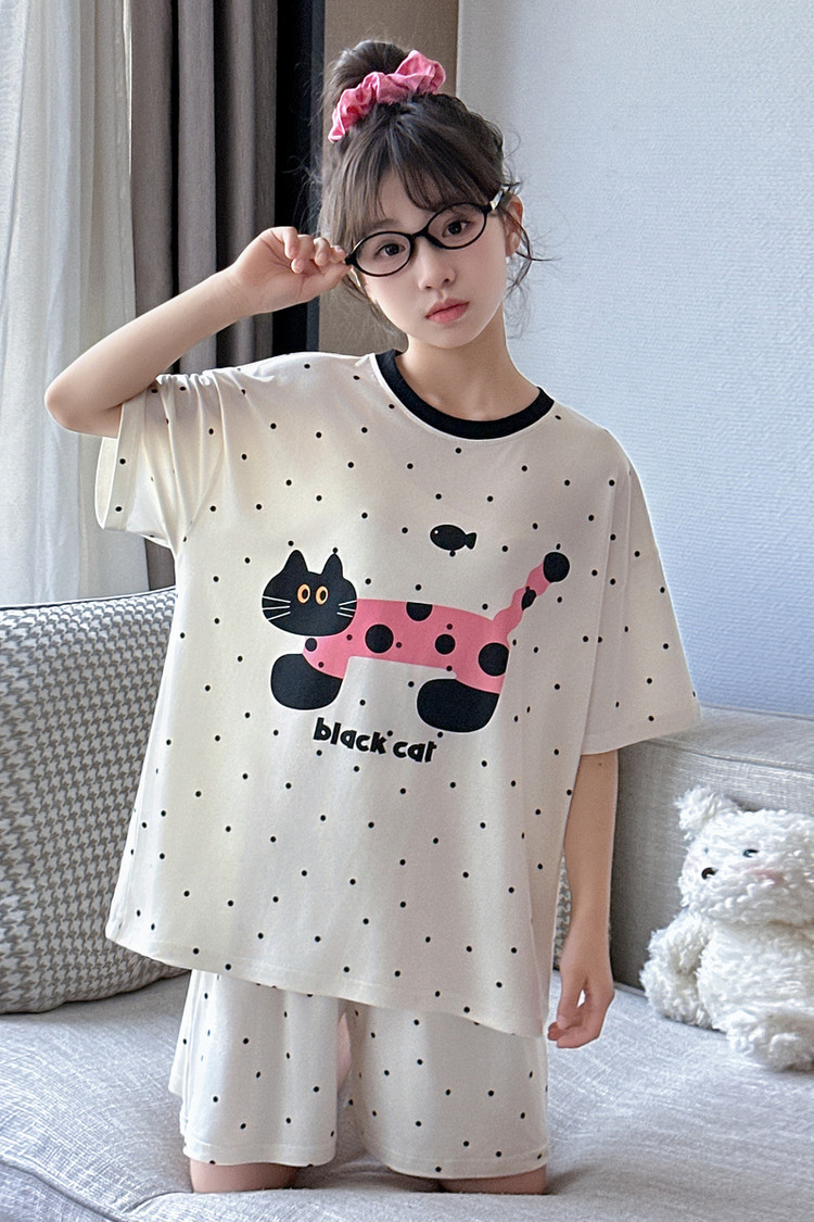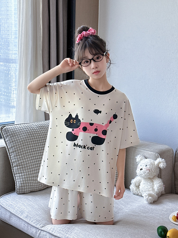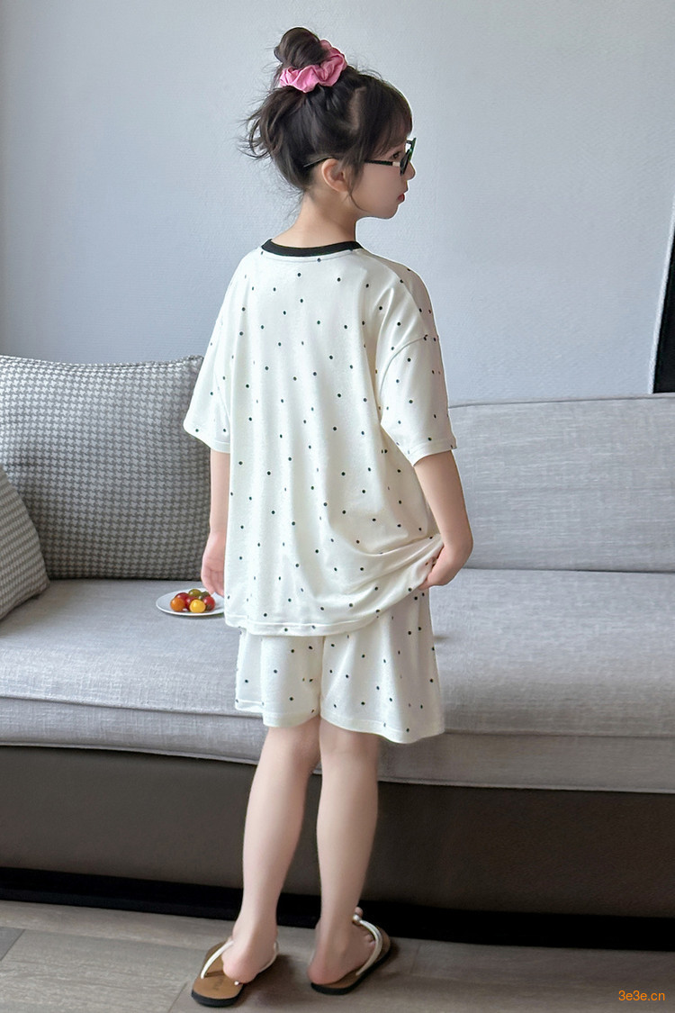 여자 잠옷 여름 2025 새로운 스타일 중학생 여자 반팔 반바지 정장 여자 어린이 서양식 가정복 얇은스토어 가기