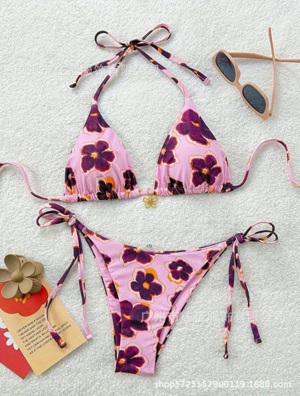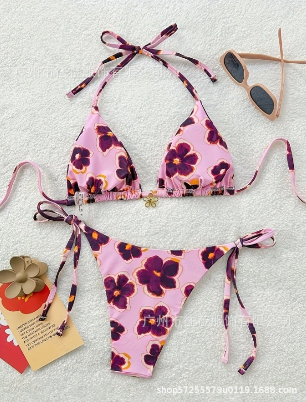 2025 새로운 수영복 유럽과 미국의 패션 꽃 인쇄 섹시한 삼각형 비키니 여성 수영복