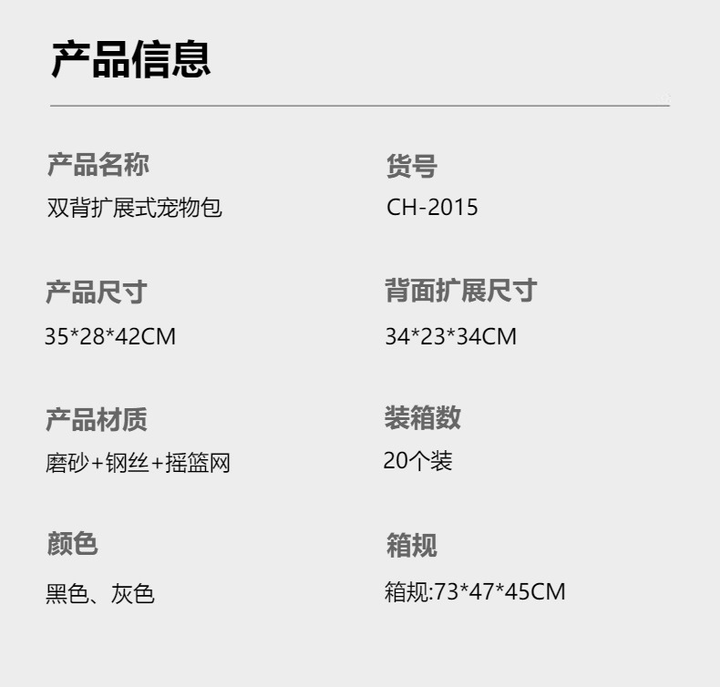 더블 백 확장형 애완 동물 가방 새로운 접이식 휴대용 고양이 가방 대용량 더블 어깨 애완 동물 배낭 도매