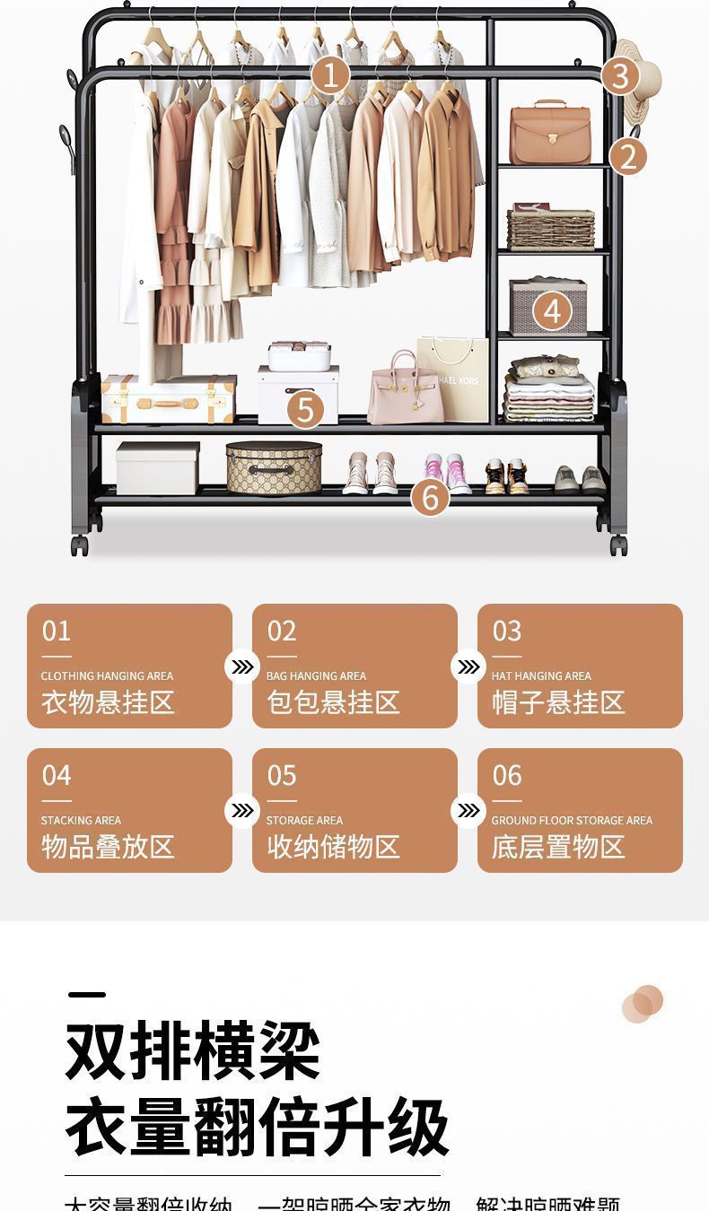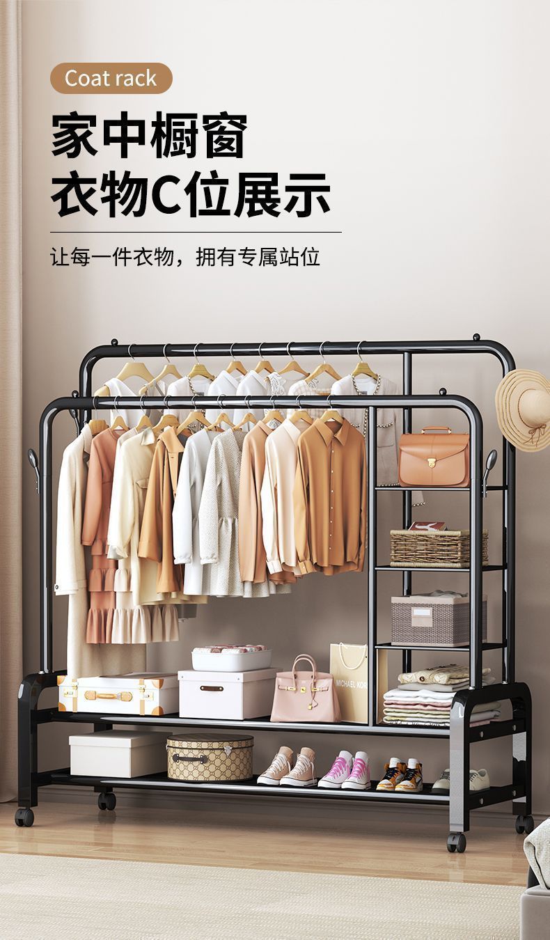 두꺼운 옷걸이 바닥 스탠딩 수직 침실 옷걸이 실내 다층 옷걸이 옷 건조 랙 발코니 홈스토어 가기