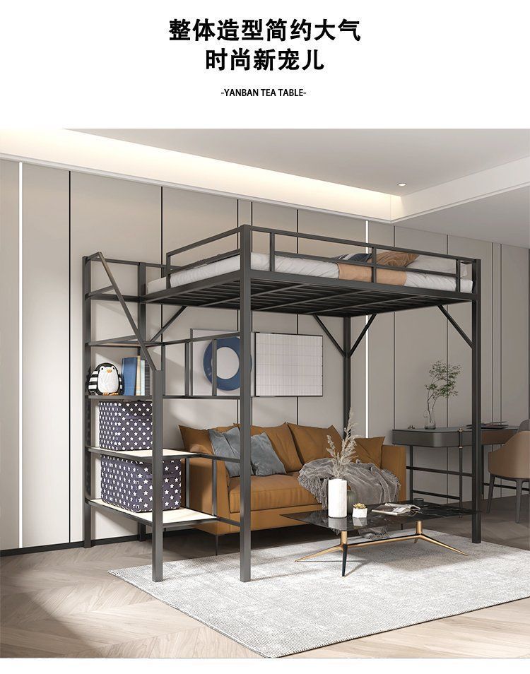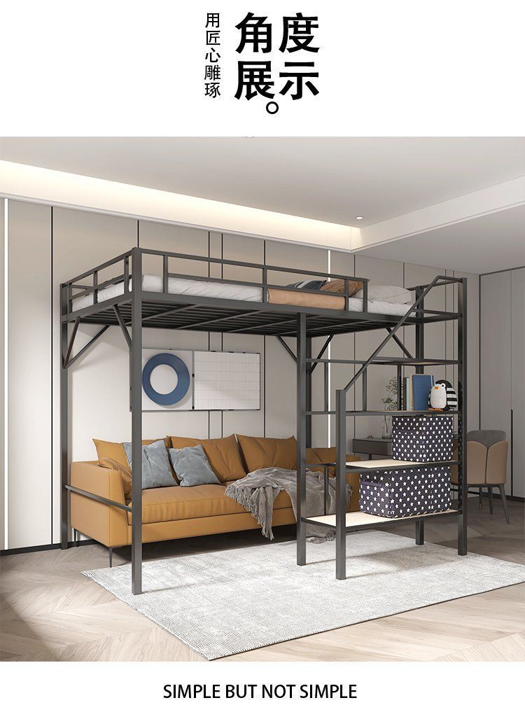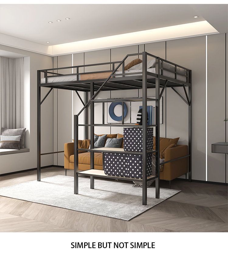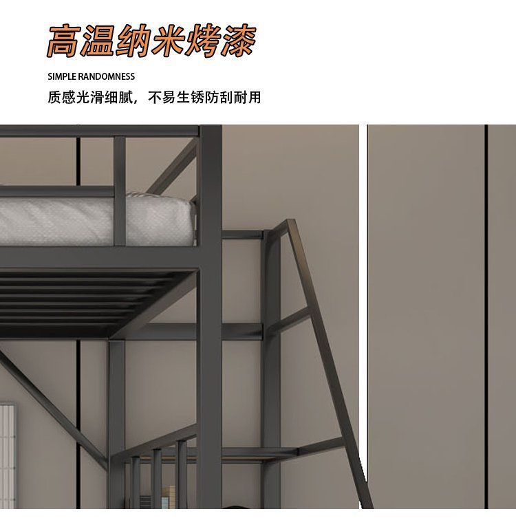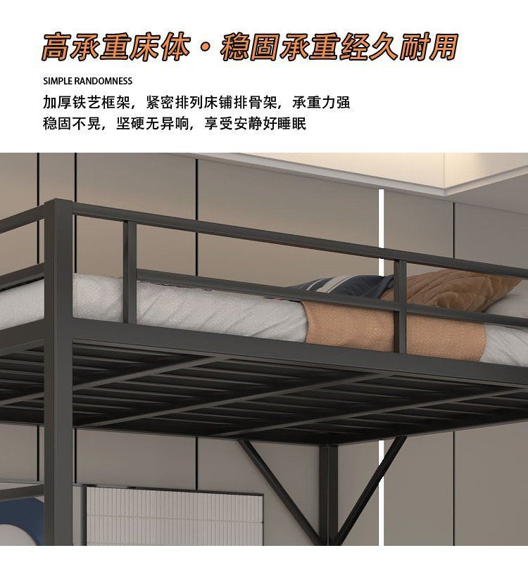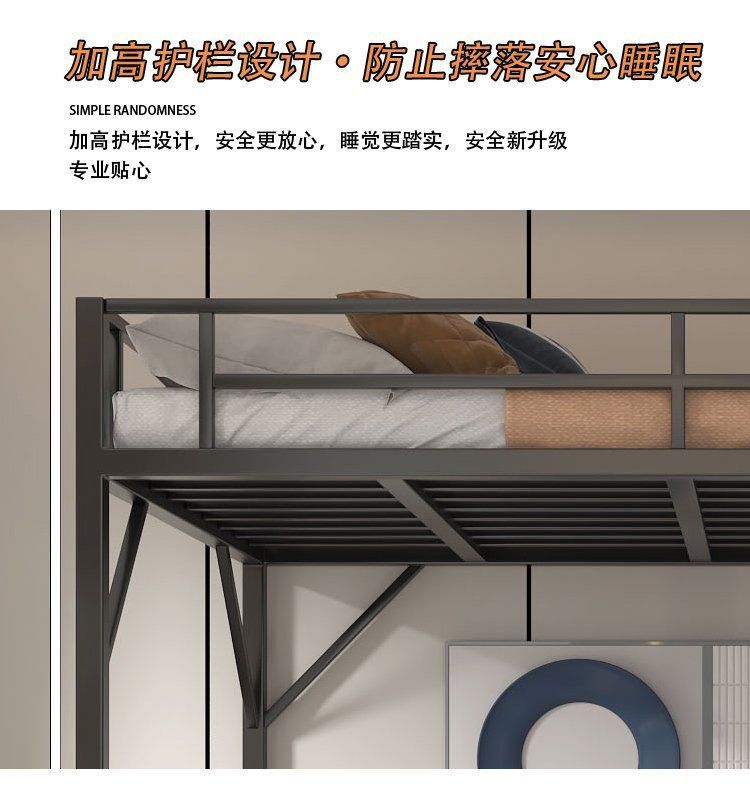 단철 이층 침대, 상단이 빈 철제 프레임, 작은 기둥형 오버헤드 실내 공간 절약형 이층 침대, 상단 침대 및 하단 테이블 침대스토어 가기