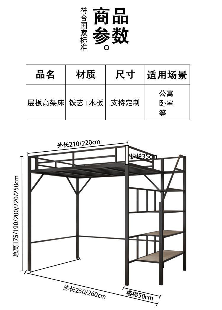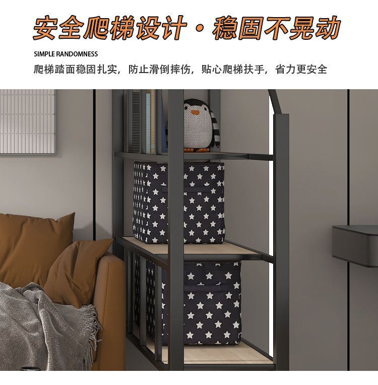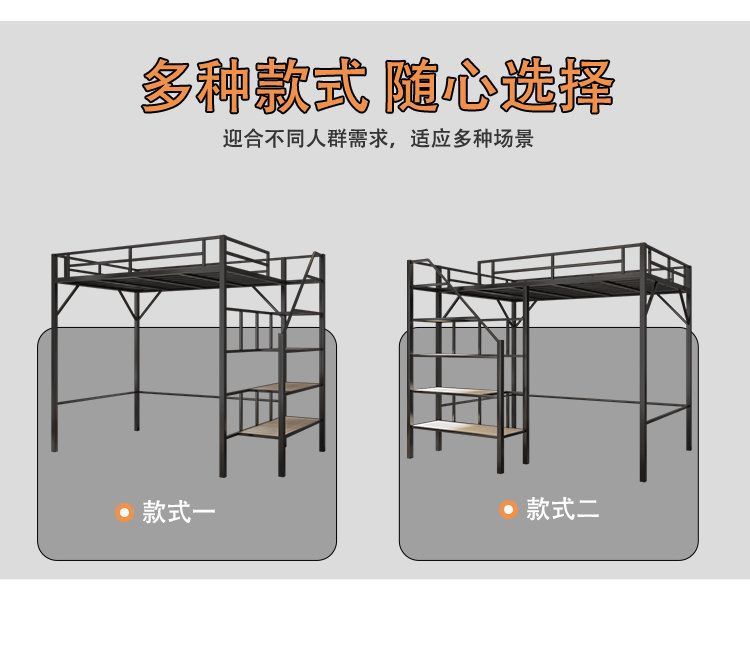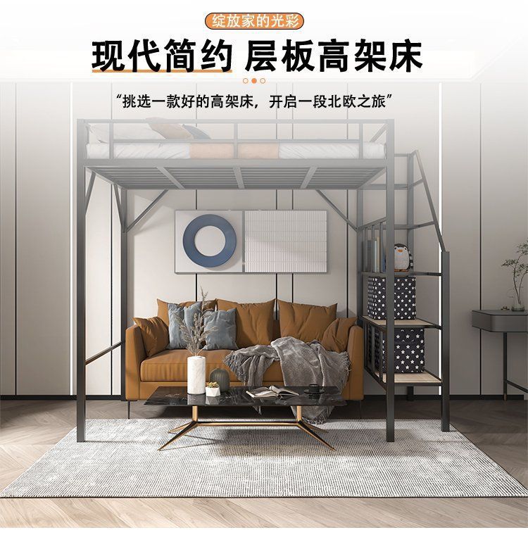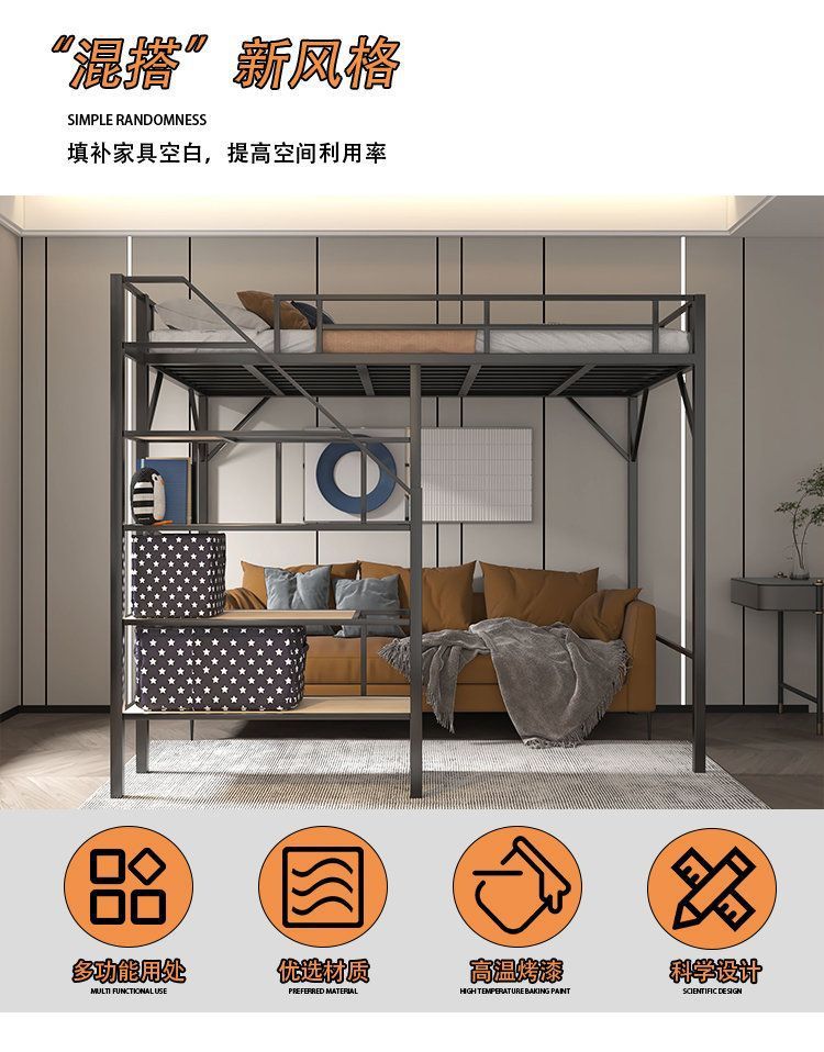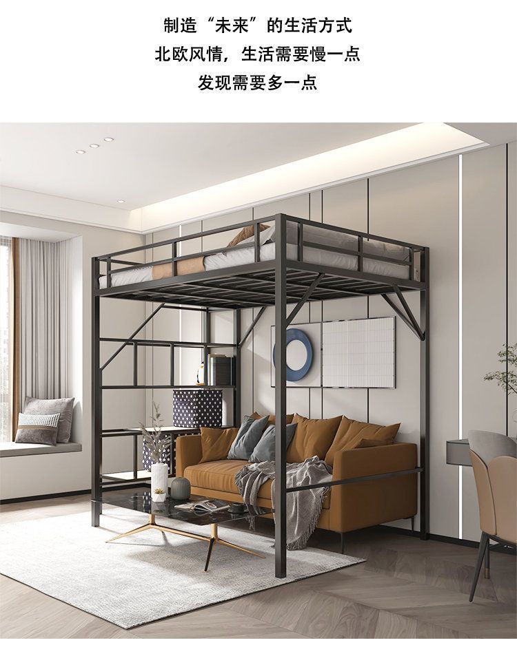 단철 이층 침대, 상단이 빈 철제 프레임, 작은 기둥형 오버헤드 실내 공간 절약형 이층 침대, 상단 침대 및 하단 테이블 침대스토어 가기