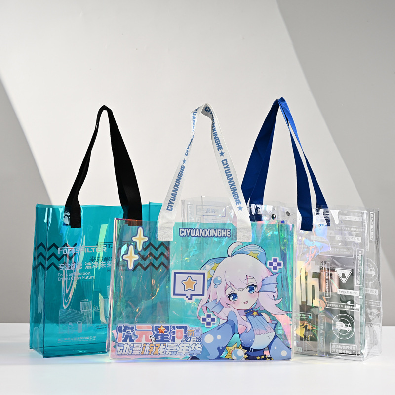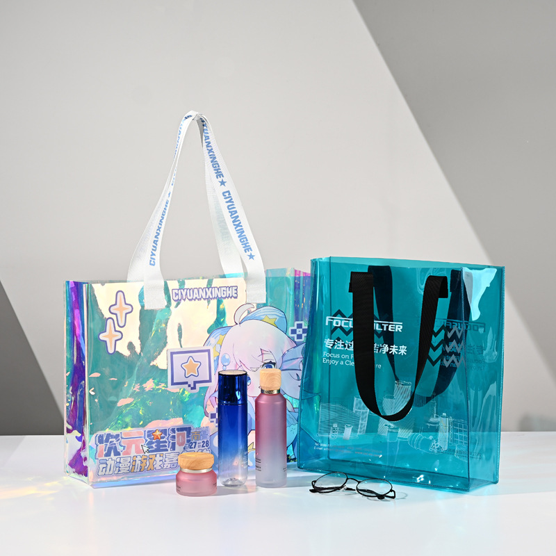 다채로운 선물 ins 핸드백 투명 대용량 고급 젤리 가방 선물 가방 pvc 레이저 핸드백스토어 가기