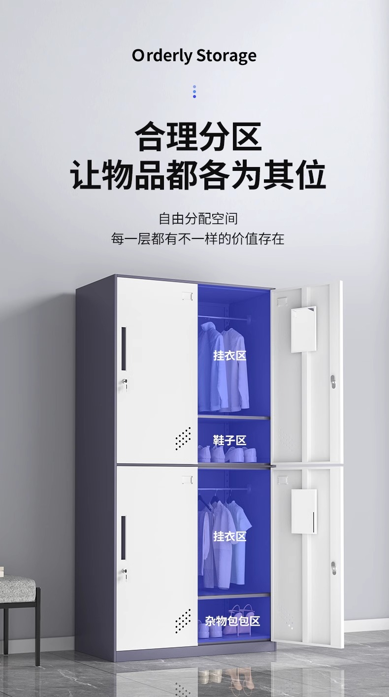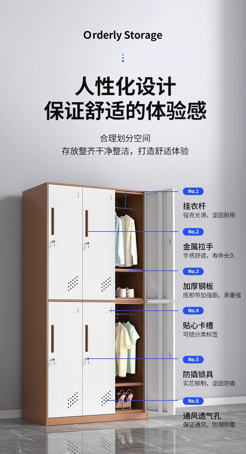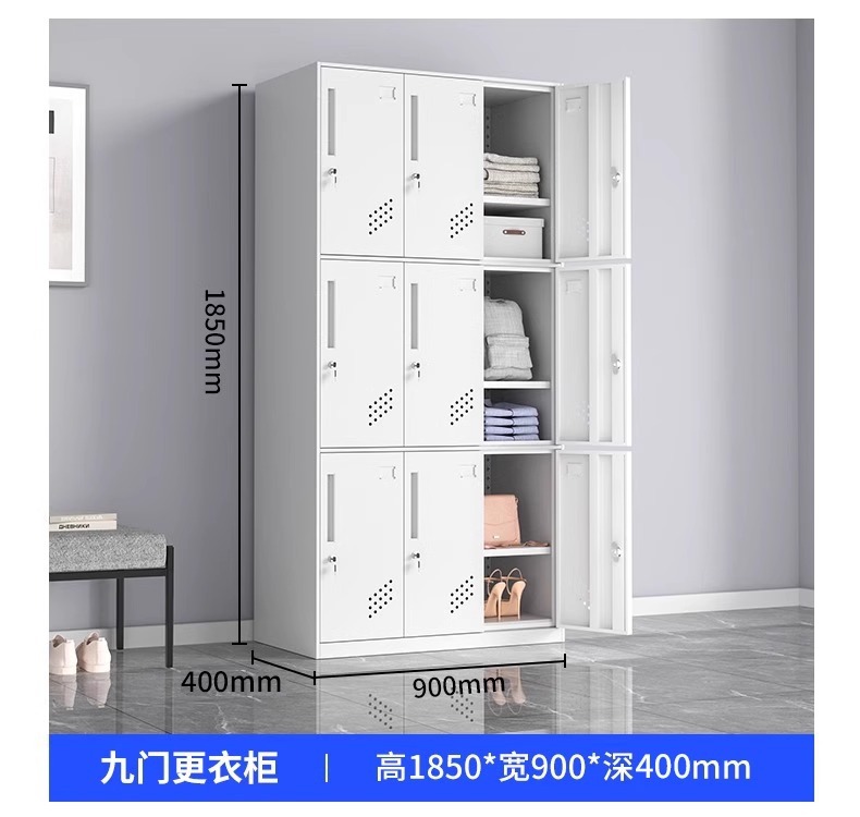 공장 직원 강철 사물함 작업장 사물함 좁은 가장자리 분해 및 조립 잠금 장치가 있는 다중 도어 컬러 사무실 철제 캐비닛스토어 가기